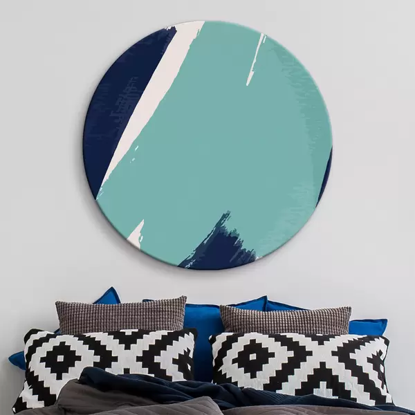 Runde Gemälde Pinselstriche in Blau und Türkis r36416
