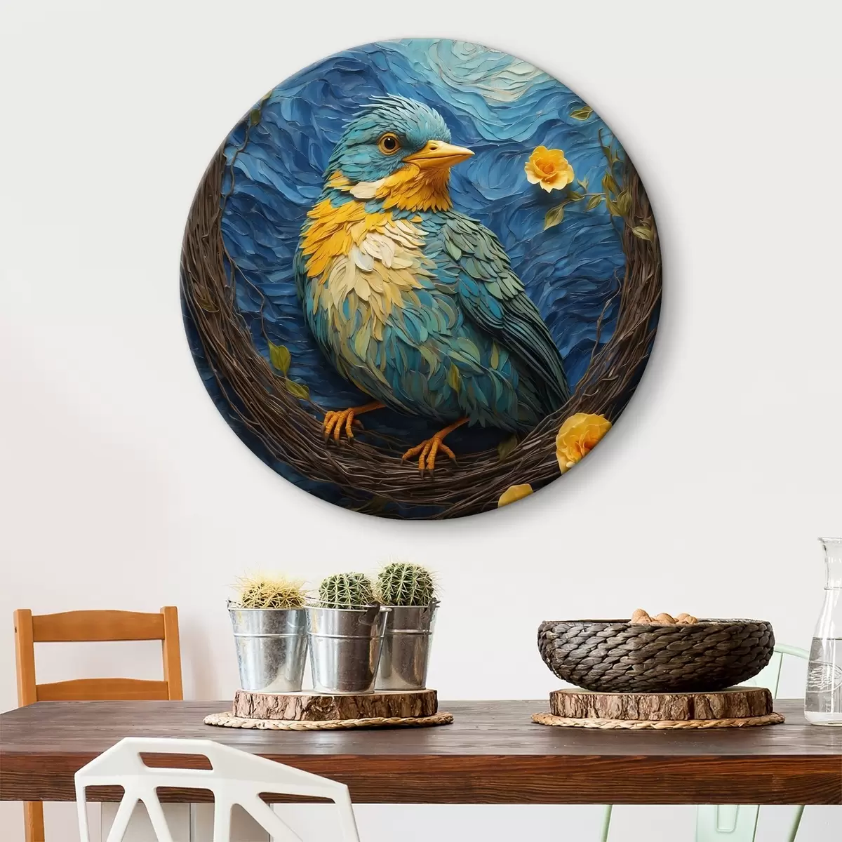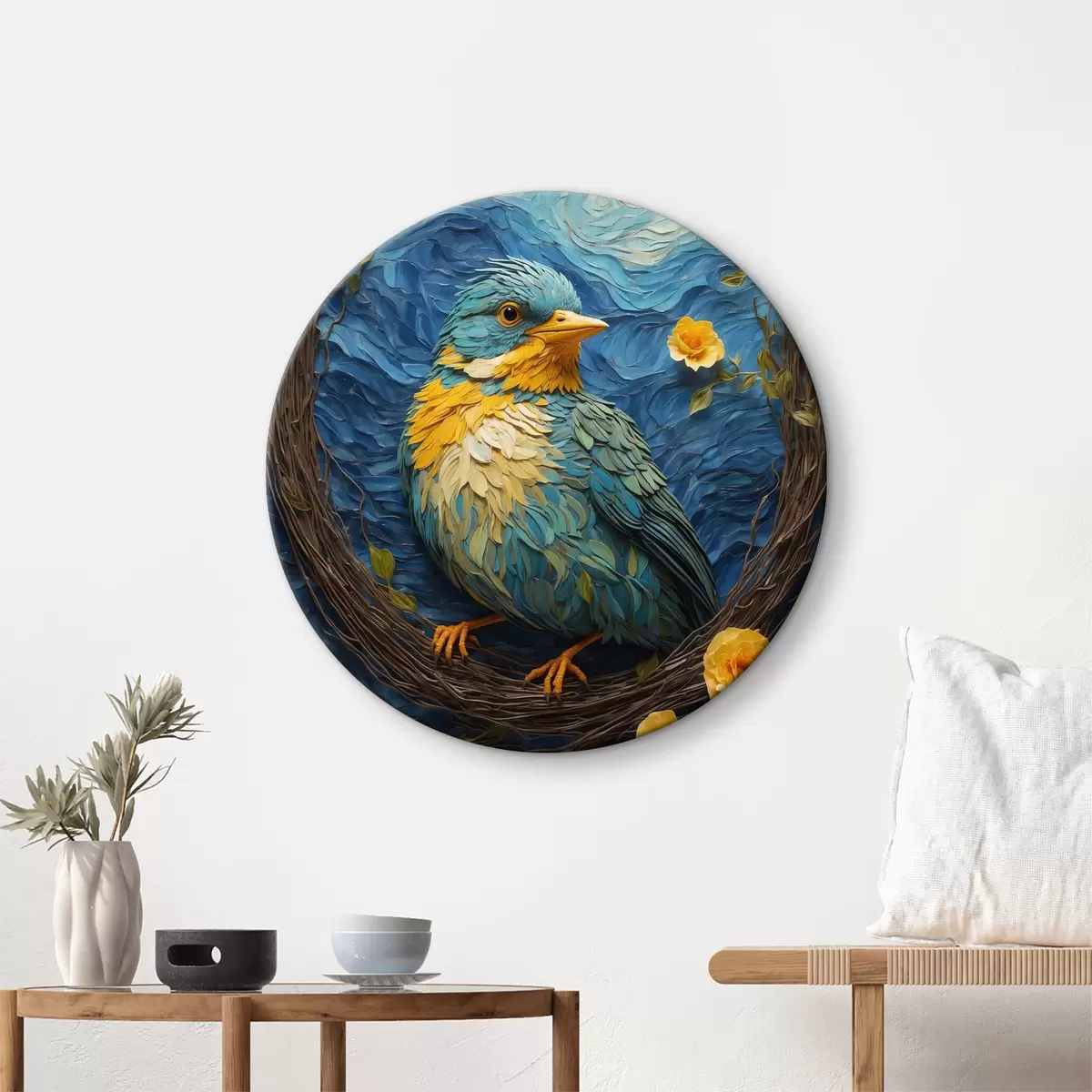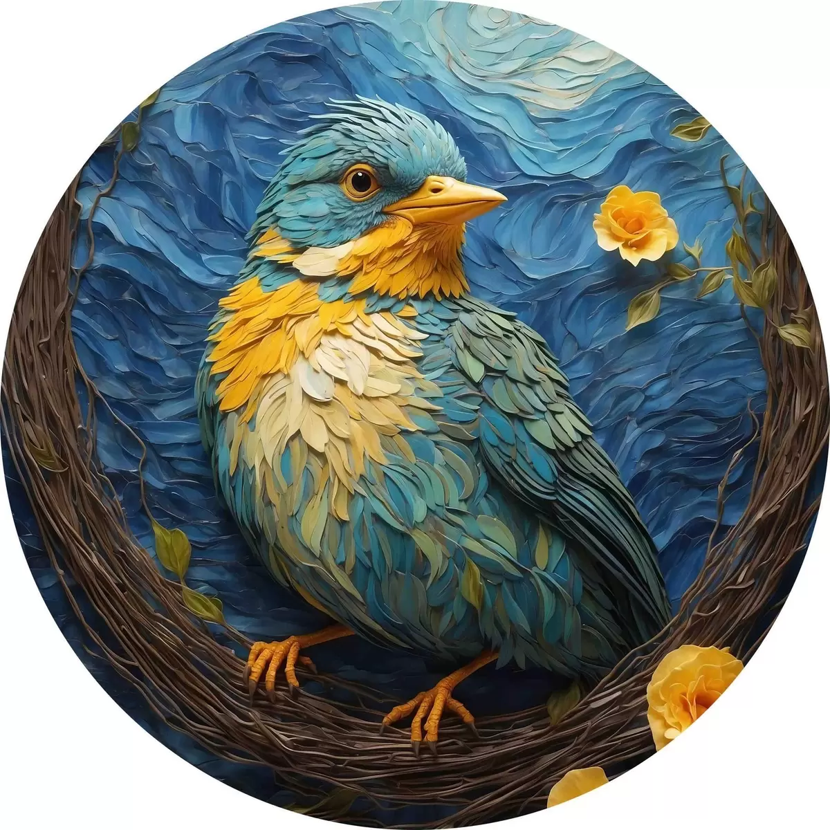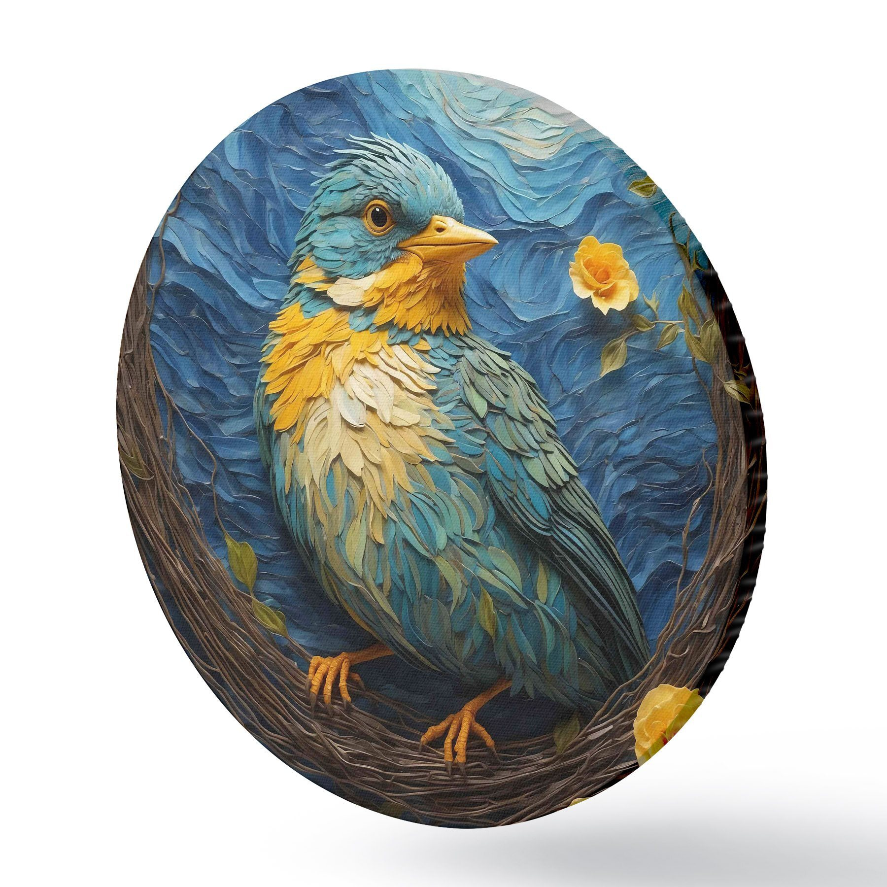 Runde Gemälde Ein lebendiges Nest in einem ruhigen Blumenkranz r36440