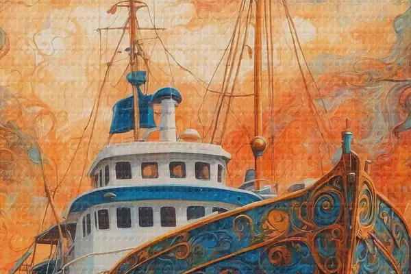 Bild Ein schwimmendes Schiff vor dem Hintergrund eines fantastischen Himmels. Nr r36443