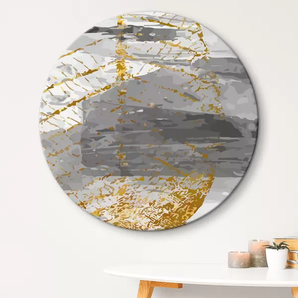 Runde Gemälde Blatt auf grauem und weißem Hintergrund r36483