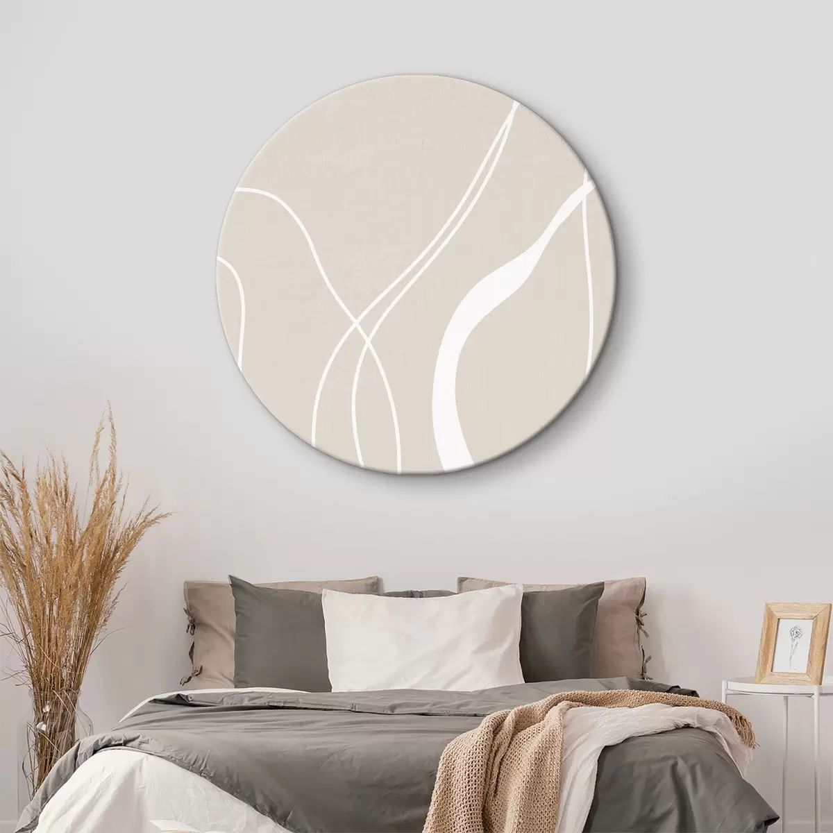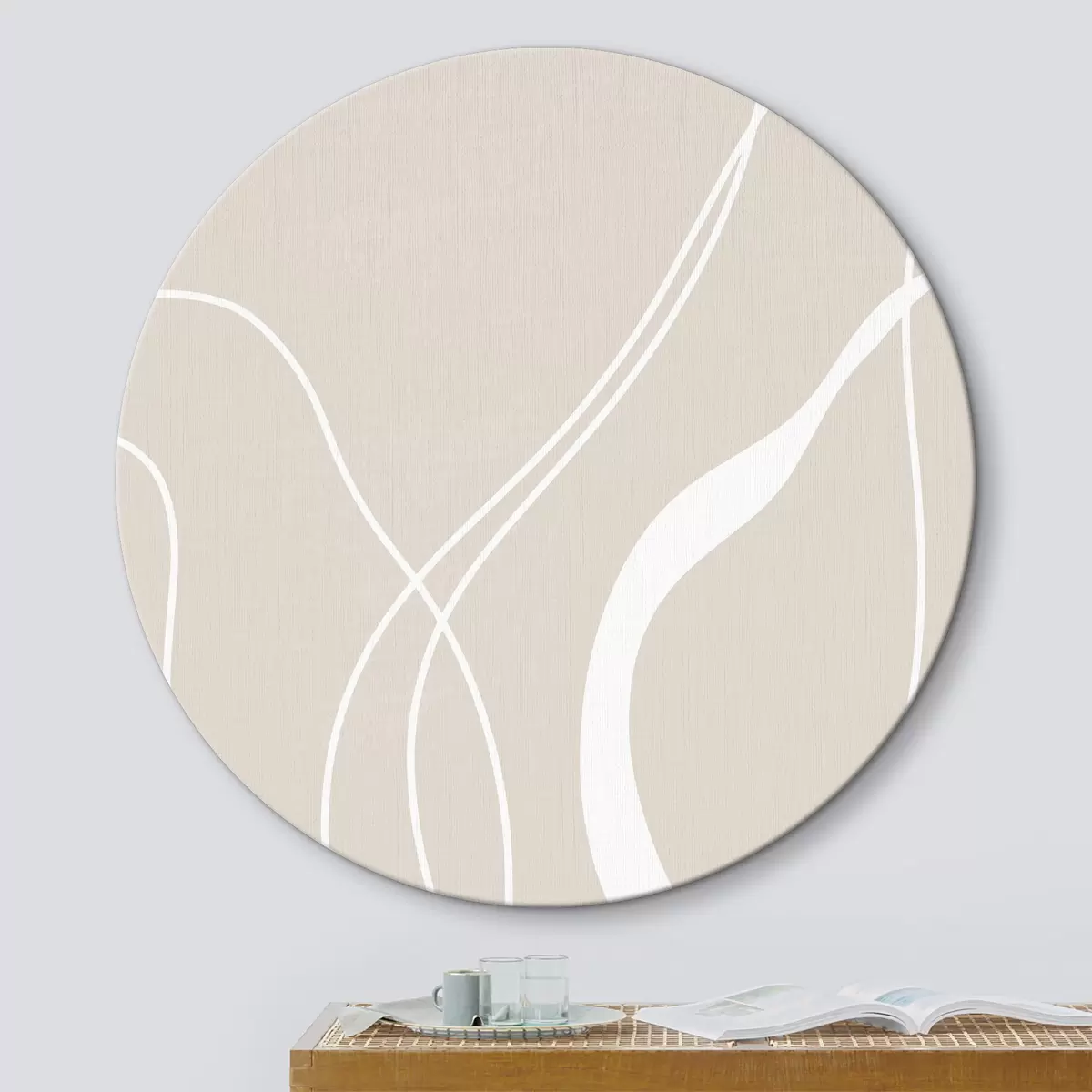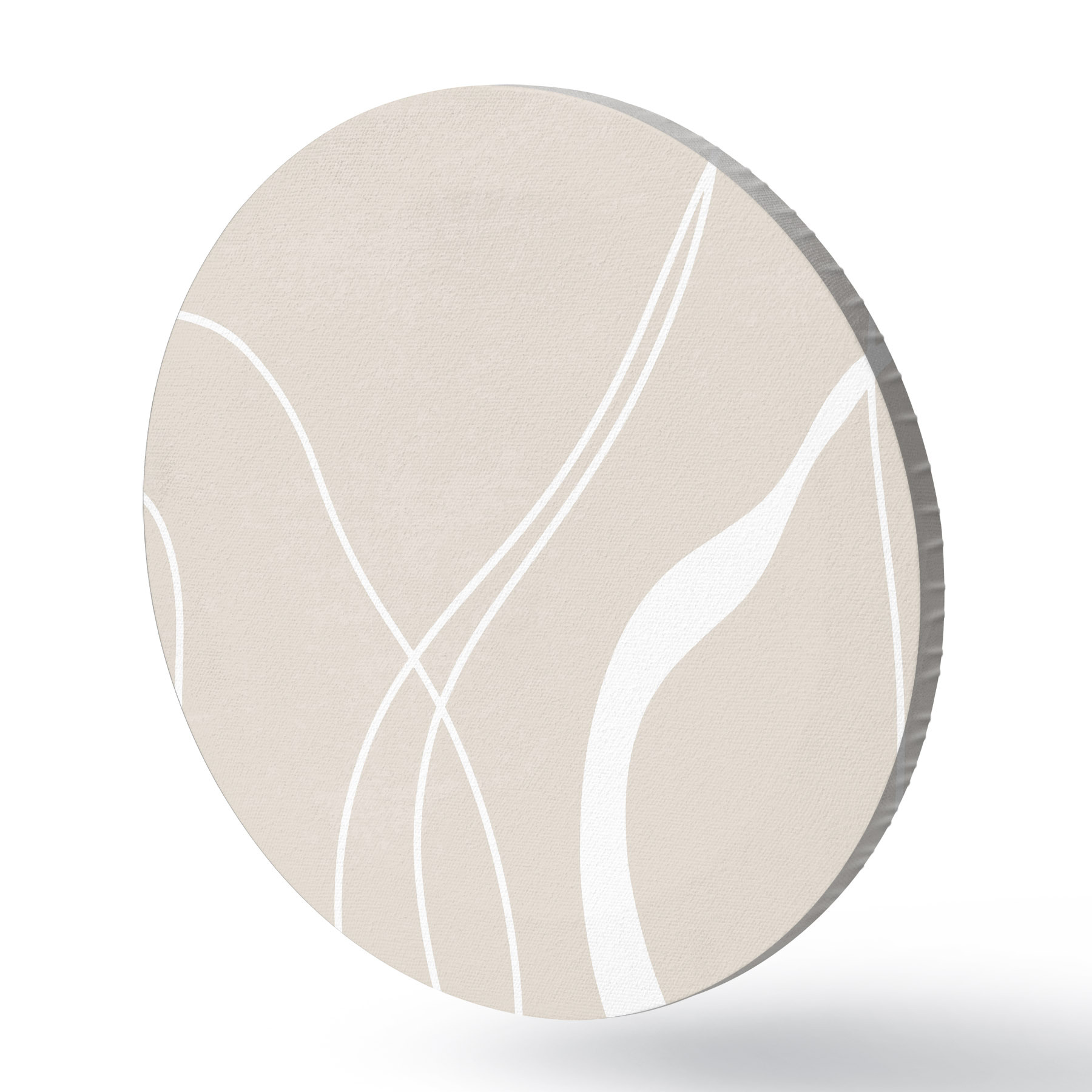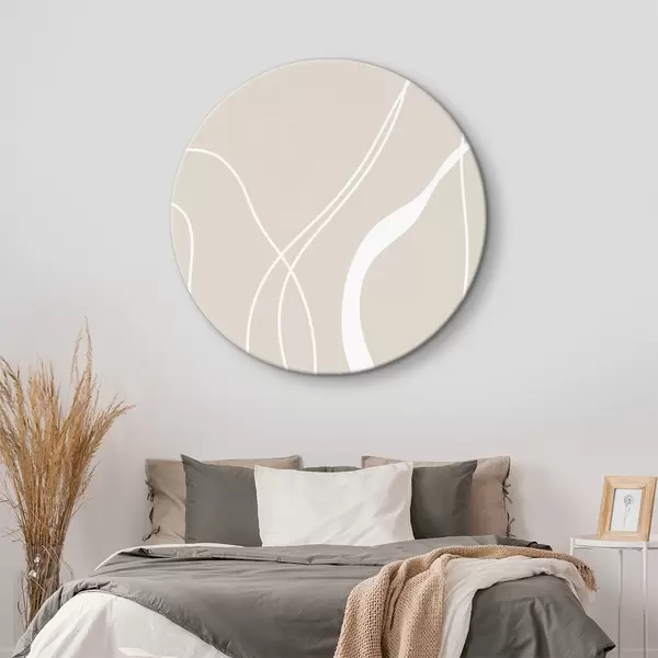 Runde Gemälde Weiße abstrakte Linien auf einem beigen Hintergrund r36488