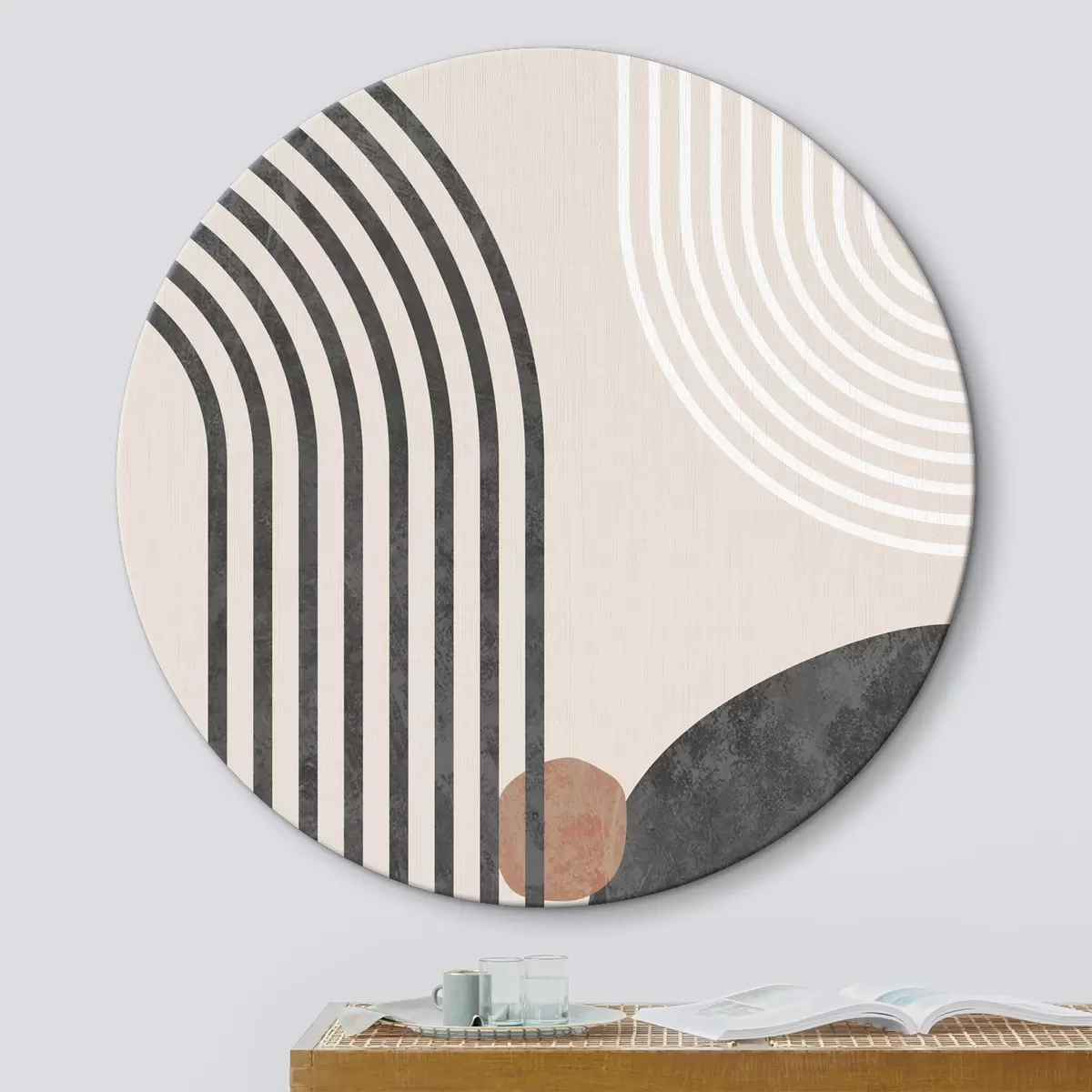 Runde Gemälde Trendige grafische Bögen im Bohème-Stil r36493