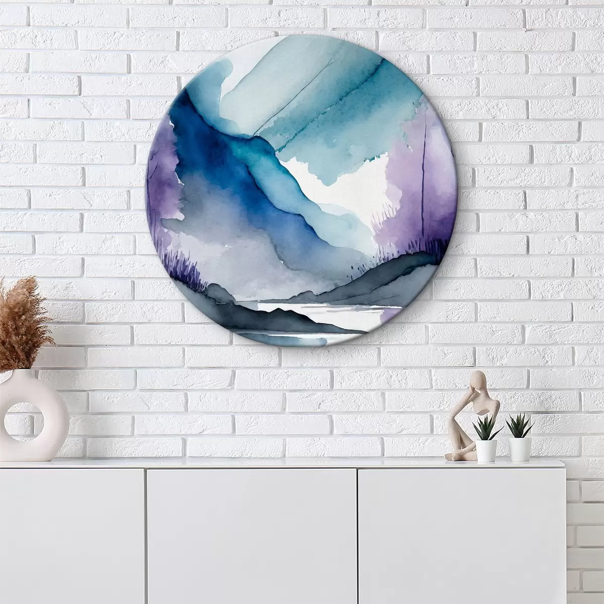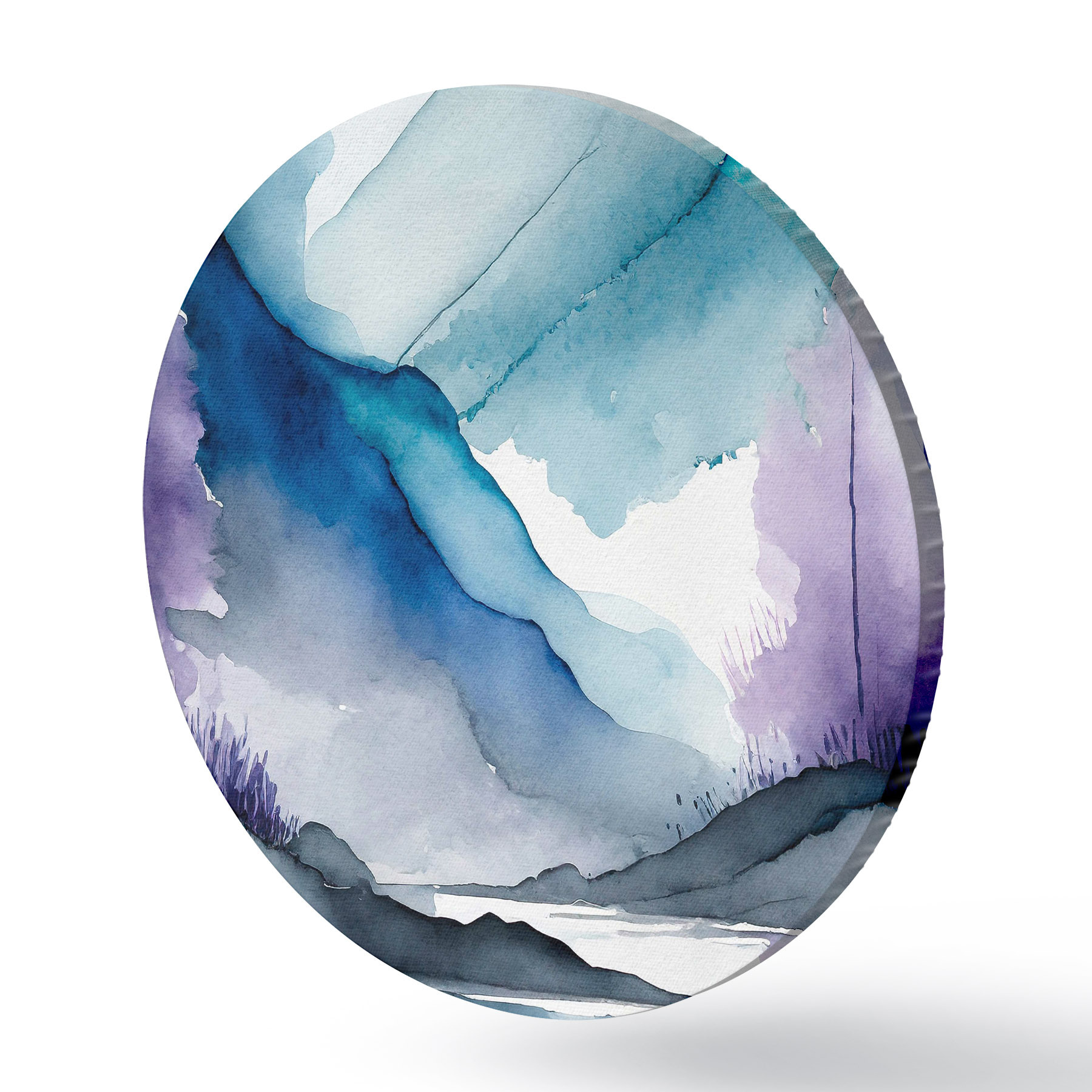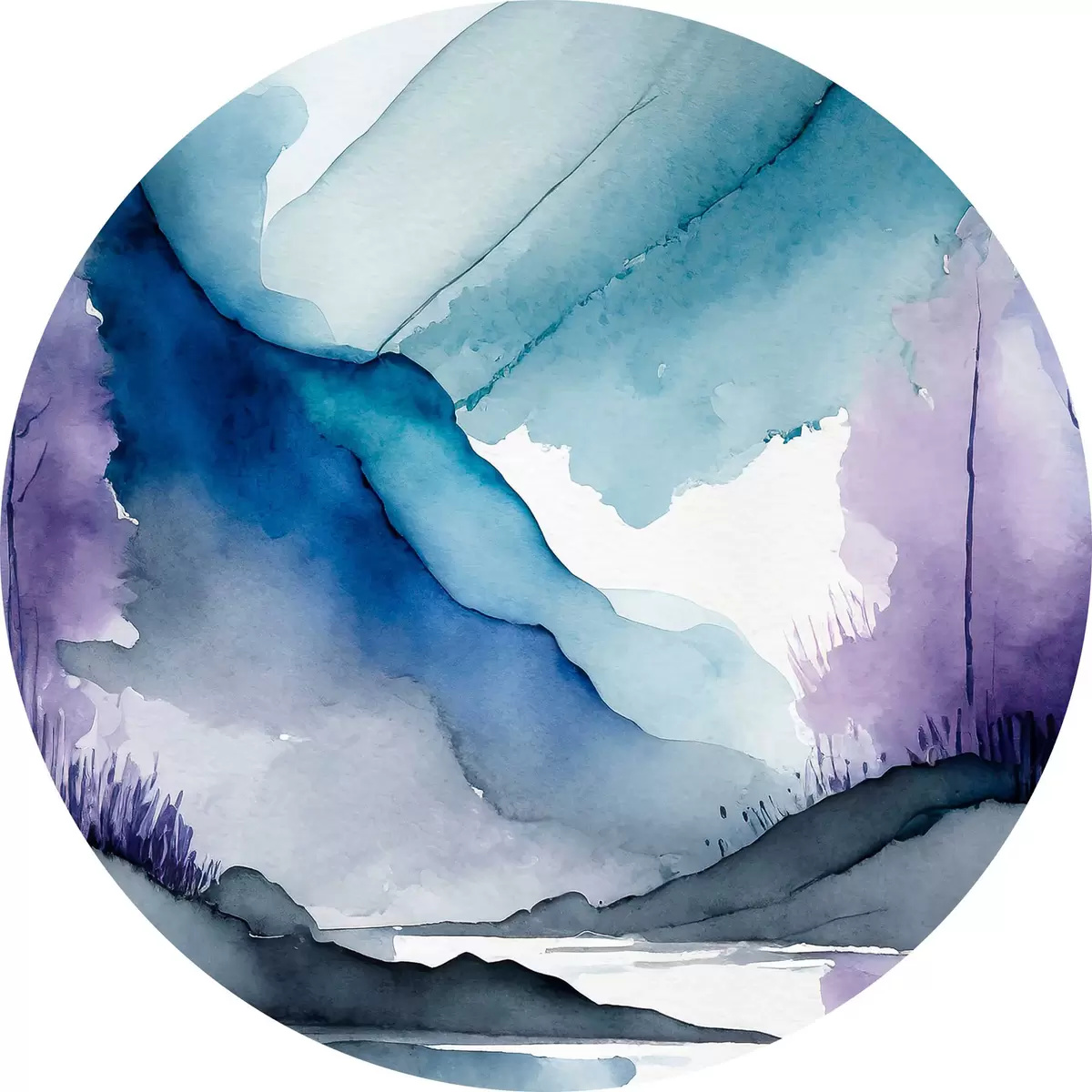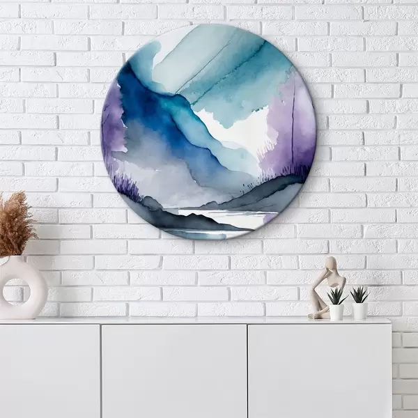 Runde Gemälde Neblige Berge und ruhige Gewässer r36494