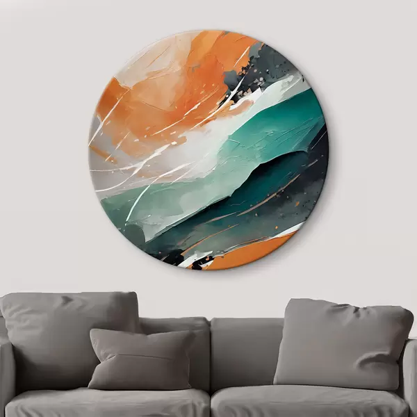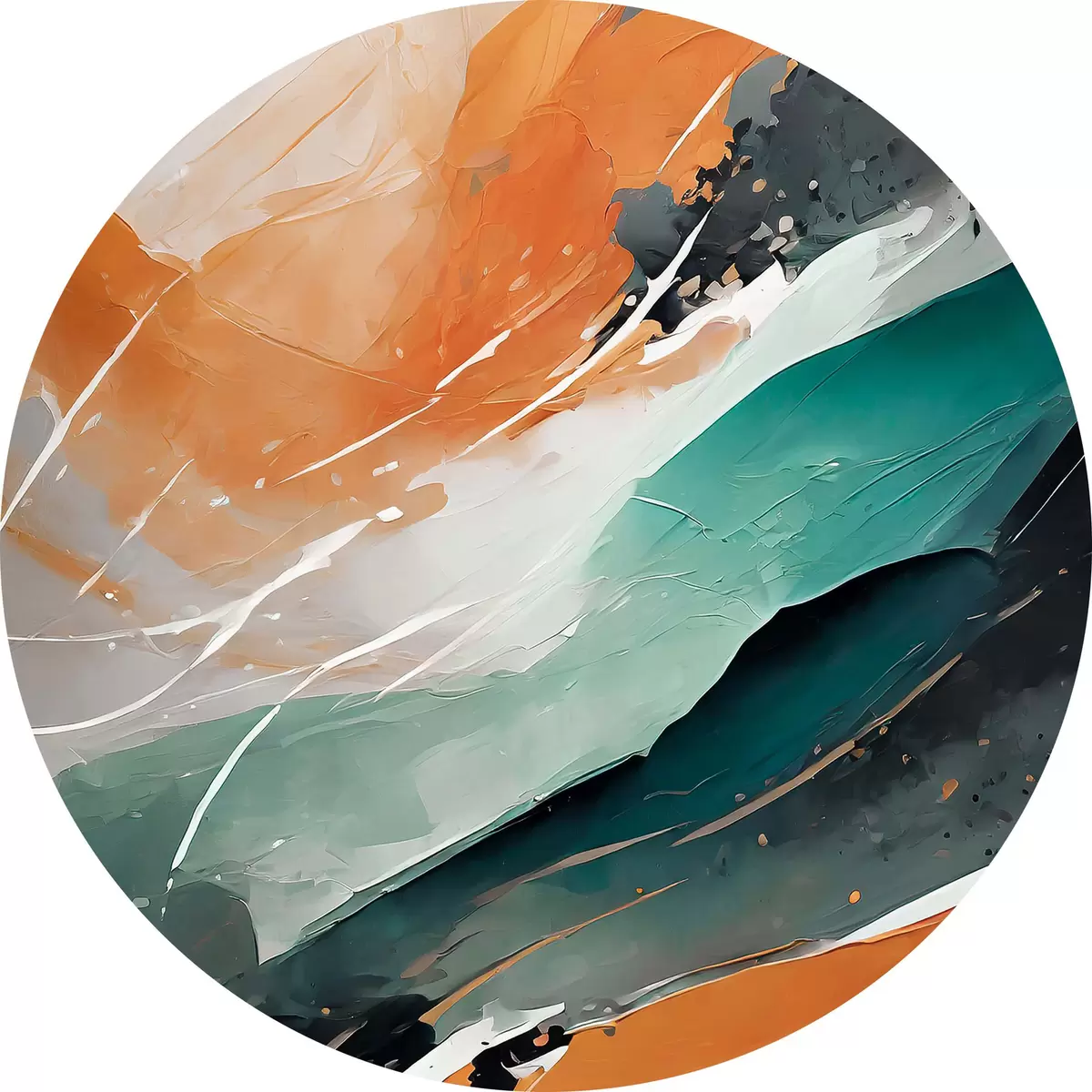 Runde Gemälde Abstrakte Acryl-Kunst, Pinselstrich, Farbe Textur, orange, blaue Farben r36497