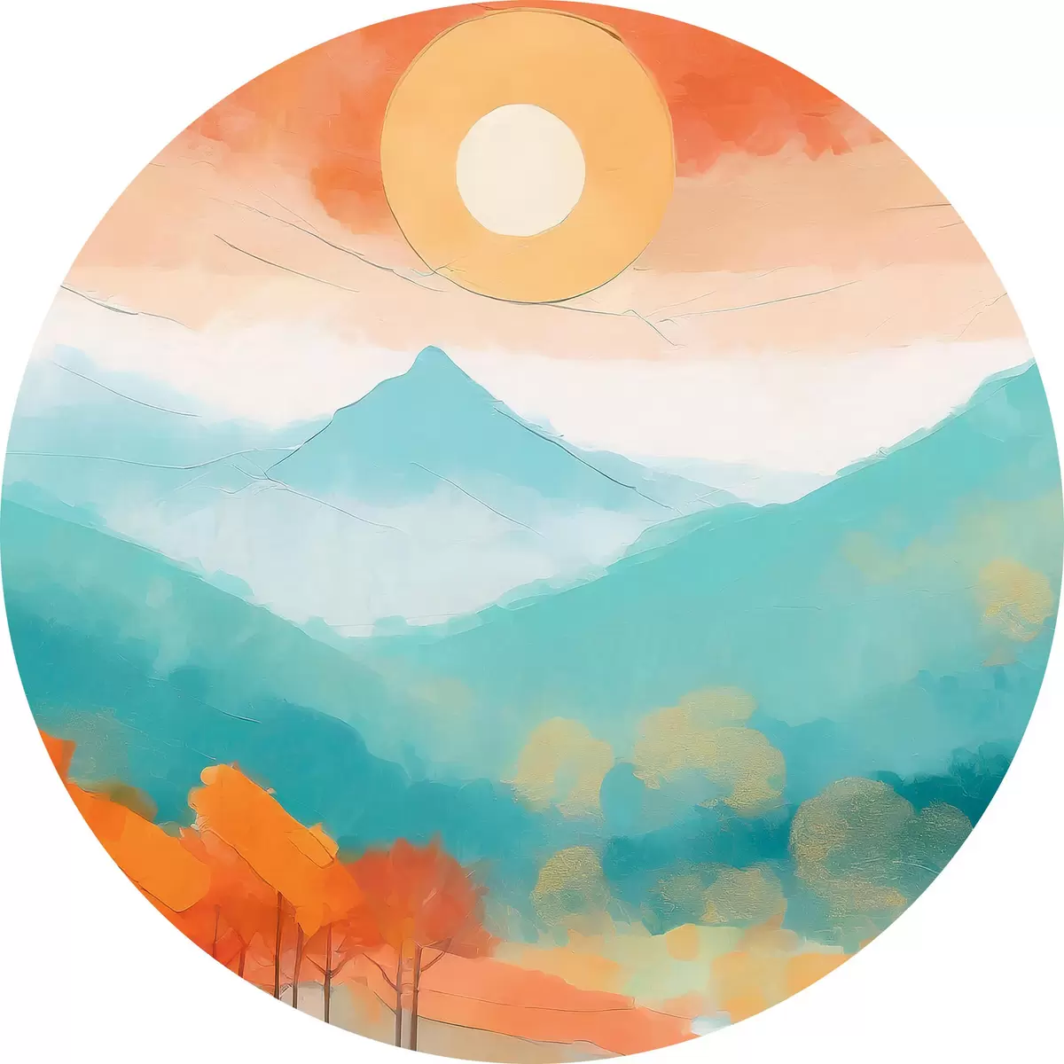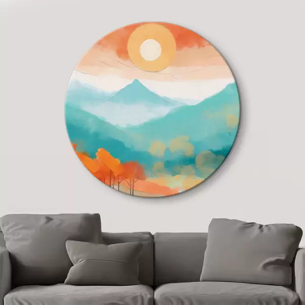 Runde Gemälde Herbstliche Wärme in einer ruhigen Berglandschaft r36506