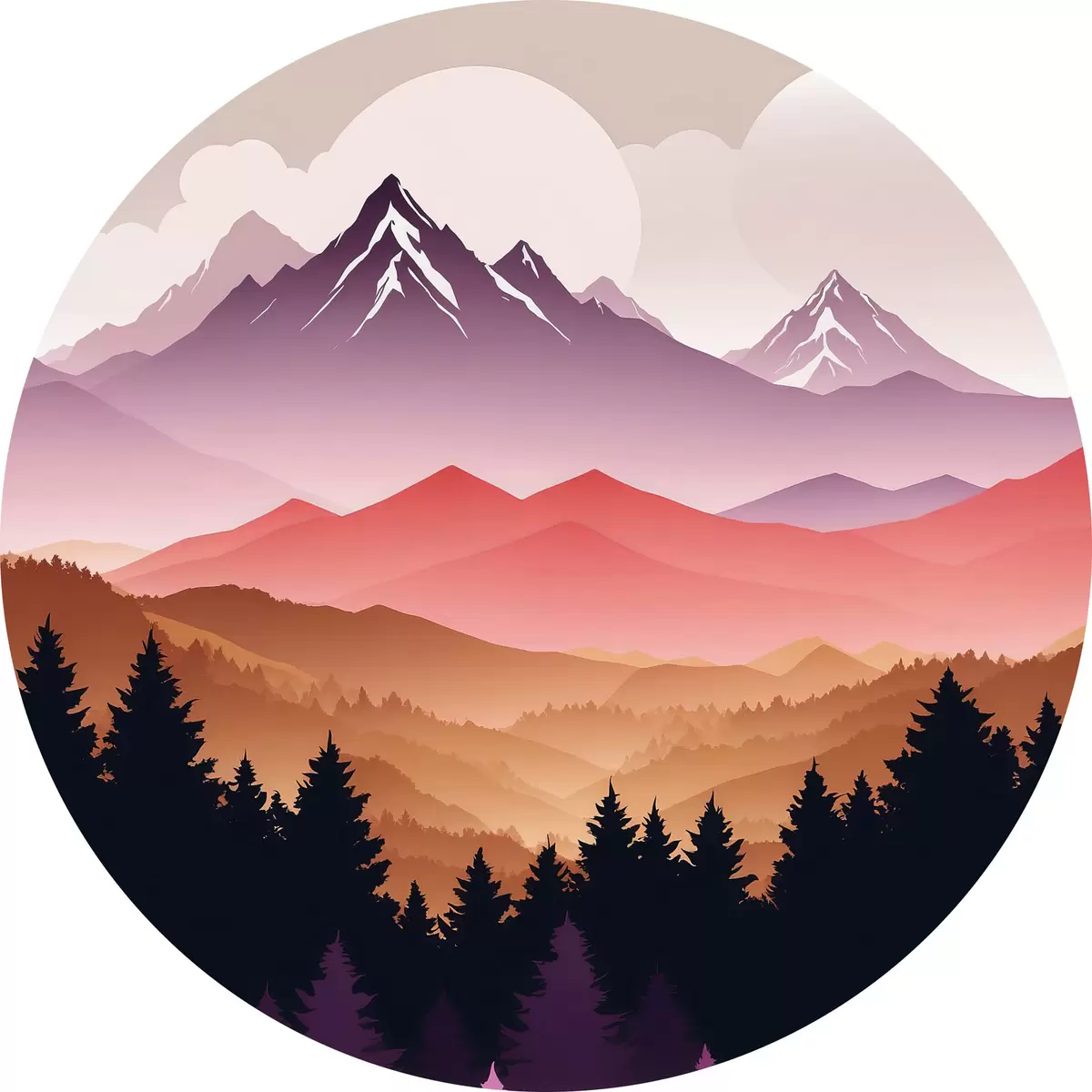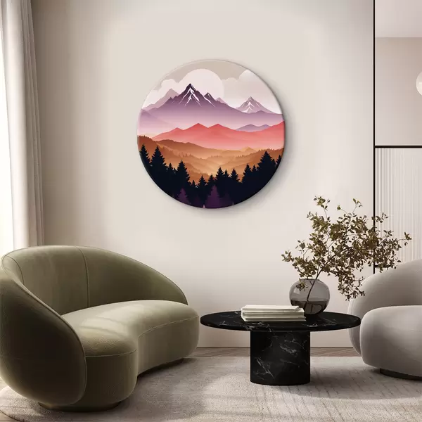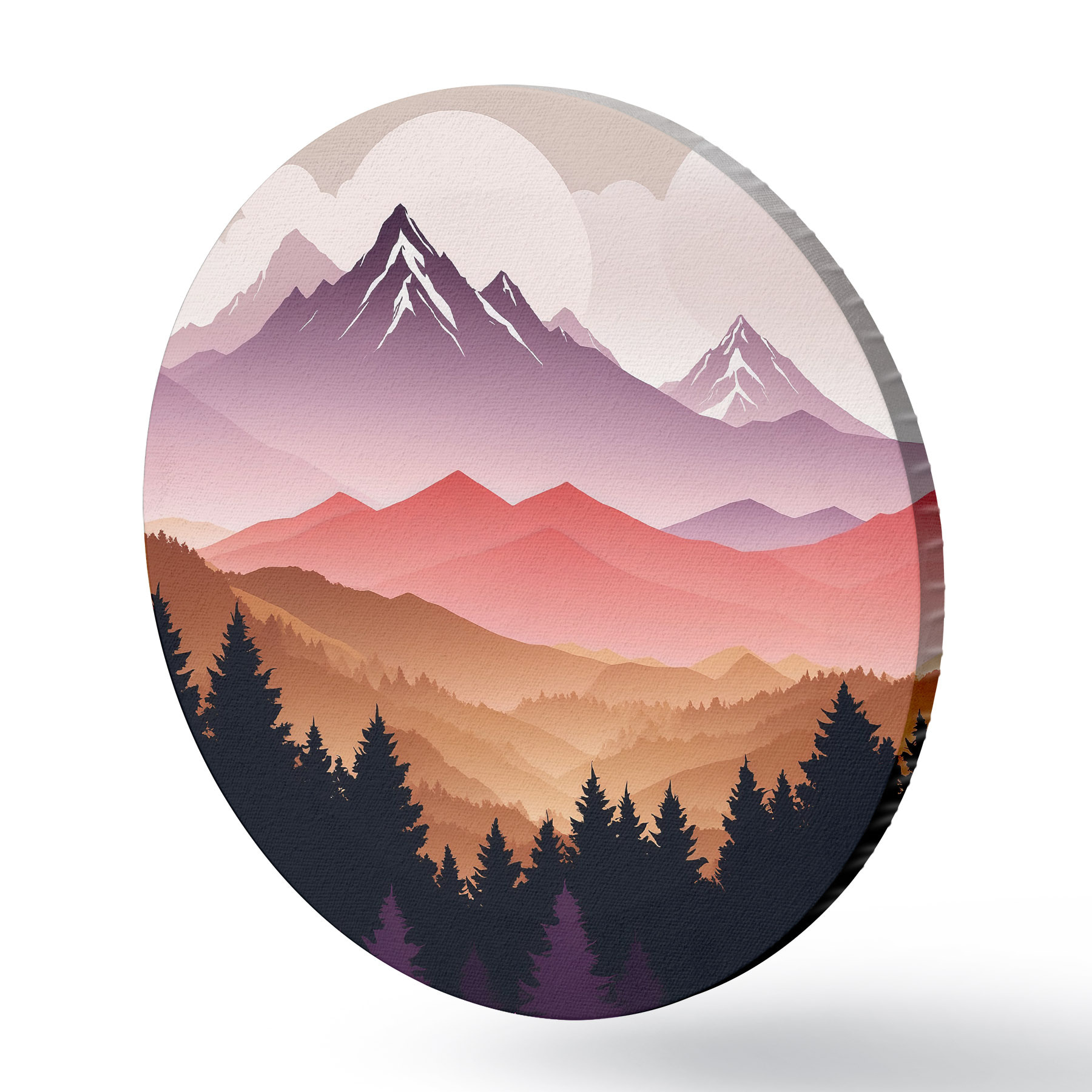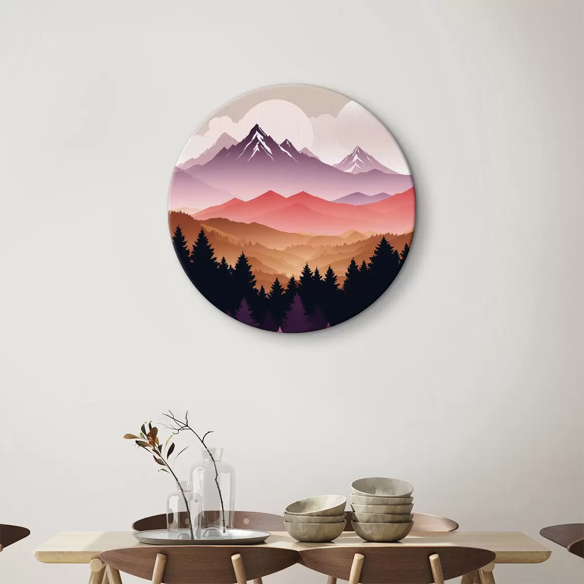 Runde Gemälde Sonnenuntergang über den friedlichen Bergen r36527