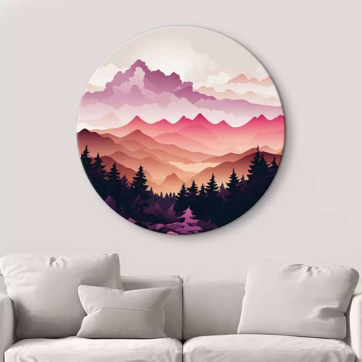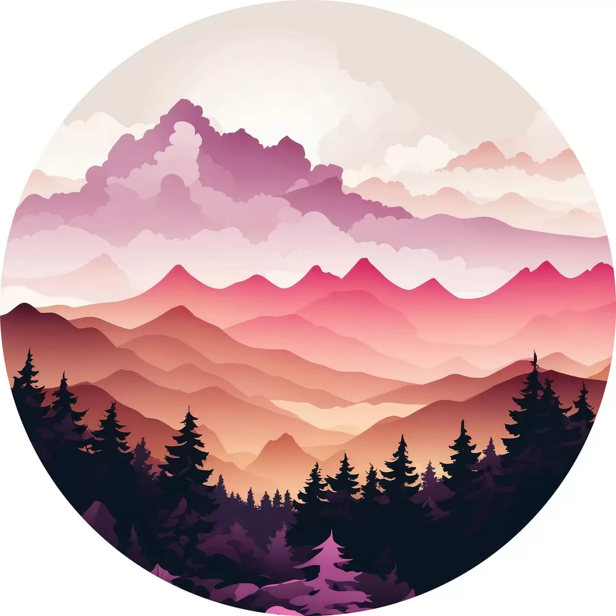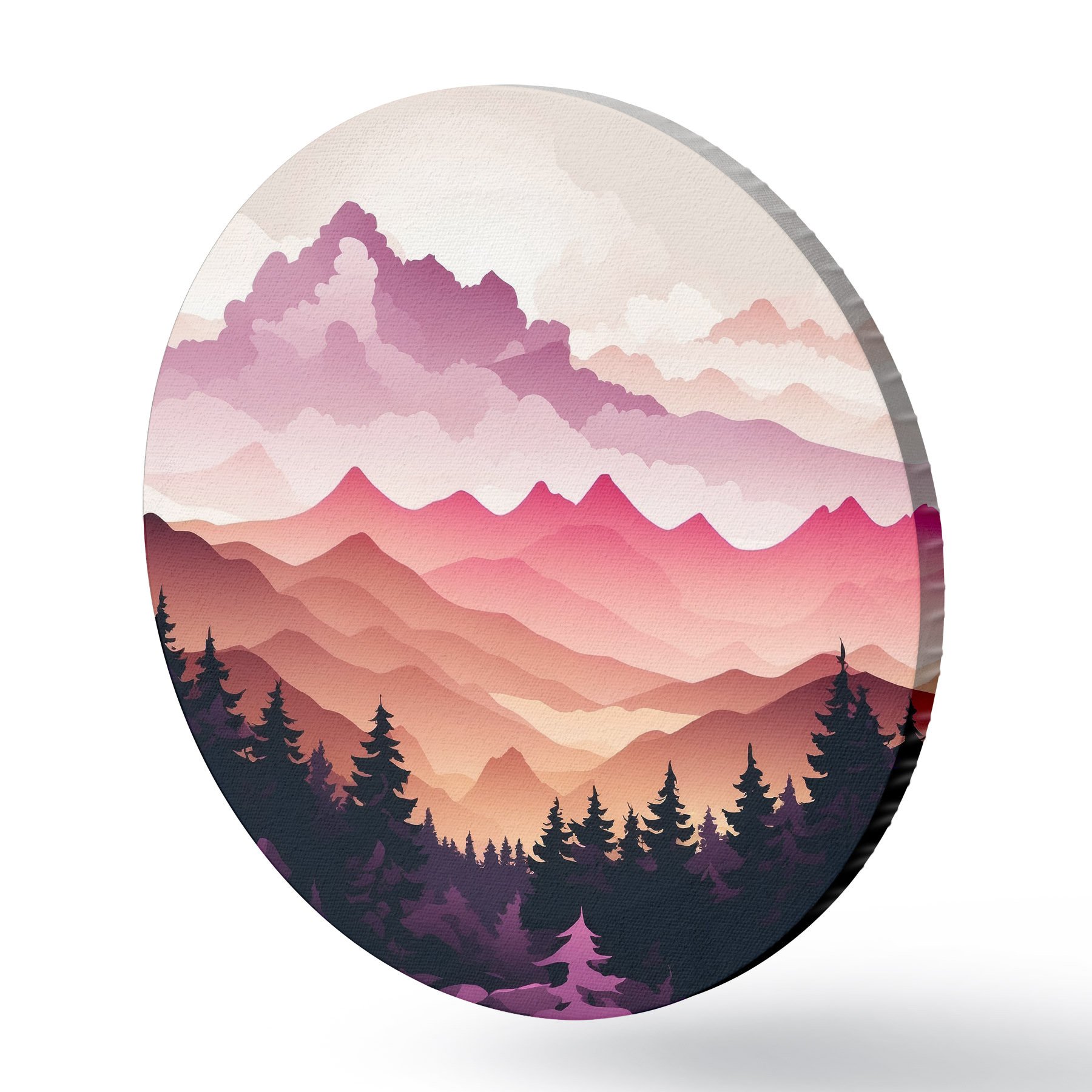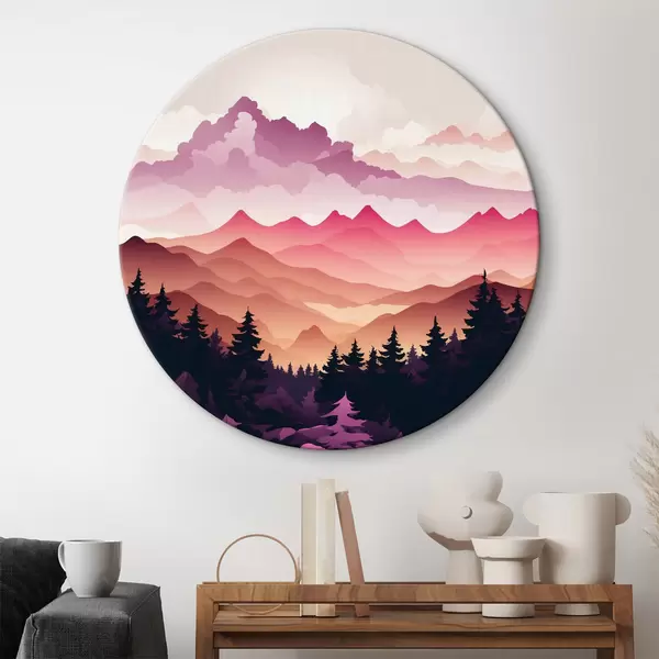Runde Gemälde Sonnenuntergang über den friedlichen Bergen r36528