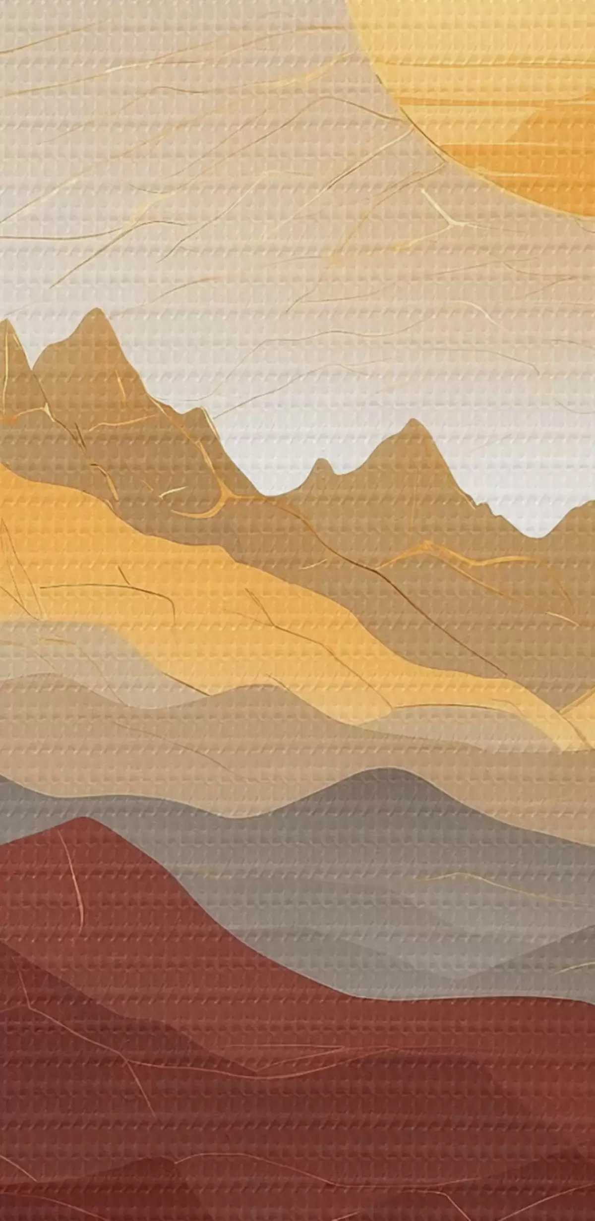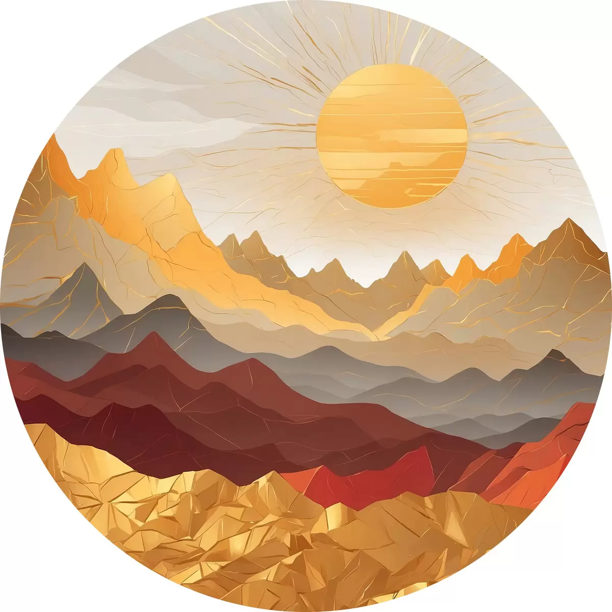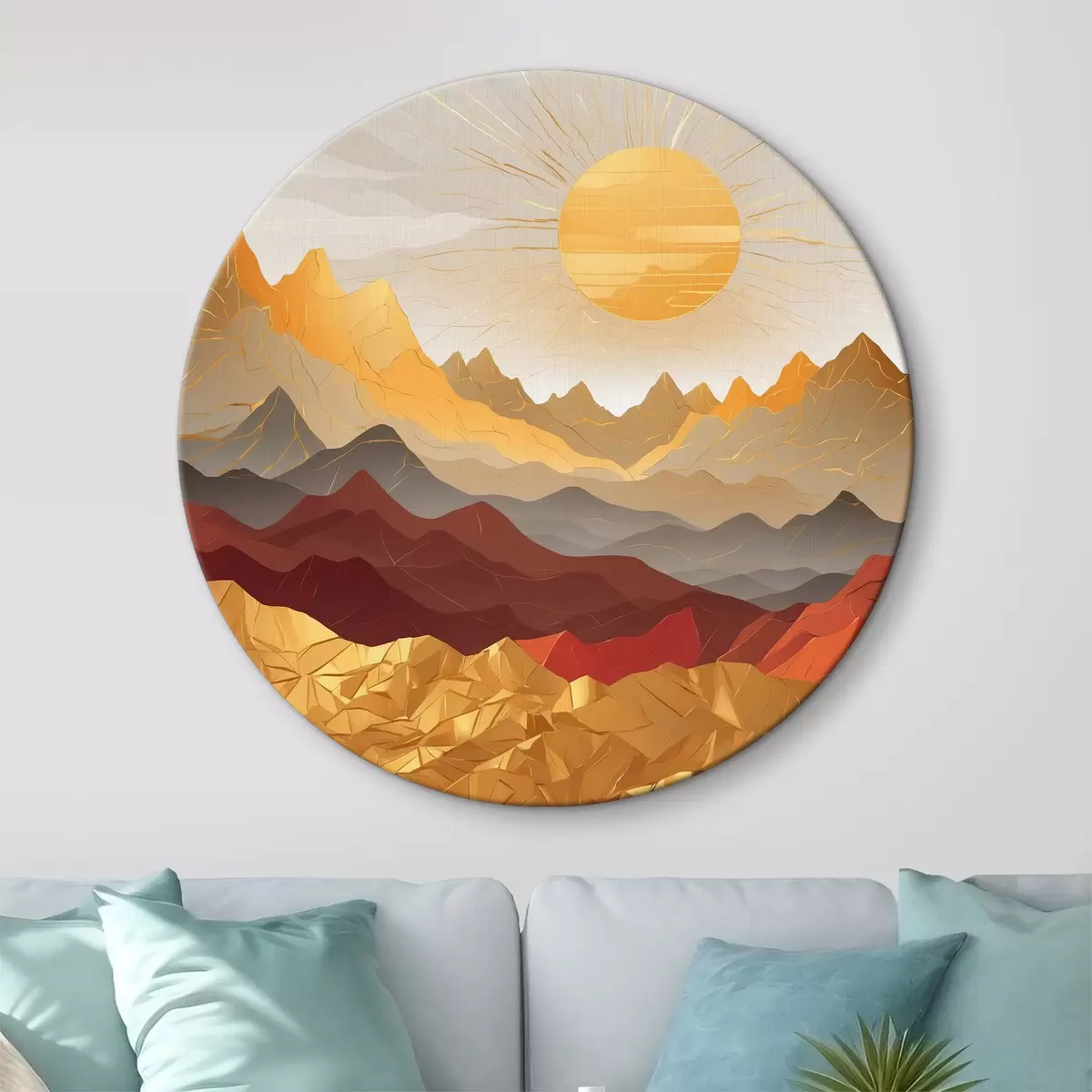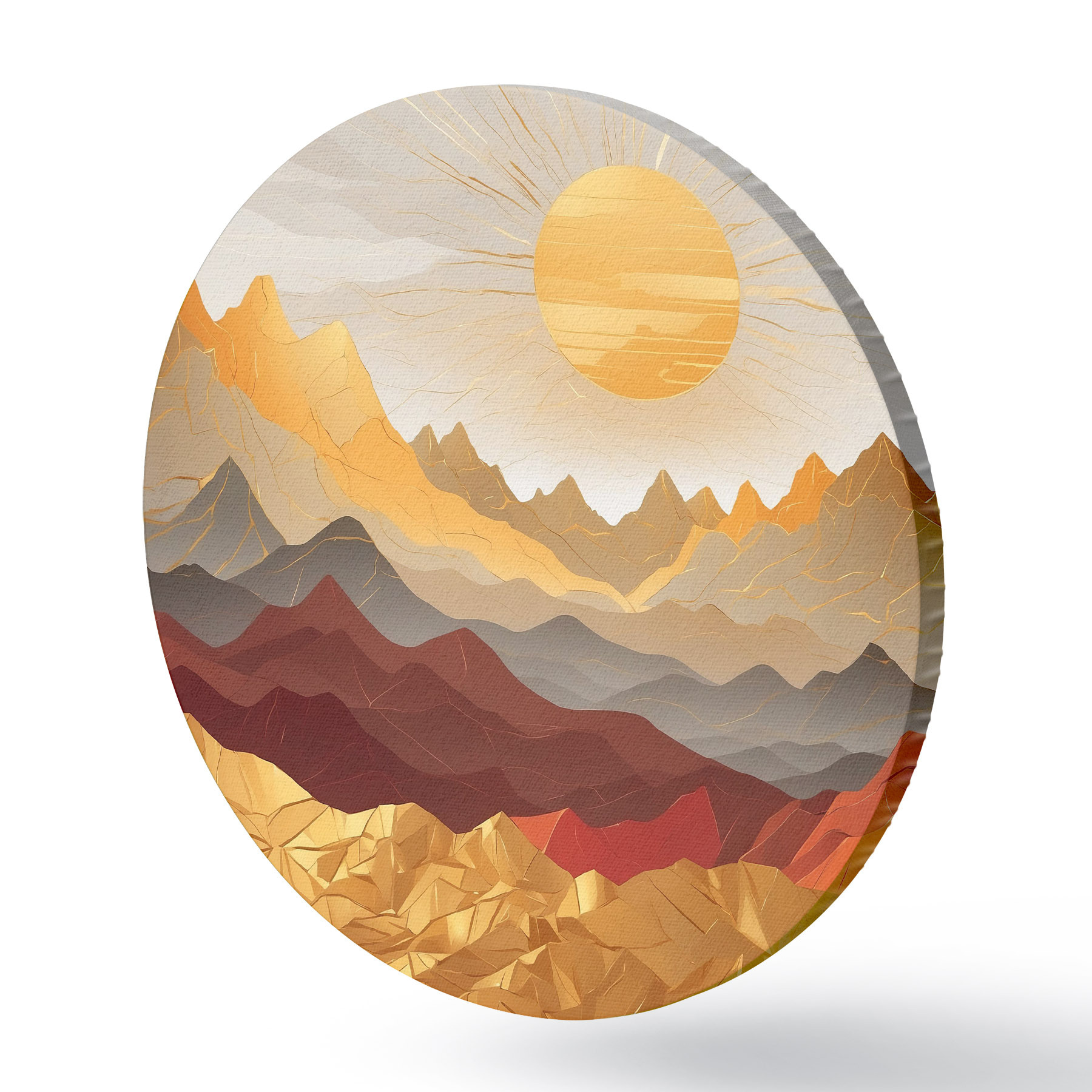 Runde Gemälde Sonnenaufgang über einer geometrischen Berglandschaft r36529