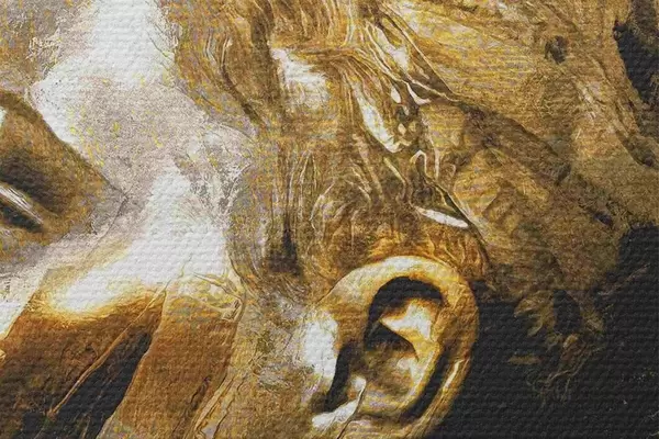 Um die Leinwand auf Keilrahmen zu spannen, ohne das Bild zu beschädigen, verwenden wir ein gespiegeltes Bild.