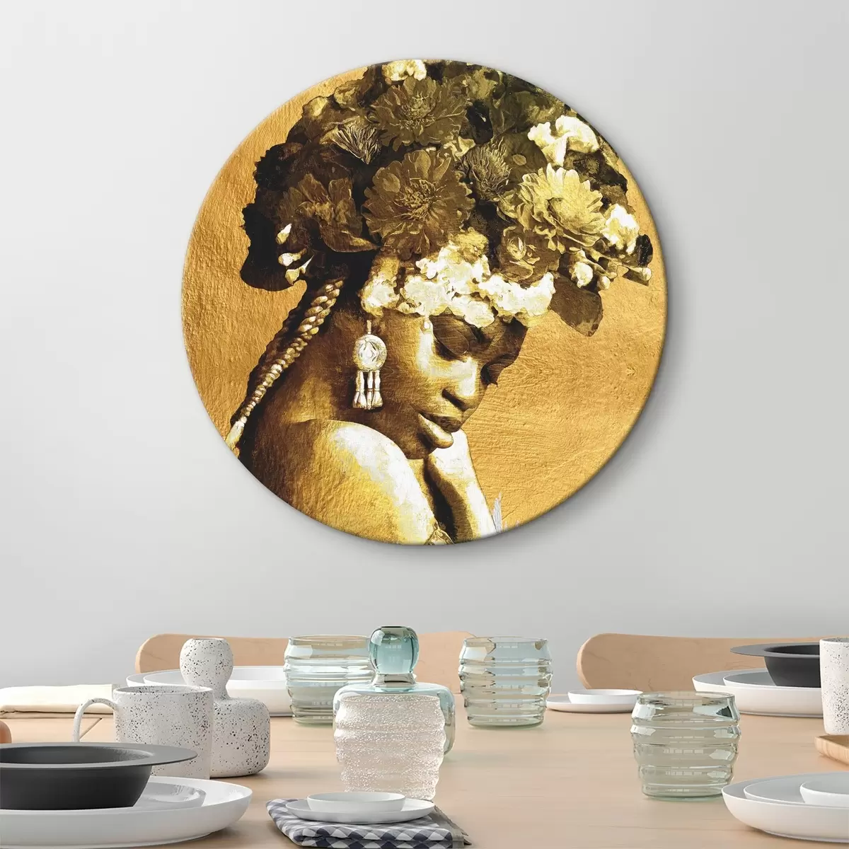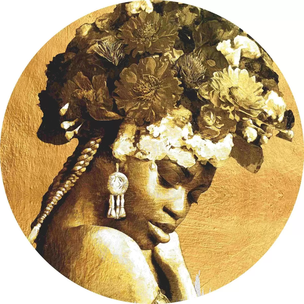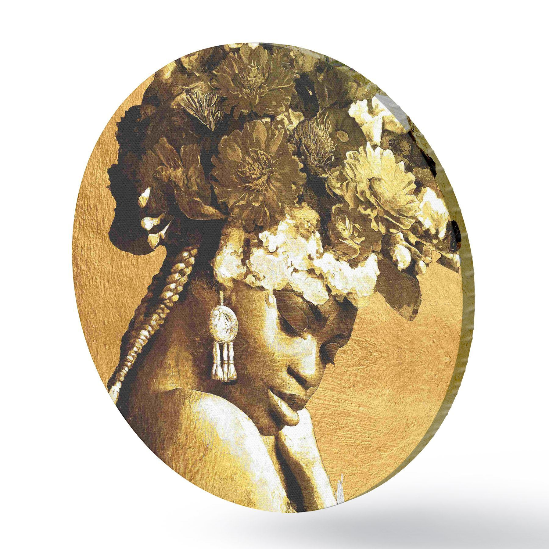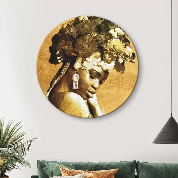 Runde Gemälde Frau mit Blumen auf dem Kopf r36532