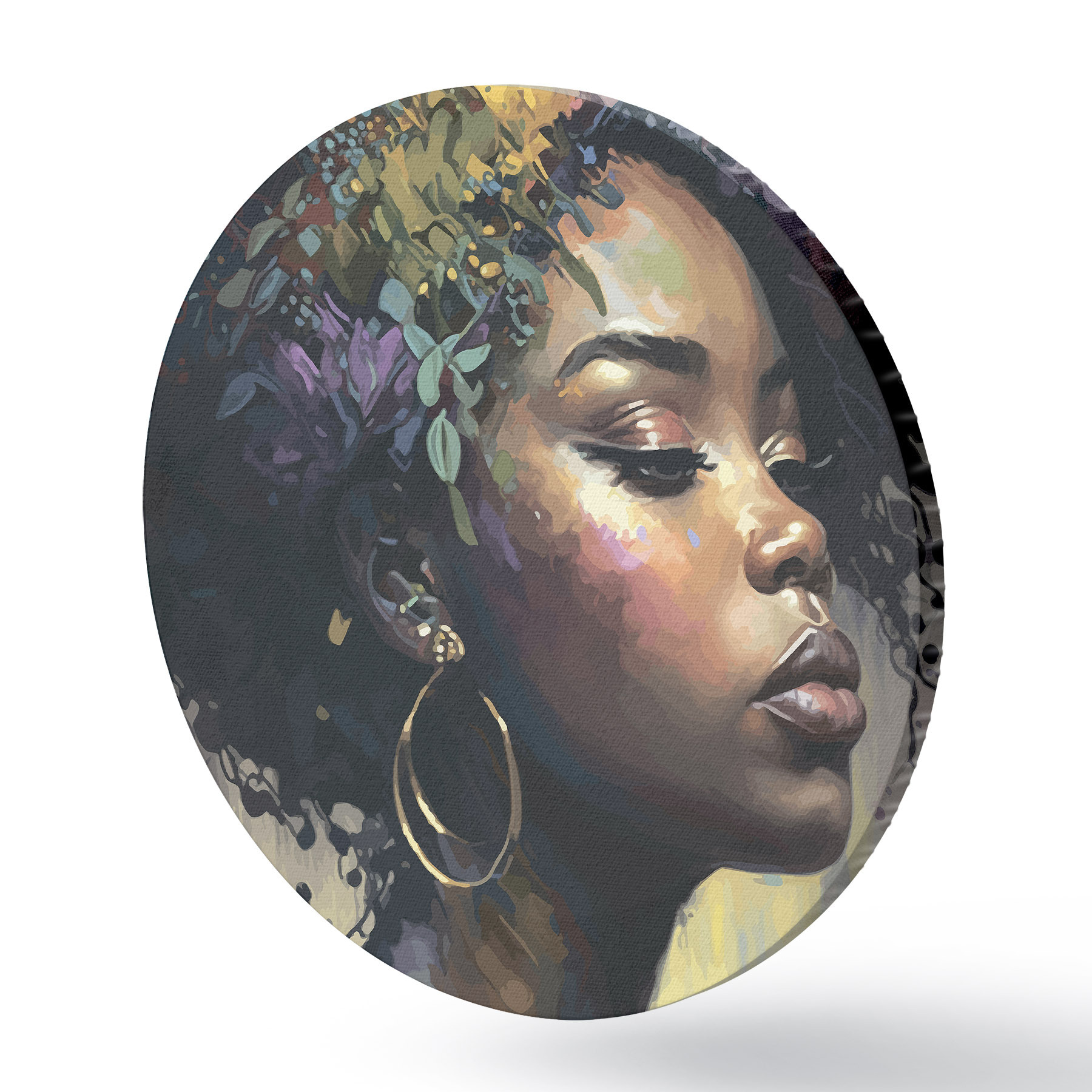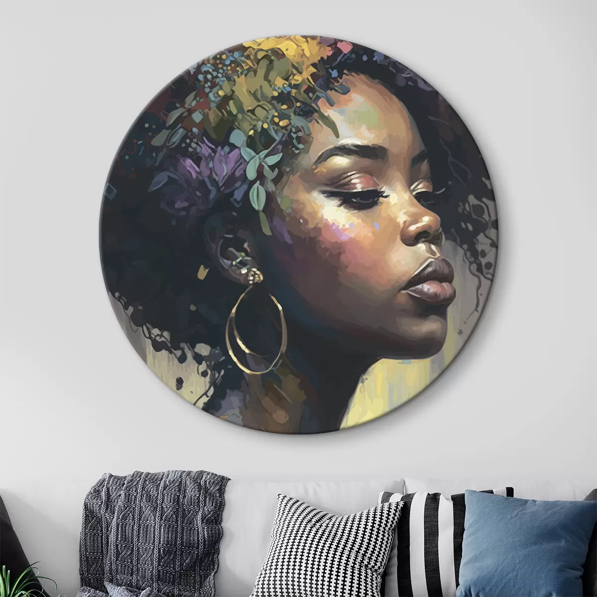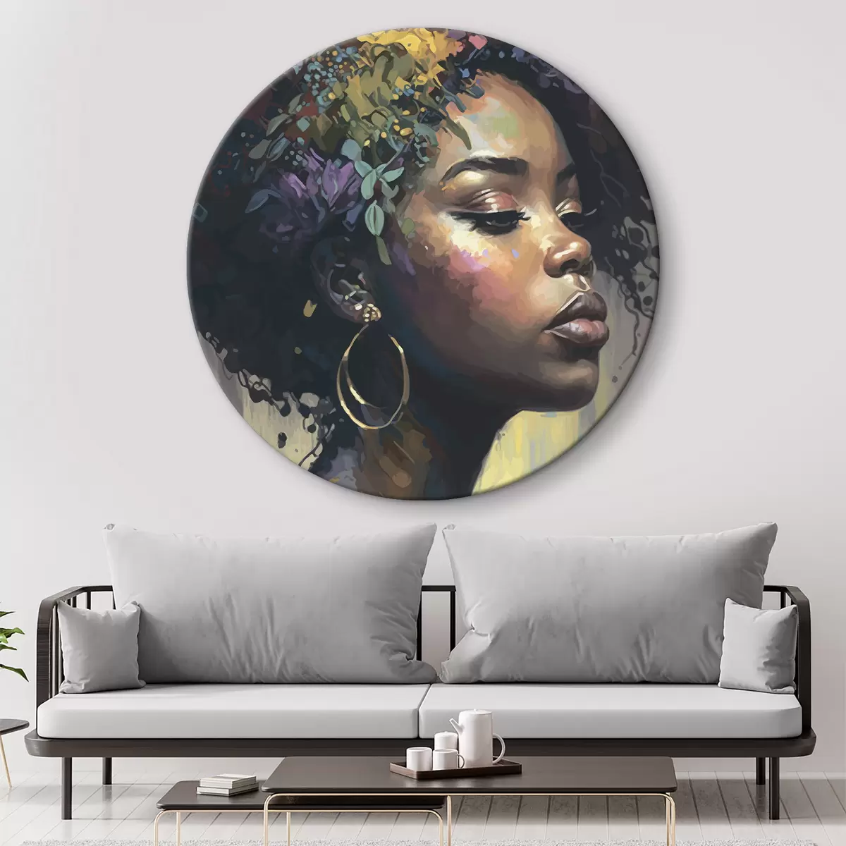 Runde Gemälde Schöne schwarze Frau mit gefärbtem Haar r36577