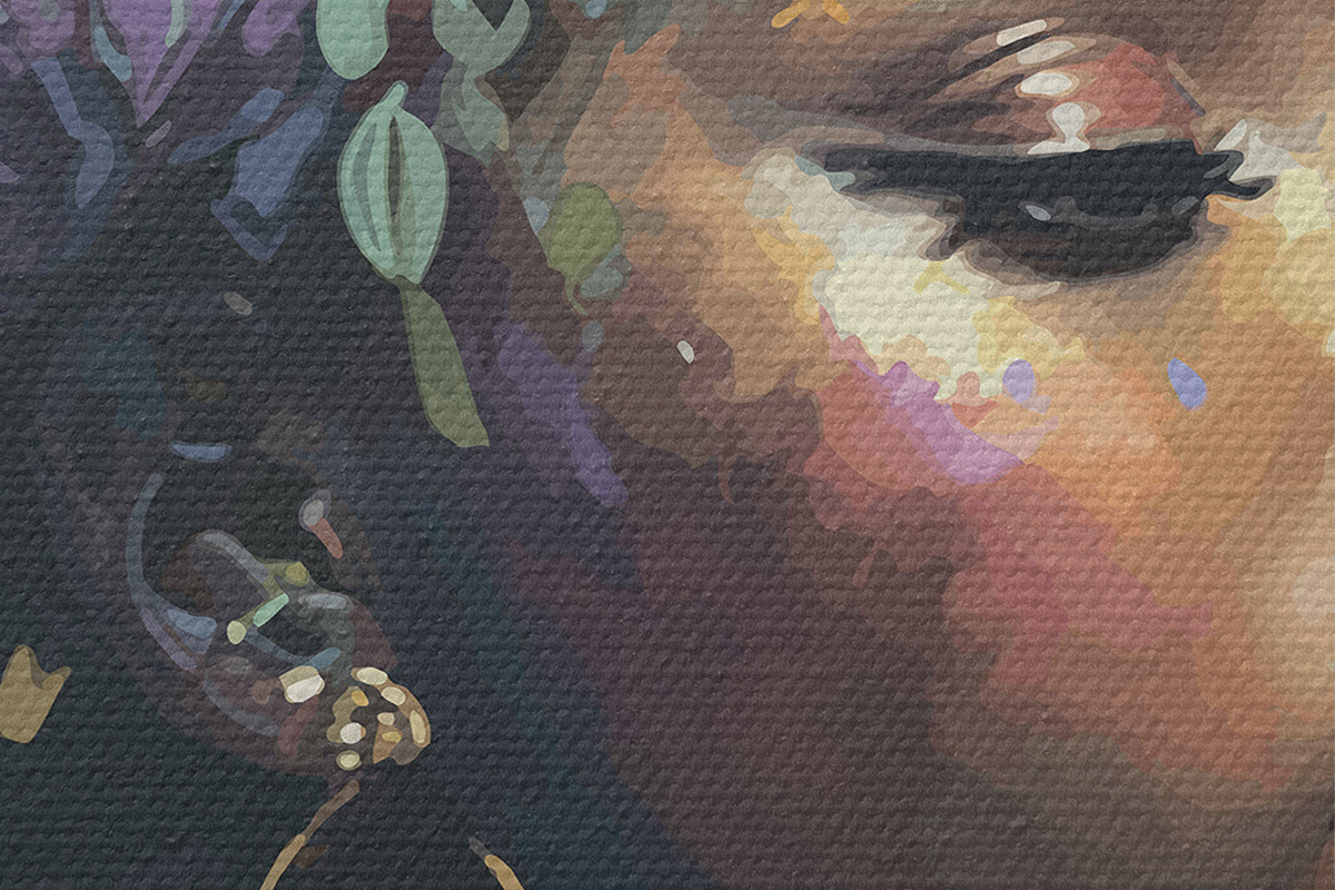 Drei Materialtypen stehen zur Verfügung: Economic Canvas - ein dichtes und haltbares Material für den Digitaldruck, identisch mit Malerleinwand, wasserfeste Oberfläche, realistische Wiedergabe von Details, mittelkörniges Material. Premium Canvas - die Textur ähnelt der einer Malerleinwand (verwobene kleine Fäden). Weiche, detaillierte Wiedergabe des Bildes auf einer matten Oberfläche. Eco-Premium - hochwertiges Gewebe aus 100% Baumwolle. Dank der natürlichen Baumwollfasern ist das Material langlebig und verschleißfest. Hervorragende Farbwiedergabe und Detailtreue.