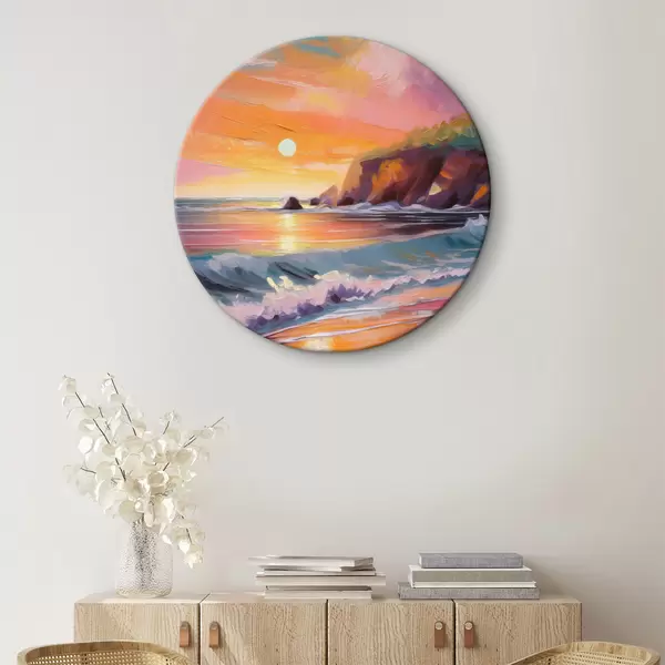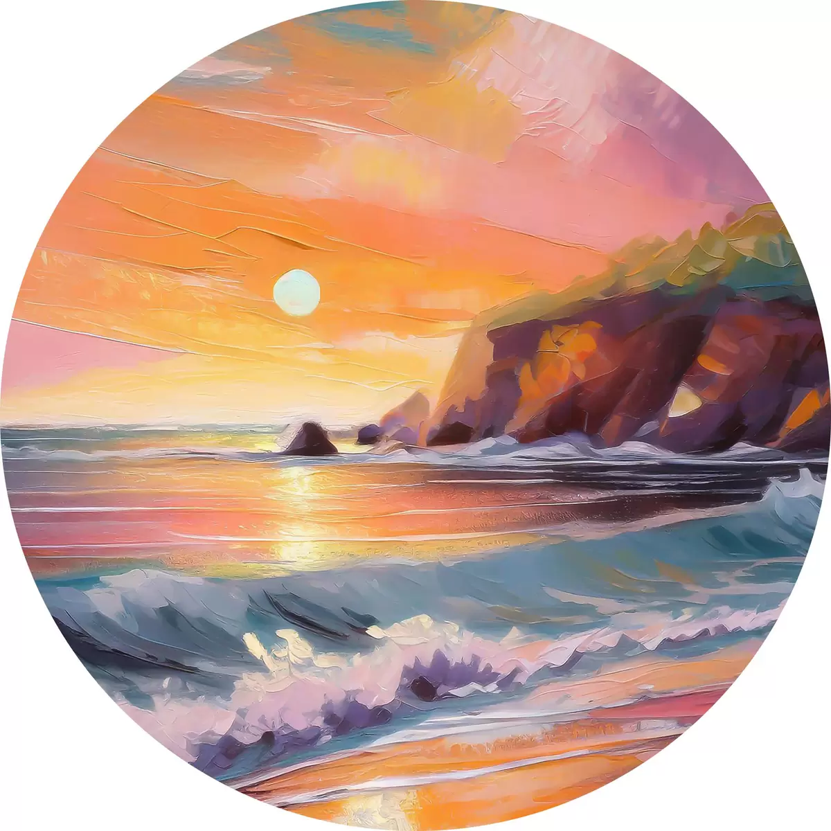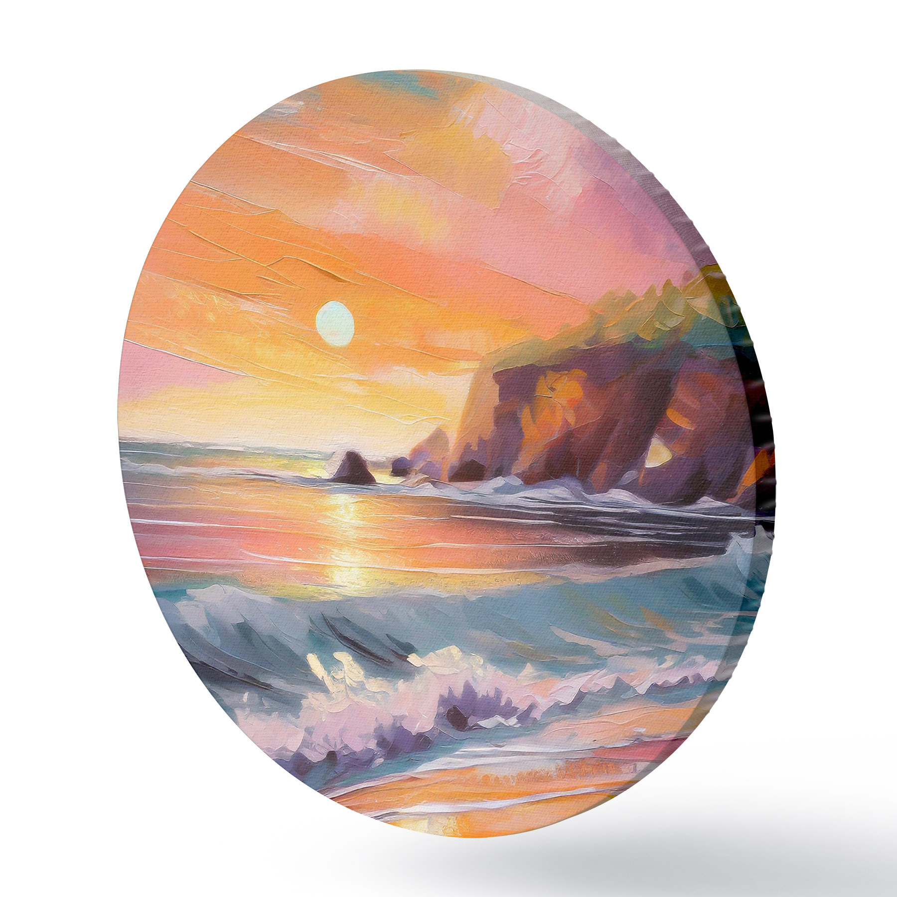 Runde Gemälde Sonnenaufgang an der Küste, Meereswellen, lebhafte Pinselstriche, Acryl r36581