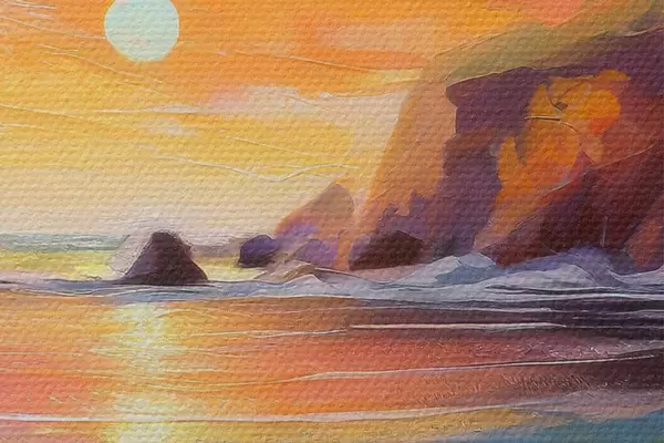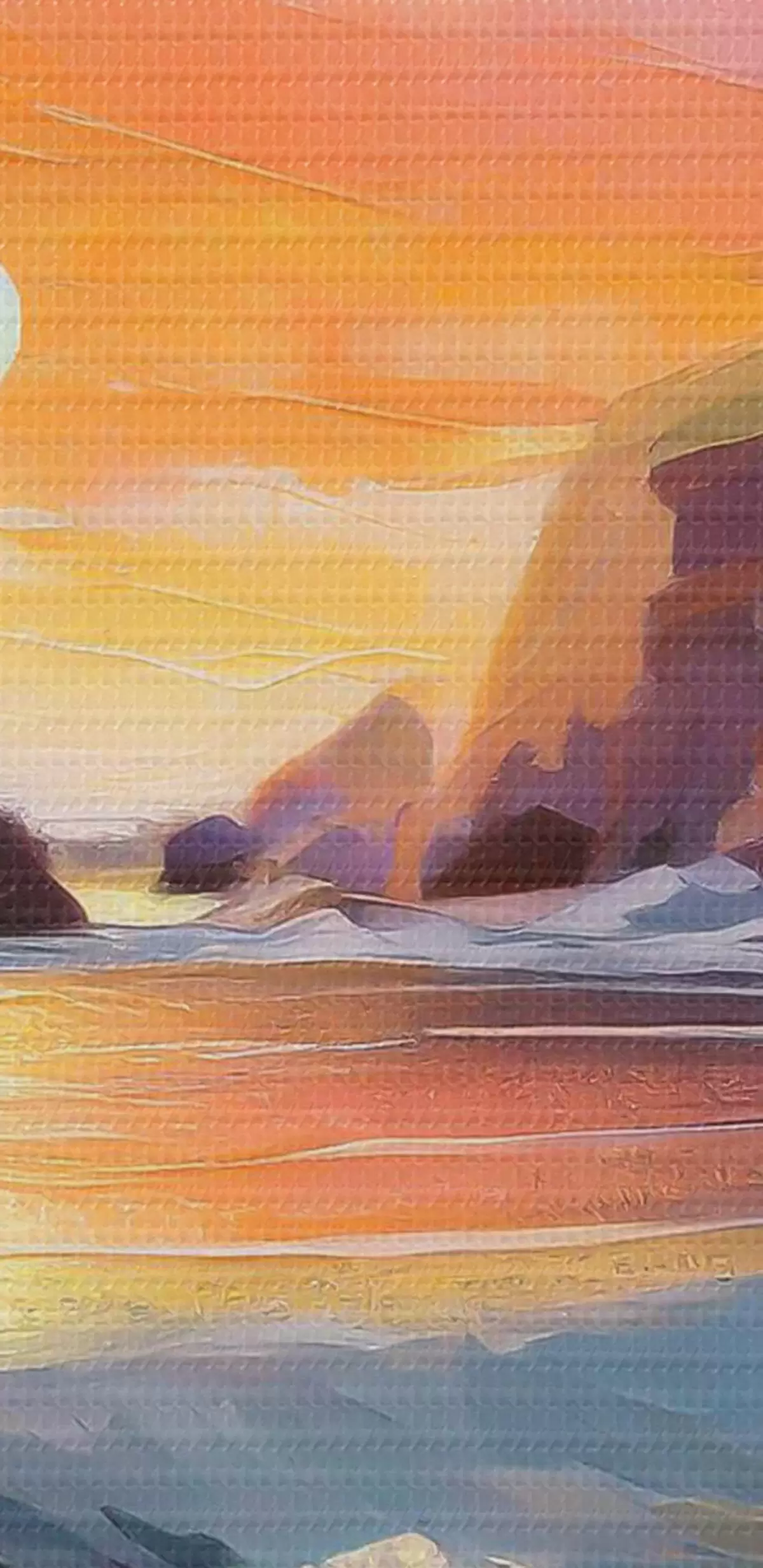 Bild Sonnenaufgang an der Küste, Meereswellen, lebhafte Pinselstriche, Acryl Nr r36581