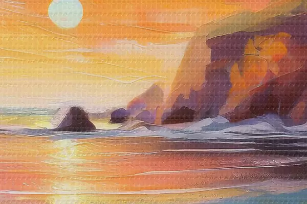 Bild Sonnenaufgang an der Küste, Meereswellen, lebhafte Pinselstriche, Acryl Nr r36581