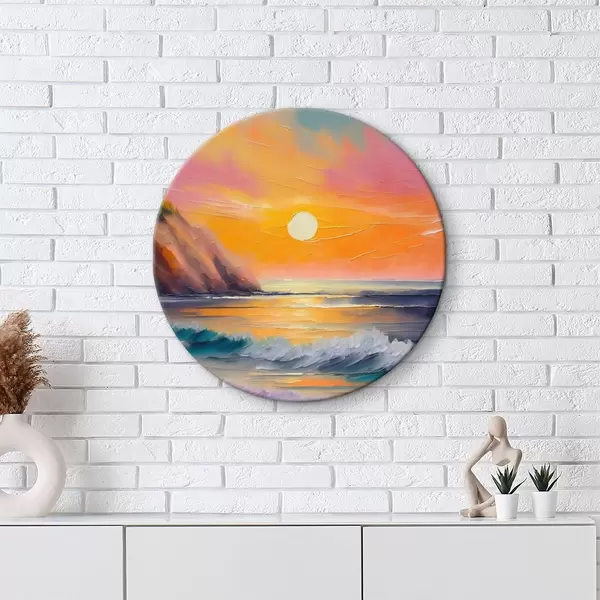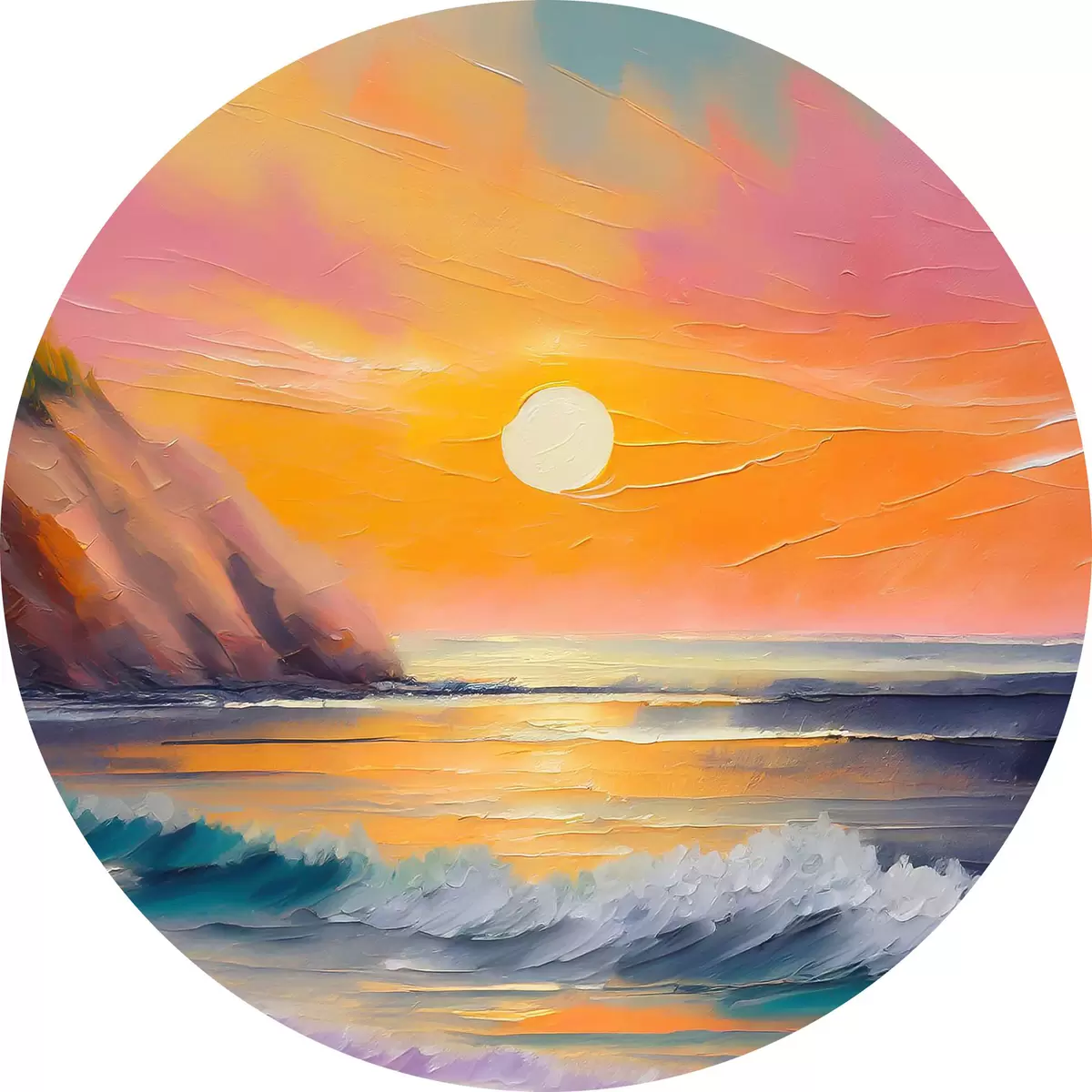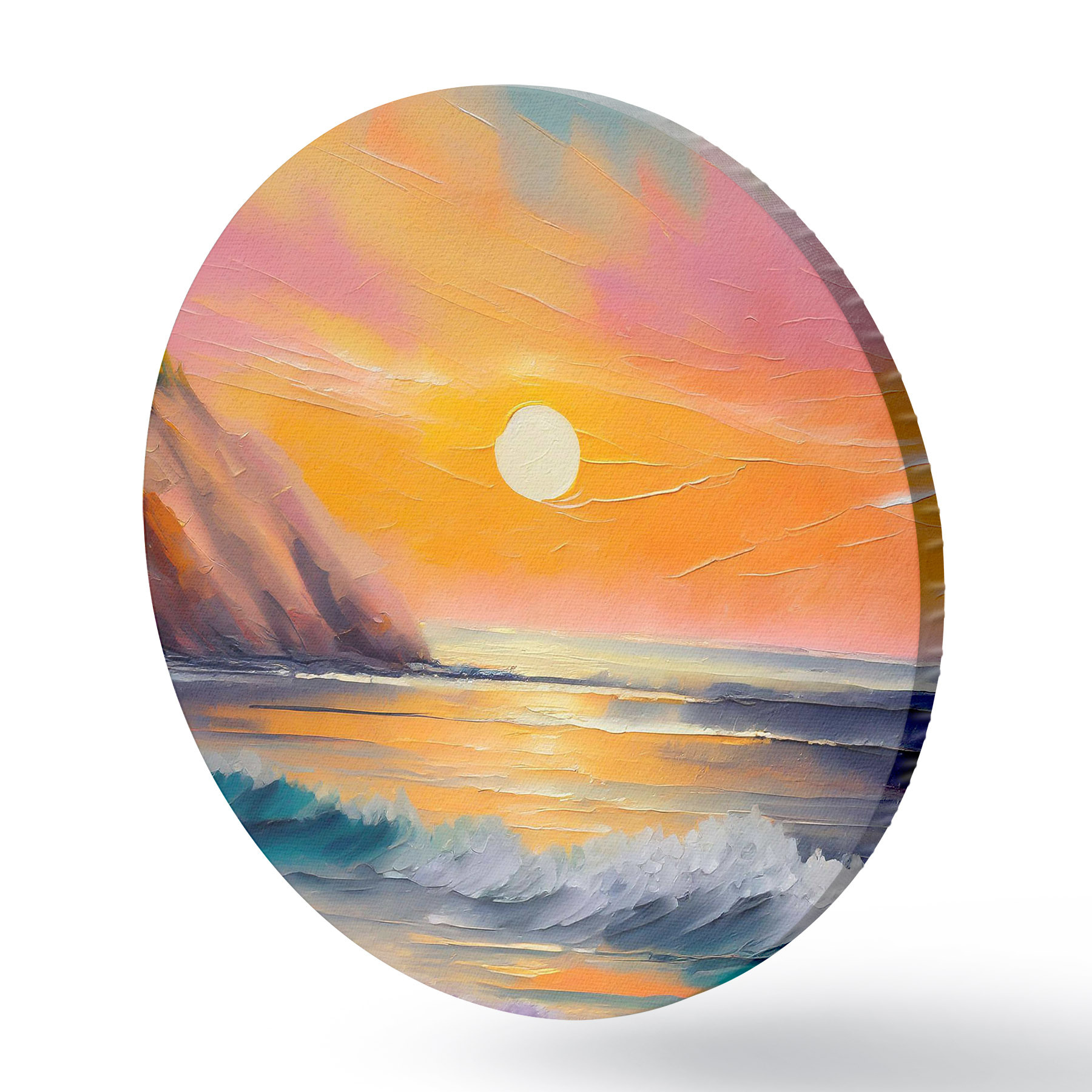 Runde Gemälde Die Farben des Sonnenuntergangs umarmen die ruhigen Wellen r36582