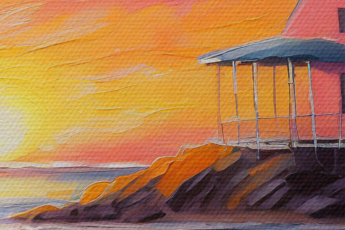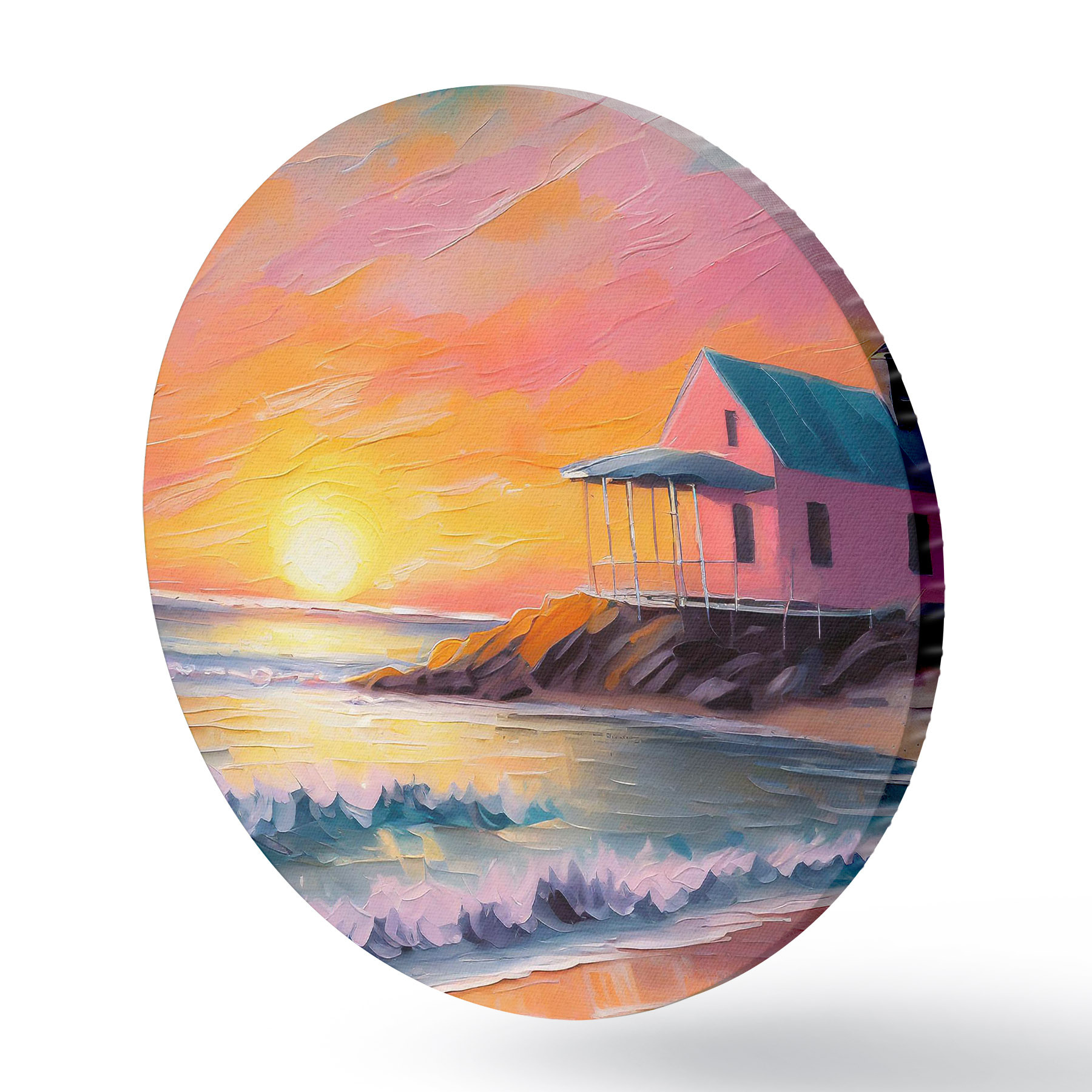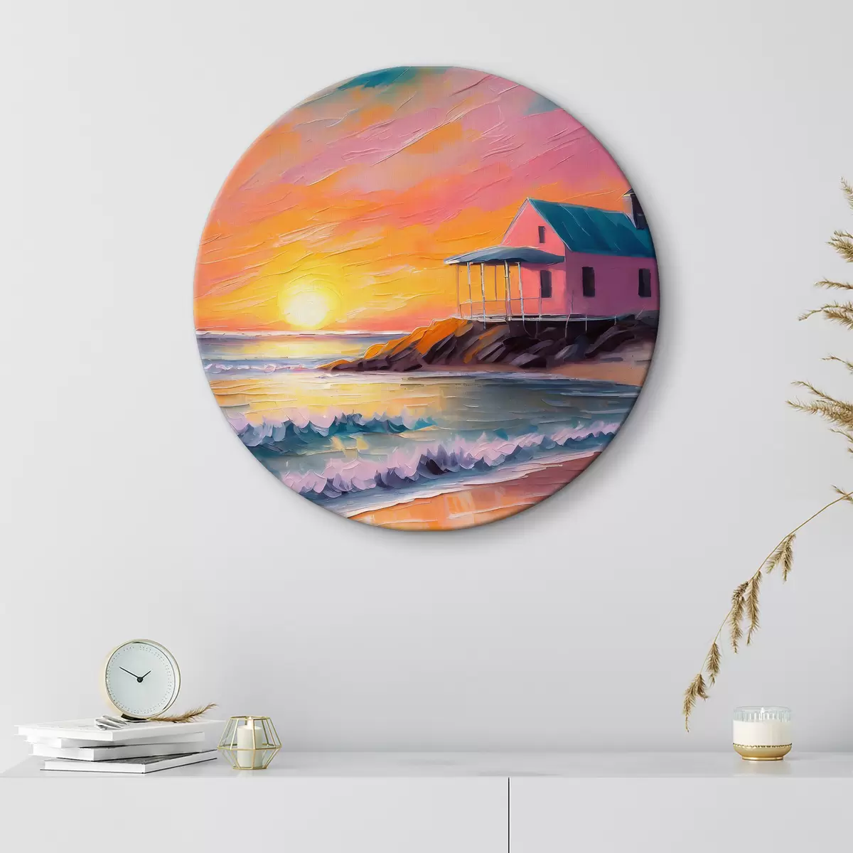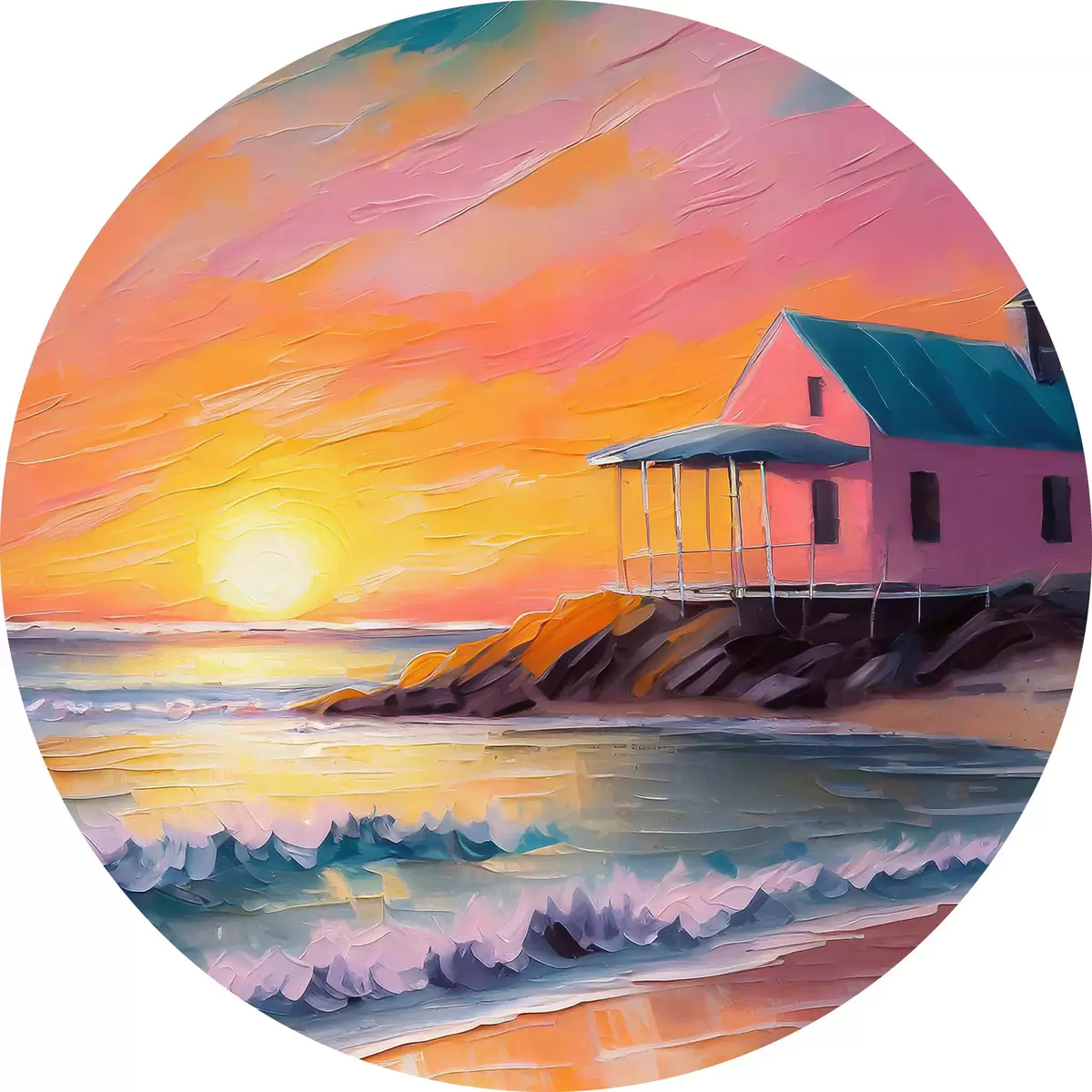 Runde Gemälde Ein Rückzugsort am Meer unter einem strahlenden Himmel r36584
