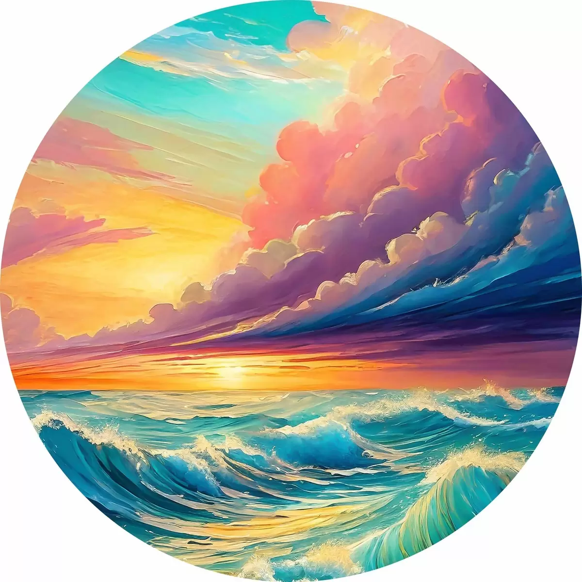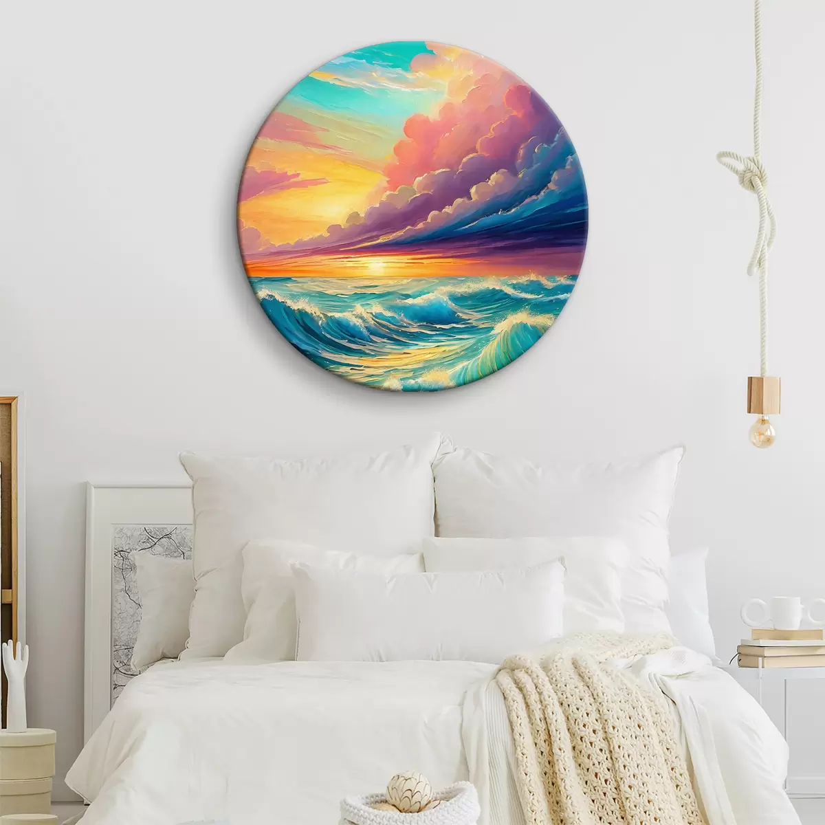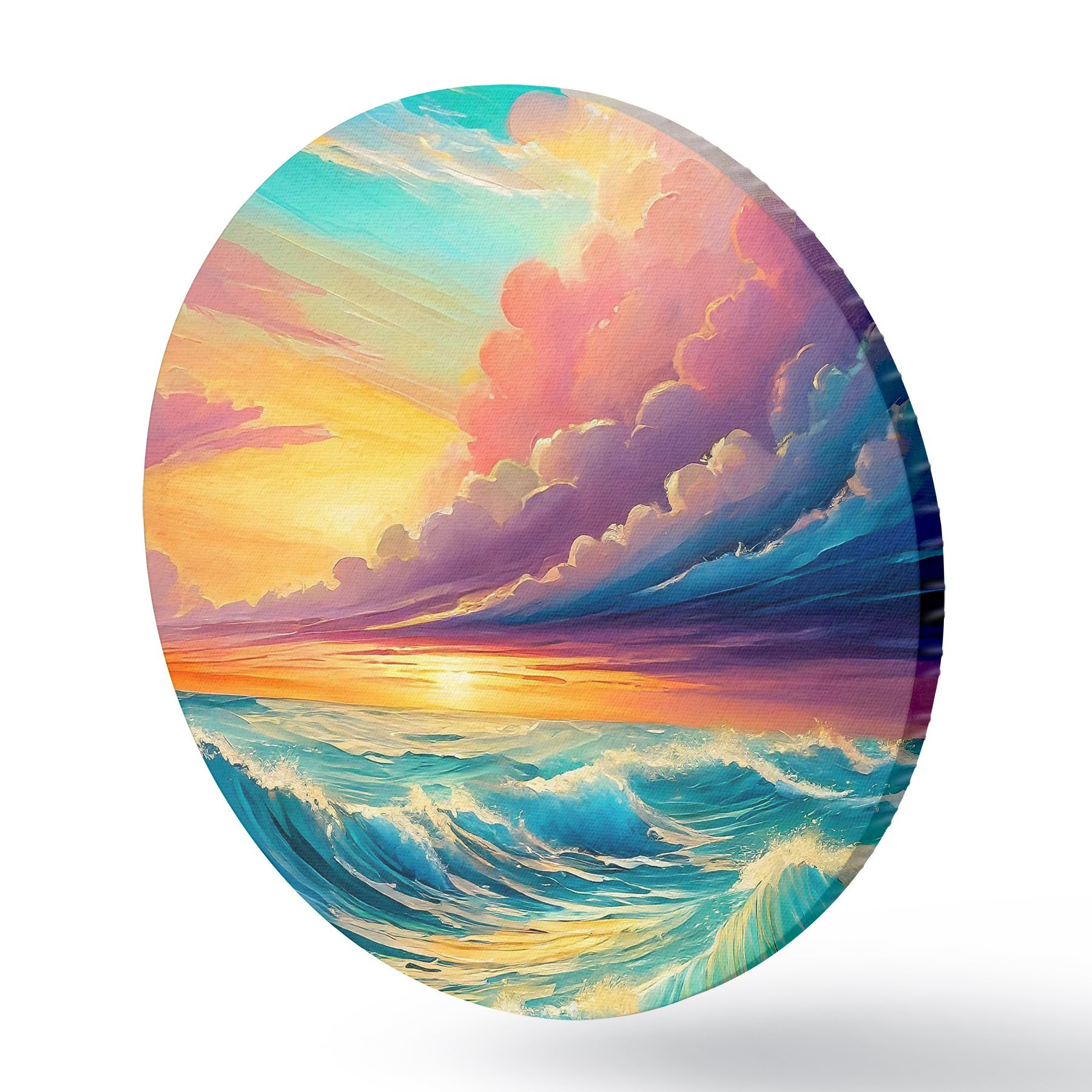 Runde Gemälde Die untergehenden Wellen tanzen unter dem gemalten Himmel r36588