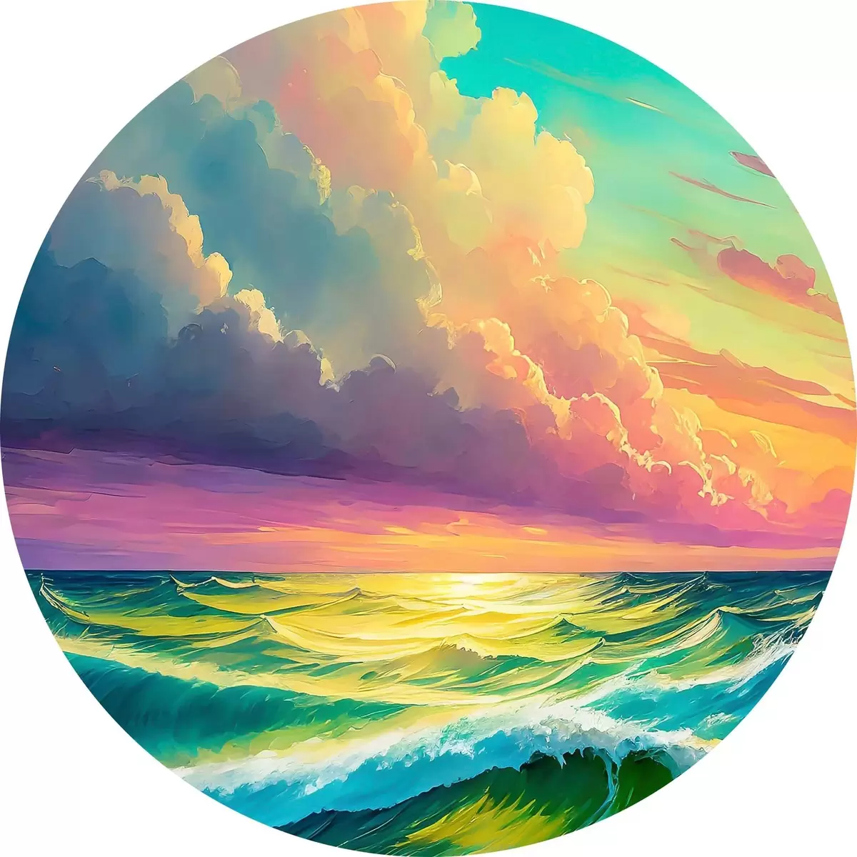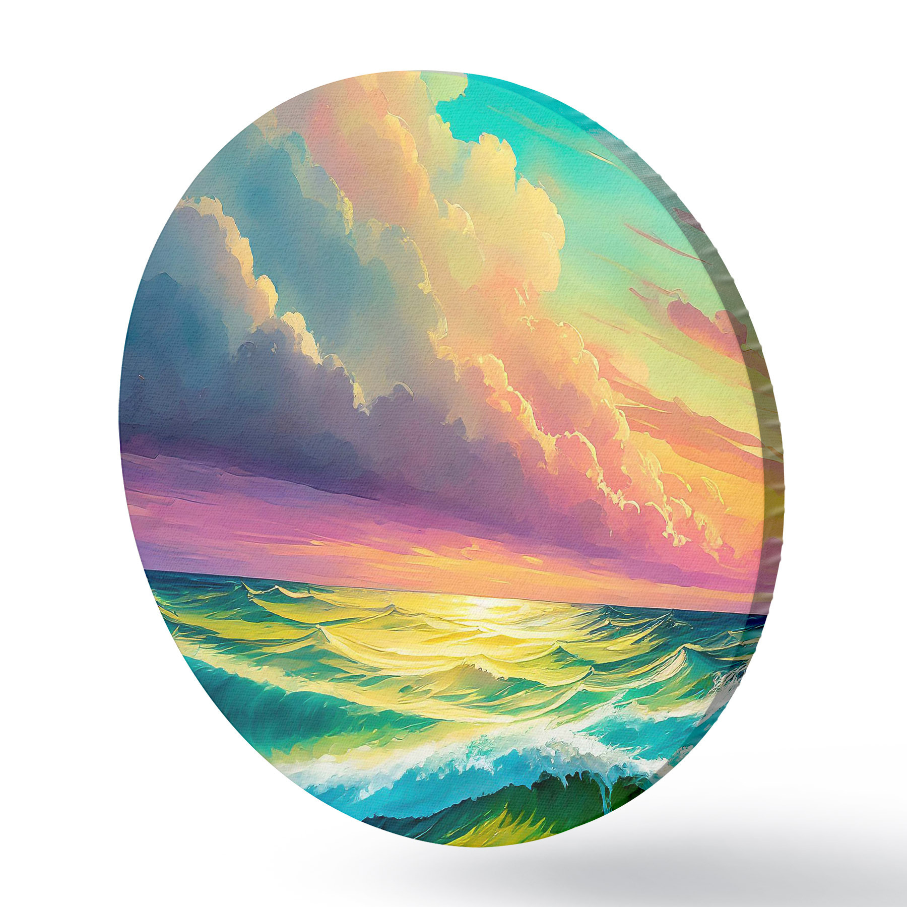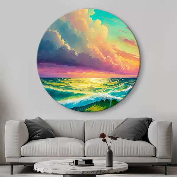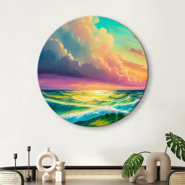 Runde Gemälde Die untergehenden Wellen tanzen unter dem gemalten Himmel r36589