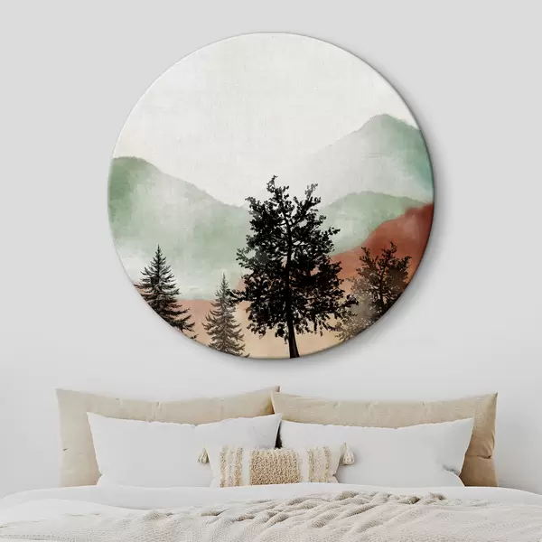 Runde Gemälde Berglandschaft in Aquarell r36592