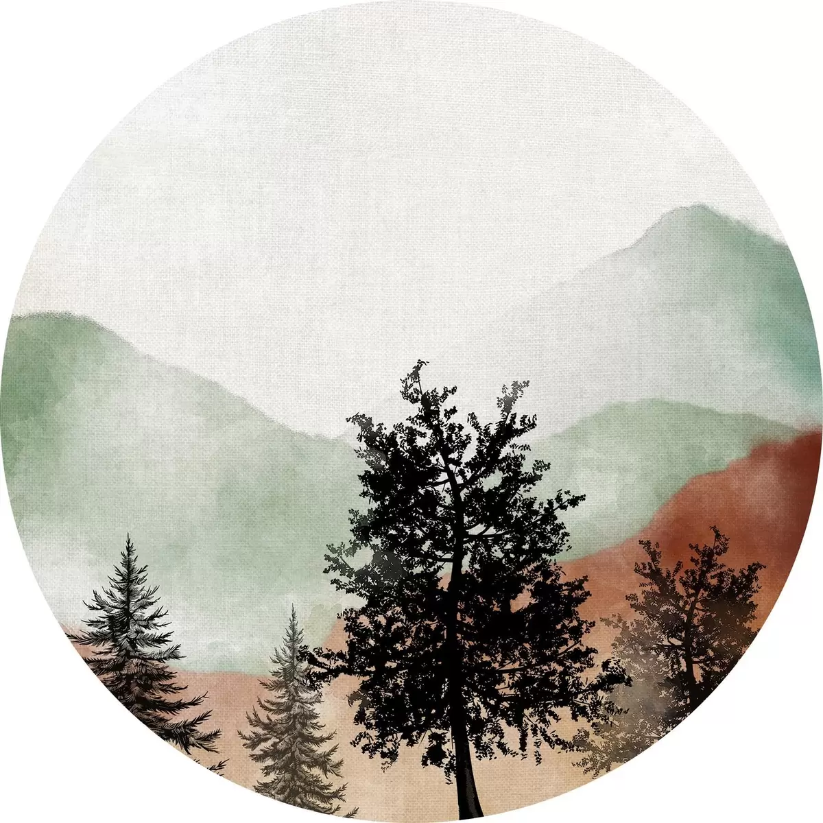 Runde Gemälde Berglandschaft in Aquarell r36592