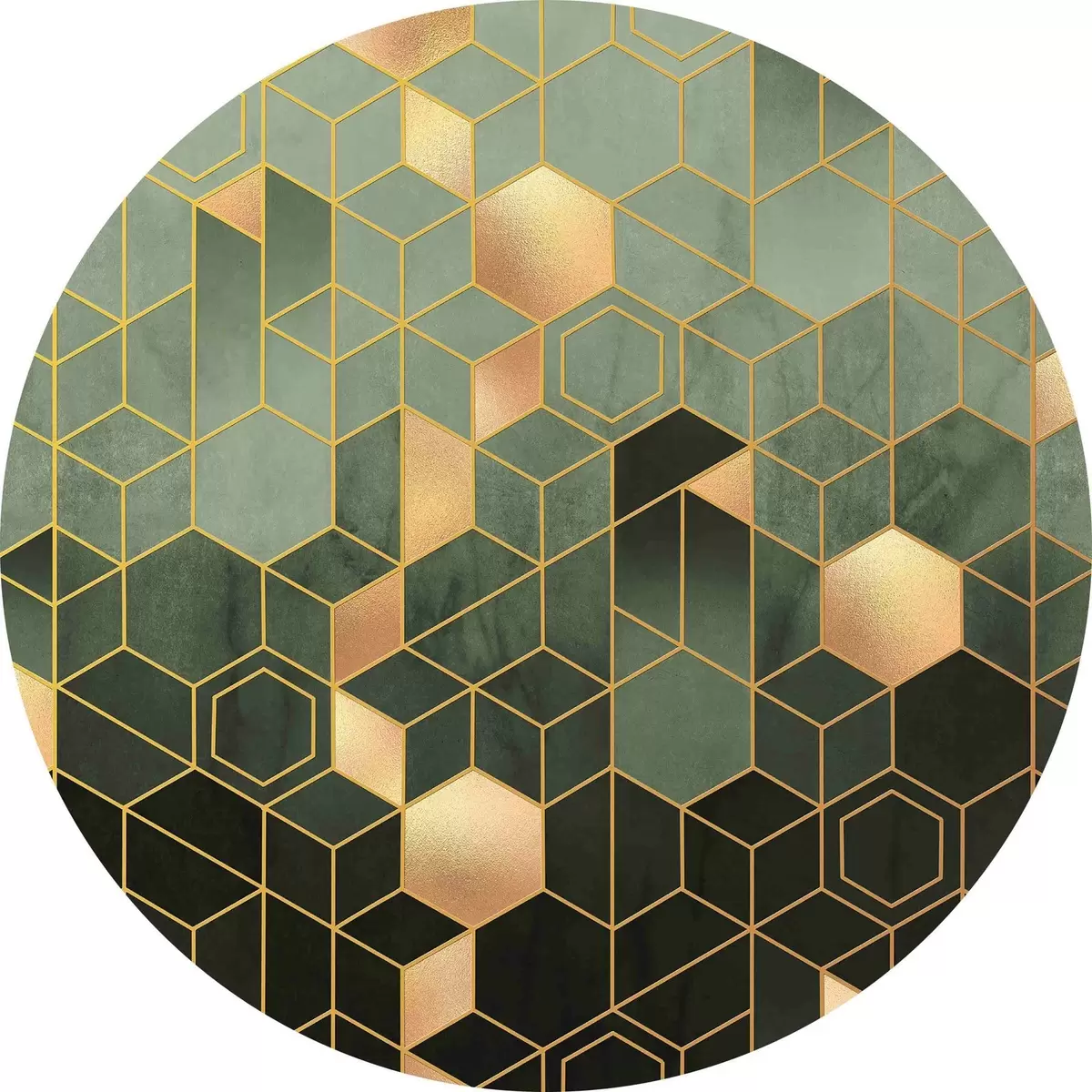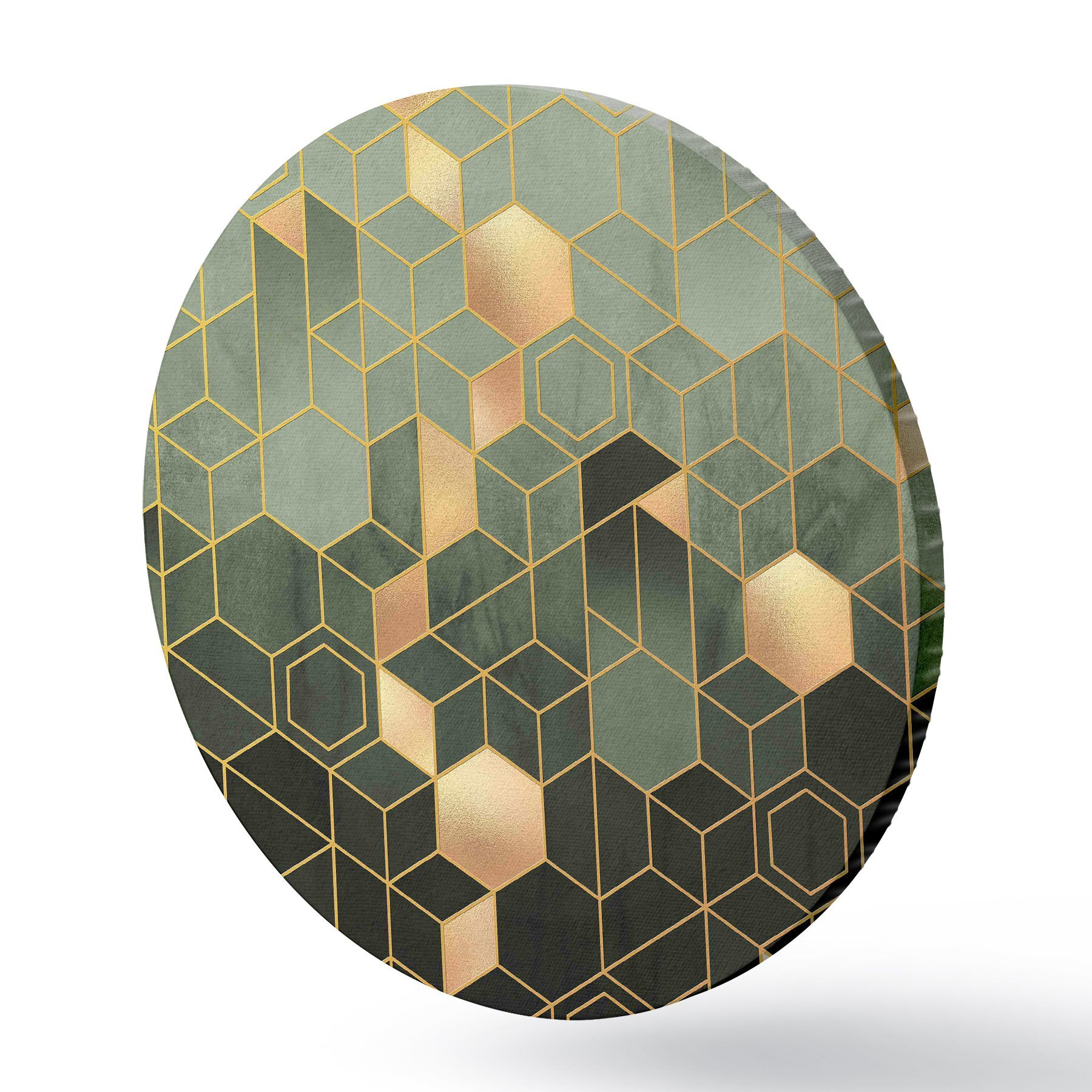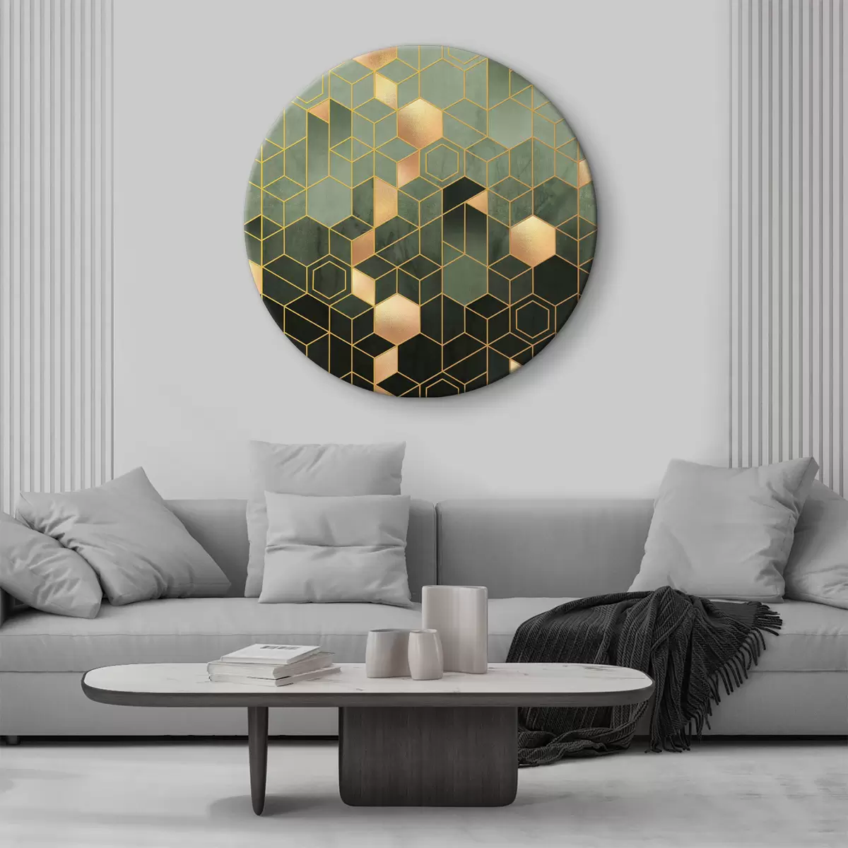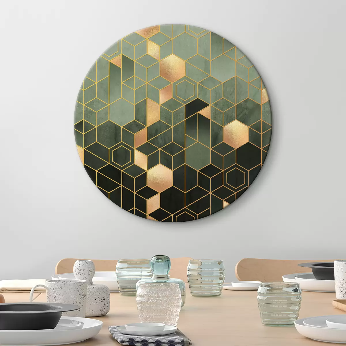 Runde Gemälde Geometrische Eleganz in Smaragd und Bernstein r36602v2