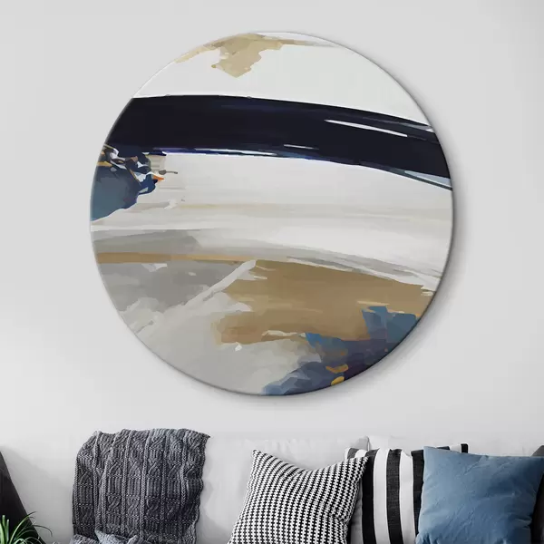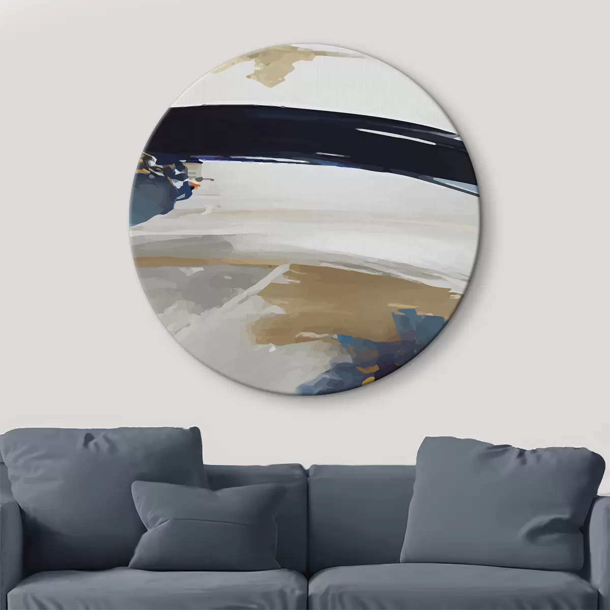 Runde Gemälde Ausdrucksstarke Abstraktion in Grau und Blau r36620