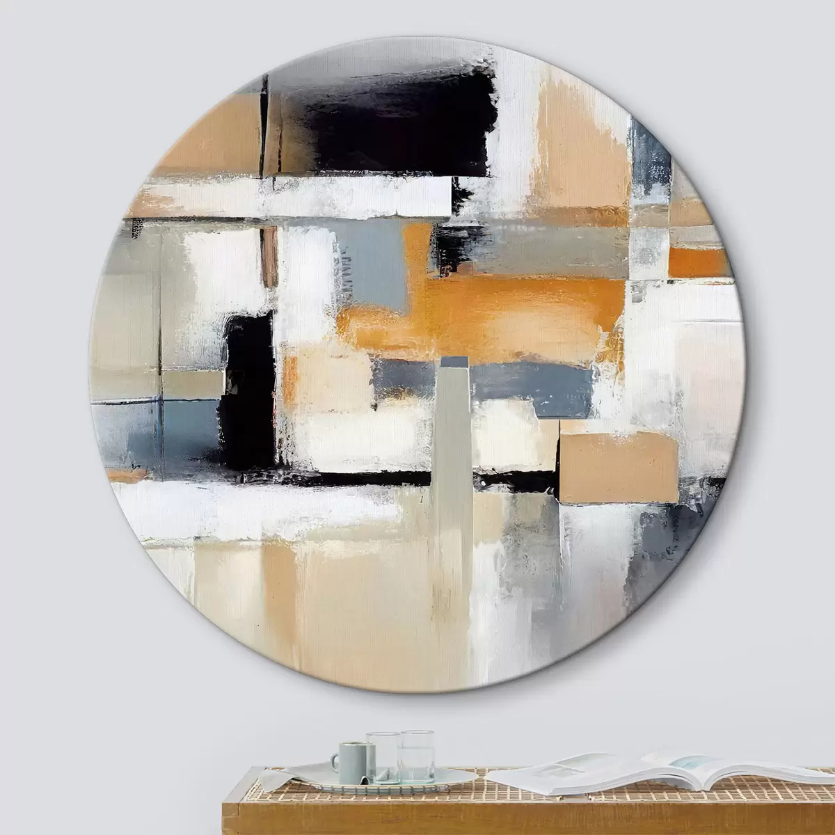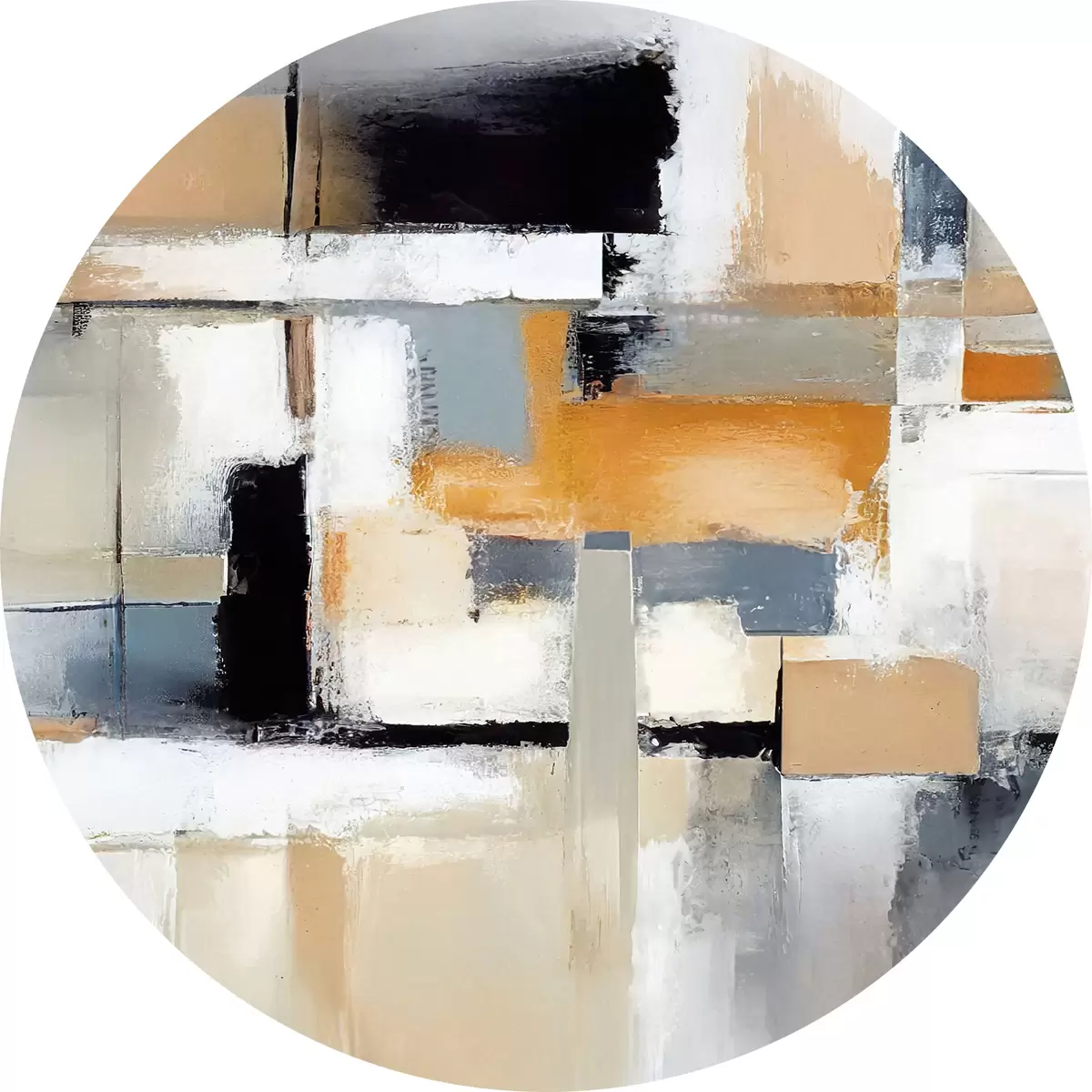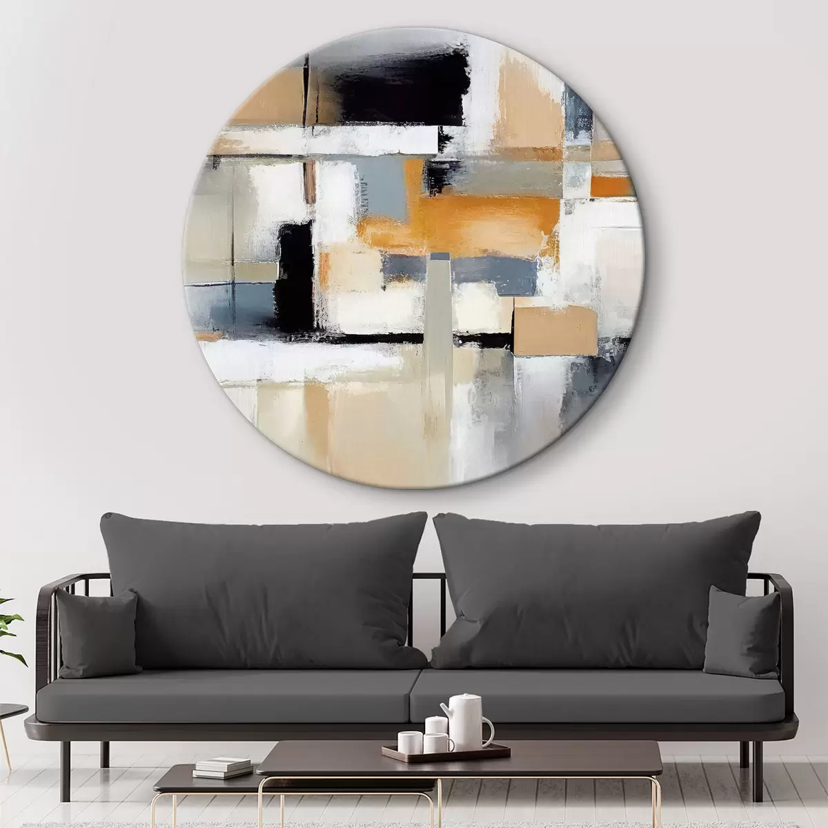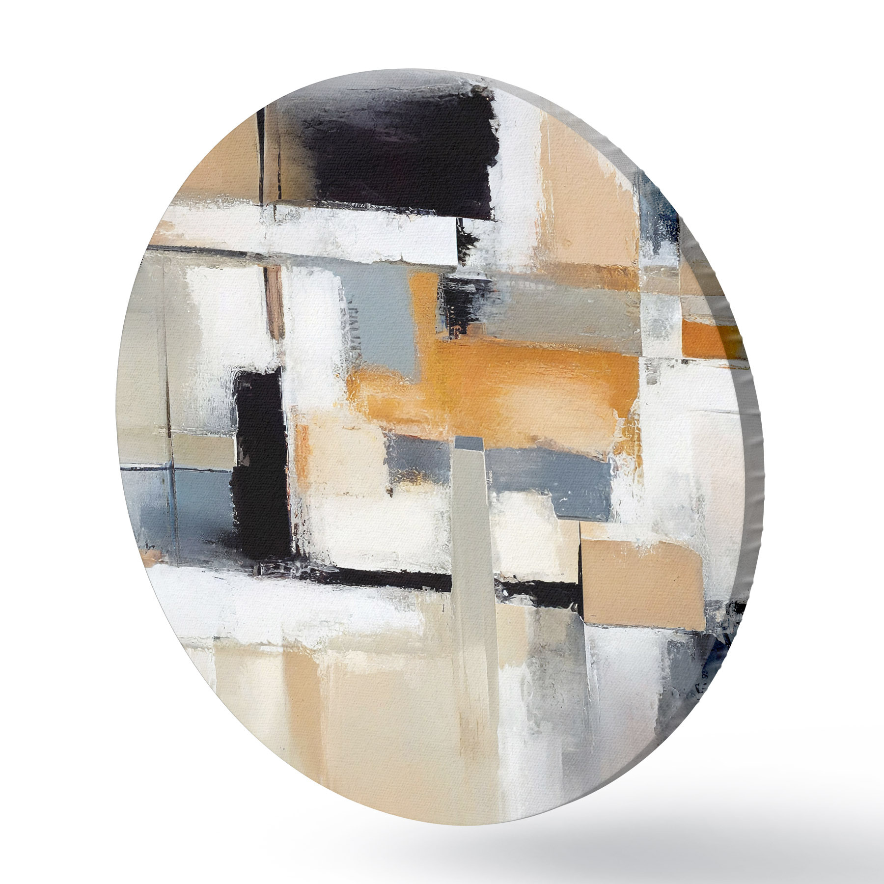 Runde Gemälde Beige-graue Abstraktion mit Orange und Weiß r36624
