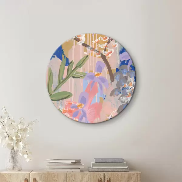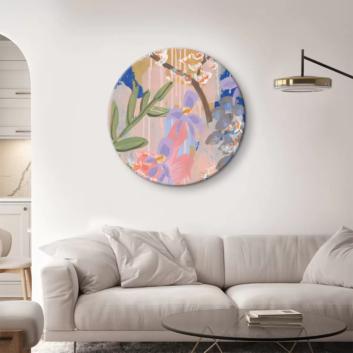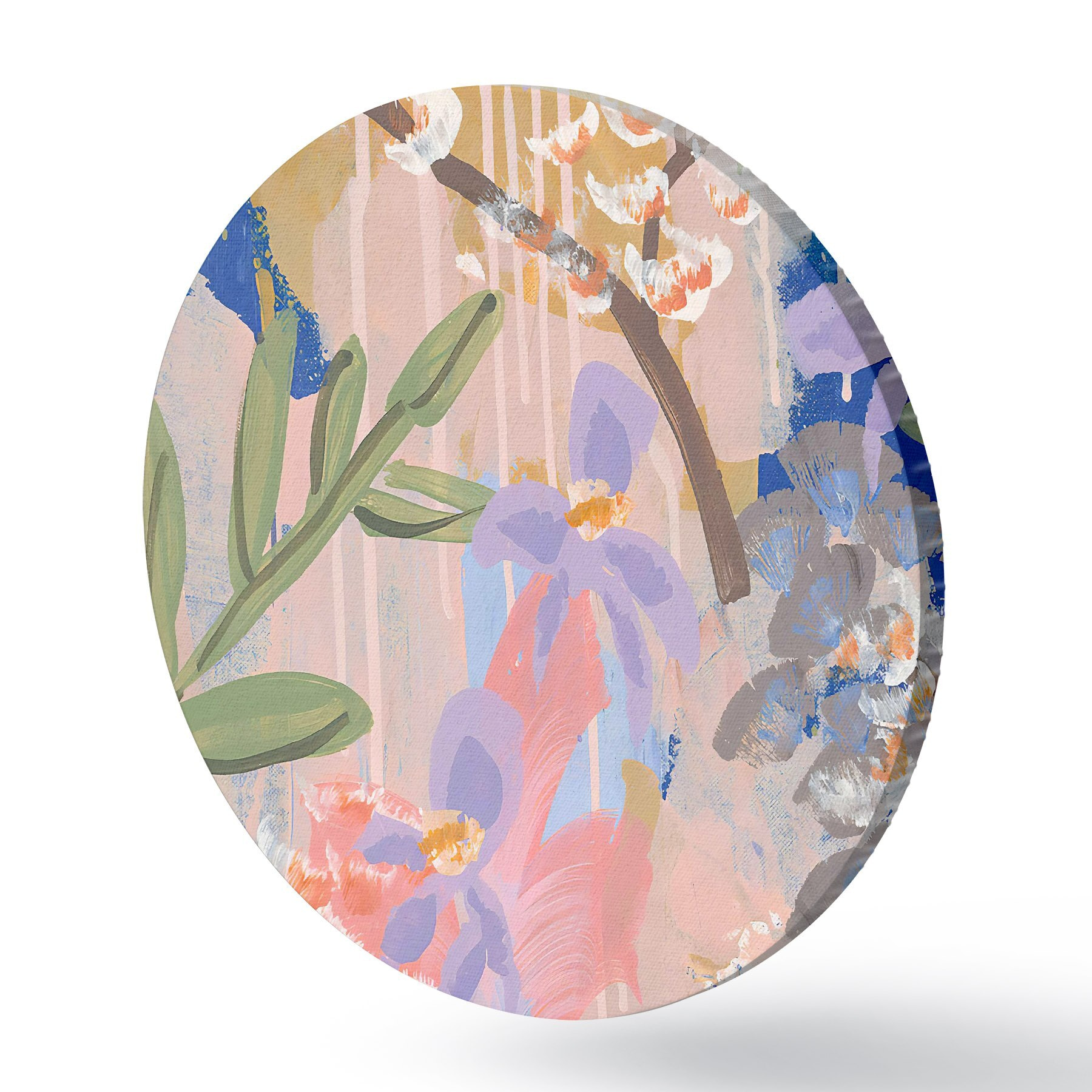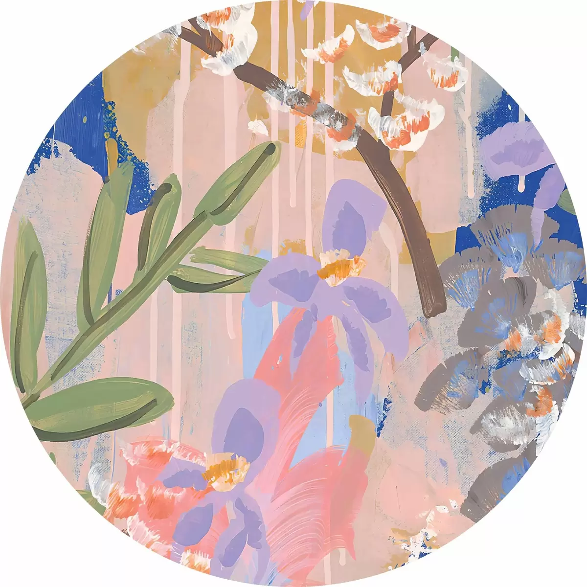Runde Gemälde Ein Gemälde mit Blumen und Blättern r36626