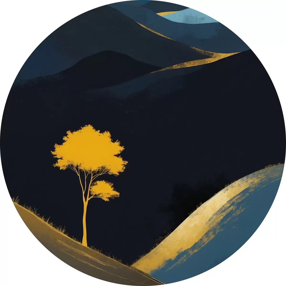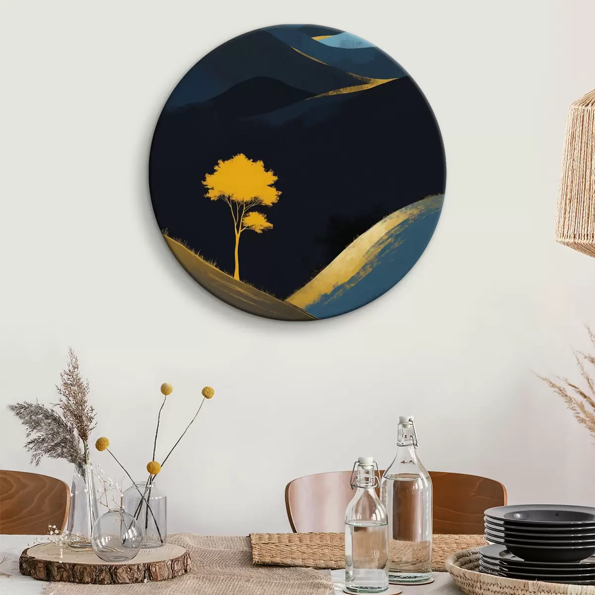 Runde Gemälde Ein einsamer Baum unter einem sternenlosen Nachthimmel r36639