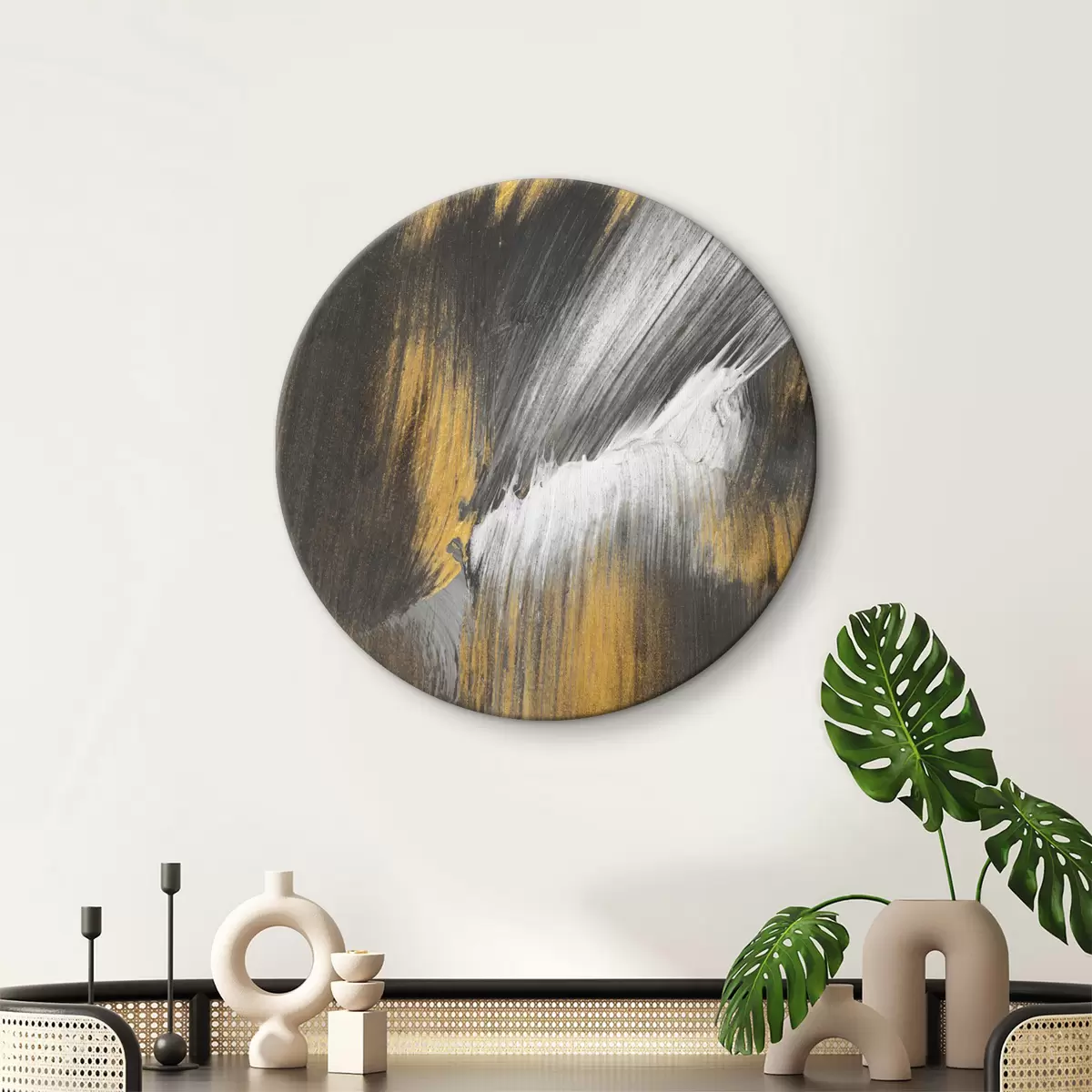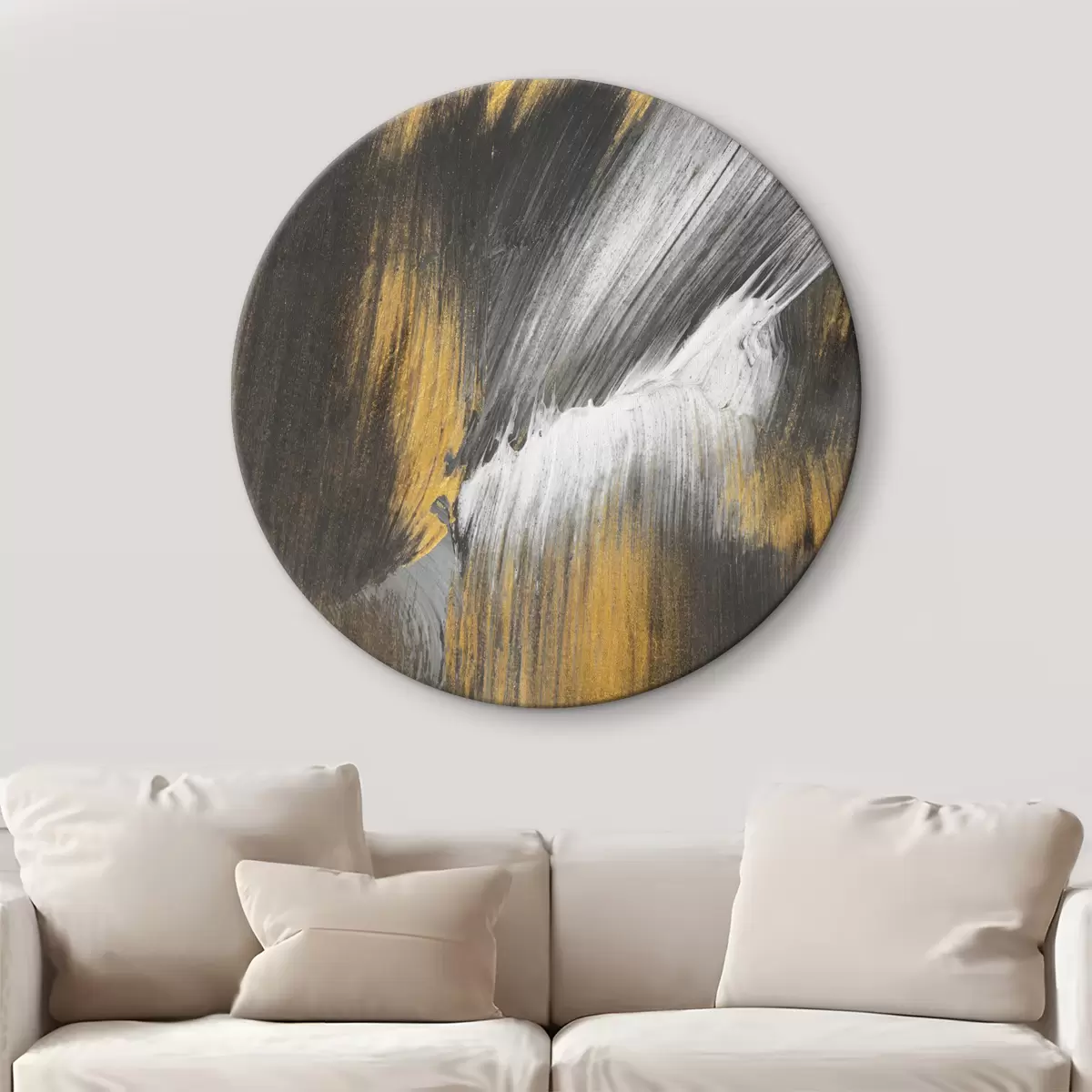 Runde Gemälde Pinselstriche in Grau- und Bernsteintönen r36672