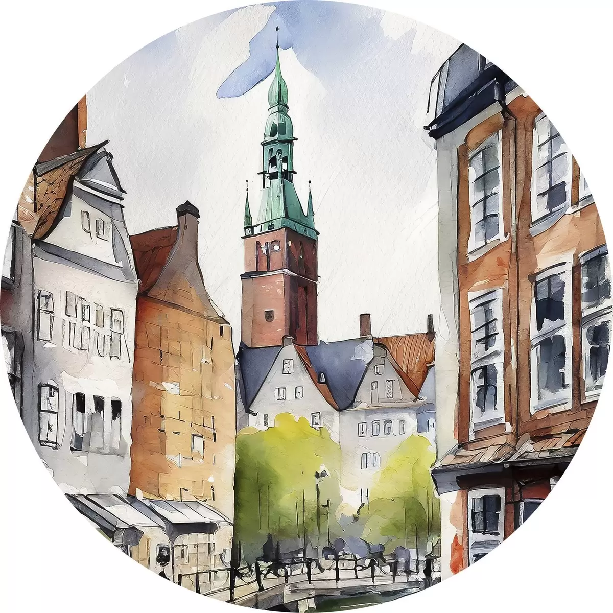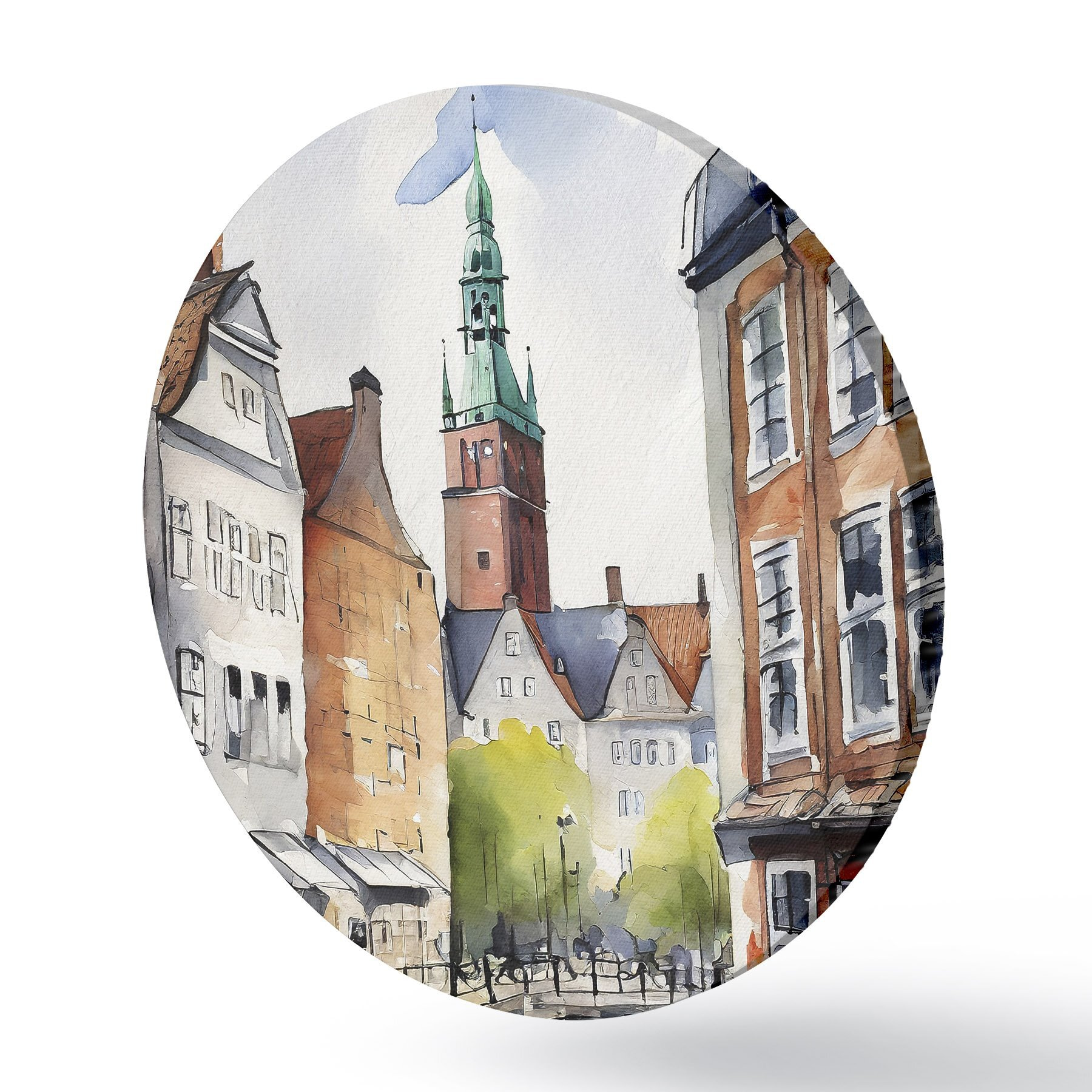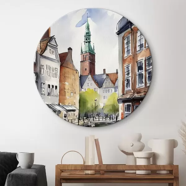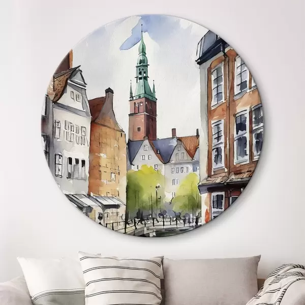 Runde Gemälde Dänische Straßen, Aquarell, Architekturzeichnung r36682