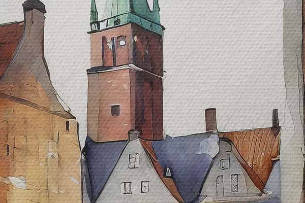 Bild Dänische Straßen, Aquarell, Architekturzeichnung Nr r36682