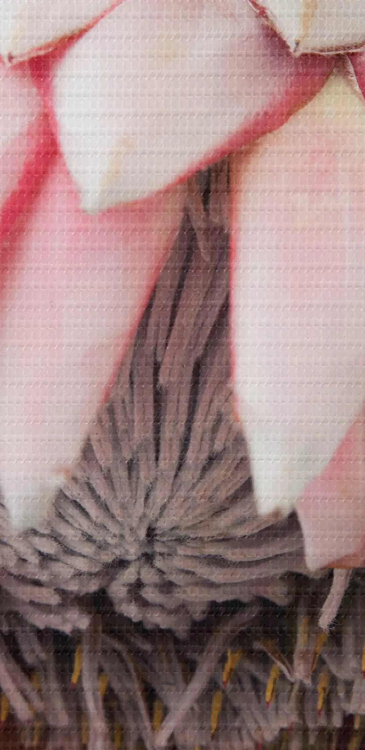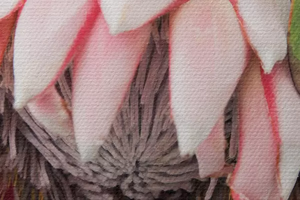 Das feine Fadengeflecht auf dieser Leinwand ähnelt der Oberfläche von professionellen Künstlerleinwänden.