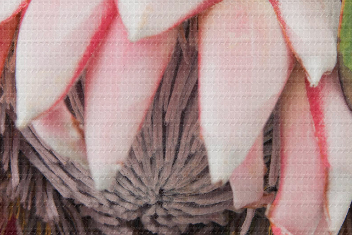 Drei Materialtypen stehen zur Verfügung: Economic Canvas - ein dichtes und haltbares Material für den Digitaldruck, identisch mit Malerleinwand, wasserfeste Oberfläche, realistische Wiedergabe von Details, mittelkörniges Material. Premium Canvas - die Textur ähnelt der einer Malerleinwand (verwobene kleine Fäden). Weiche, detaillierte Wiedergabe des Bildes auf einer matten Oberfläche. Eco-Premium - hochwertiges Gewebe aus 100% Baumwolle. Dank der natürlichen Baumwollfasern ist das Material langlebig und verschleißfest. Hervorragende Farbwiedergabe und Detailtreue.