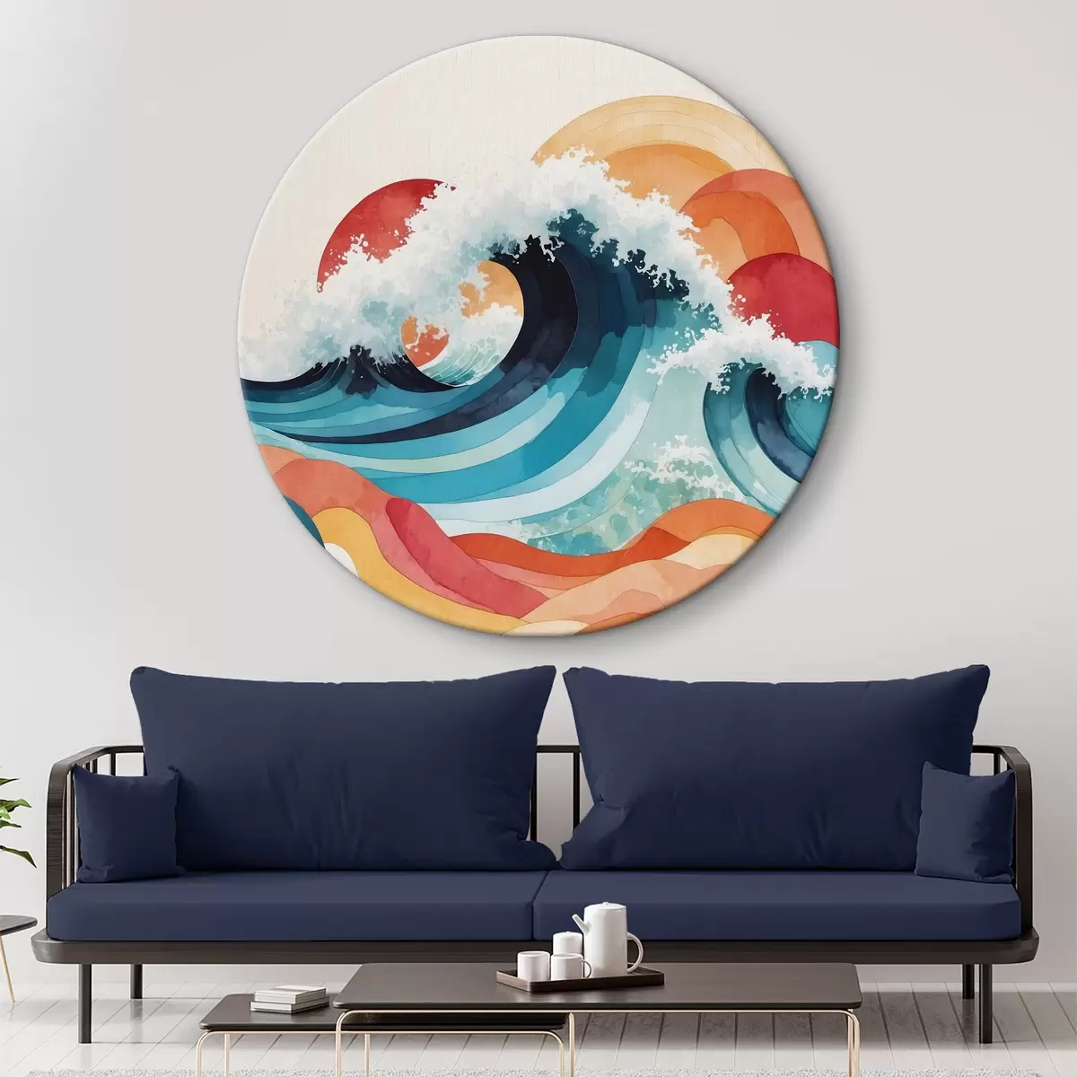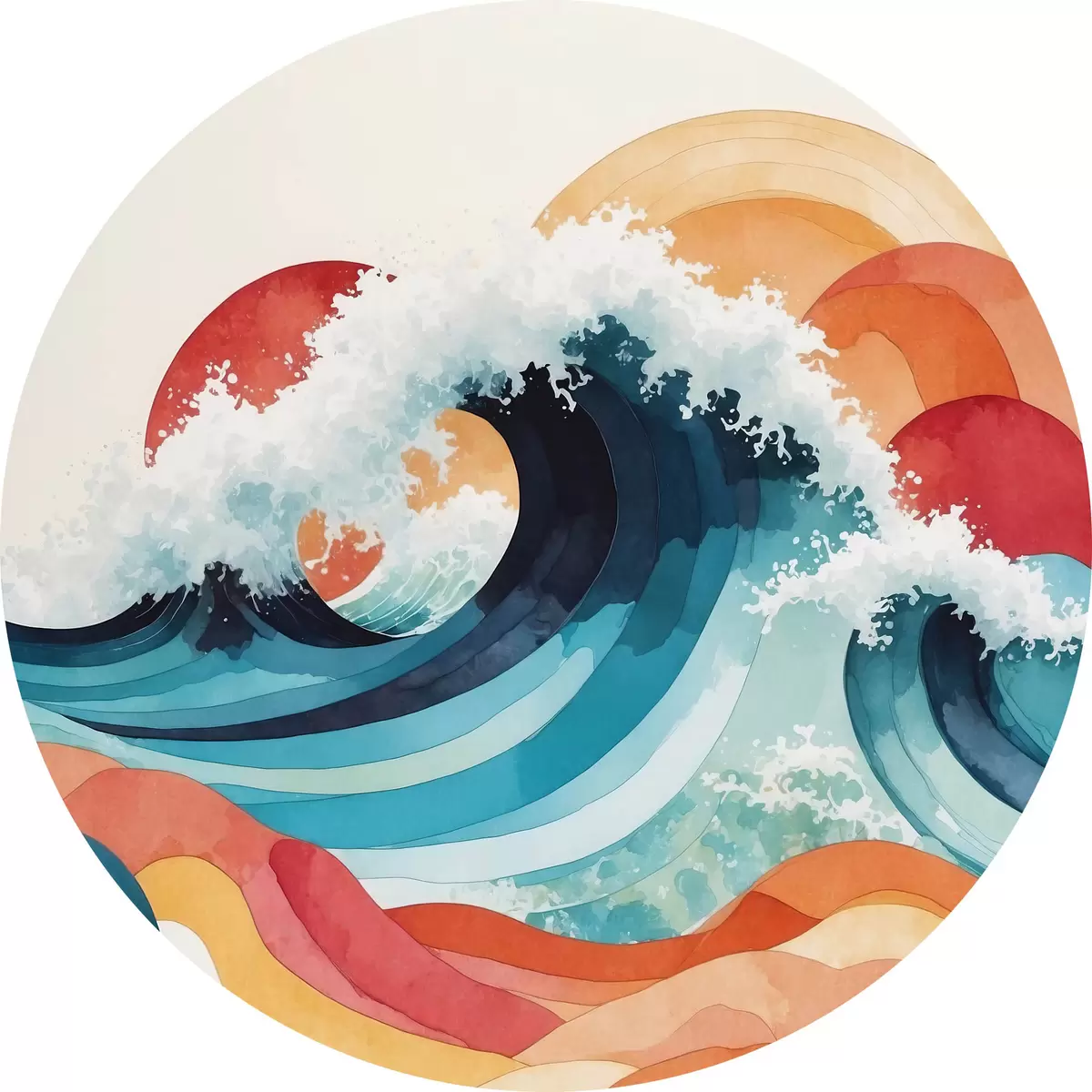 Runde Gemälde Wütende See in Aquarell r36798