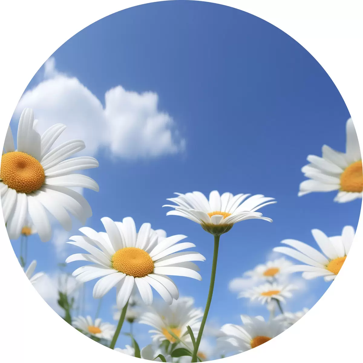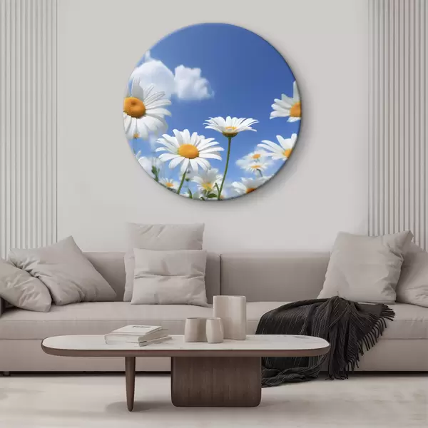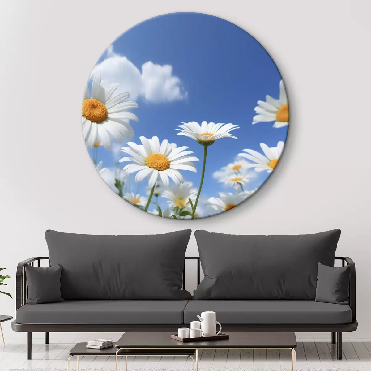 Runde Gemälde Gänseblümchen gegen den blauen Himmel r36802
