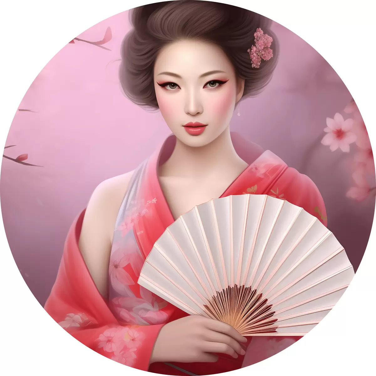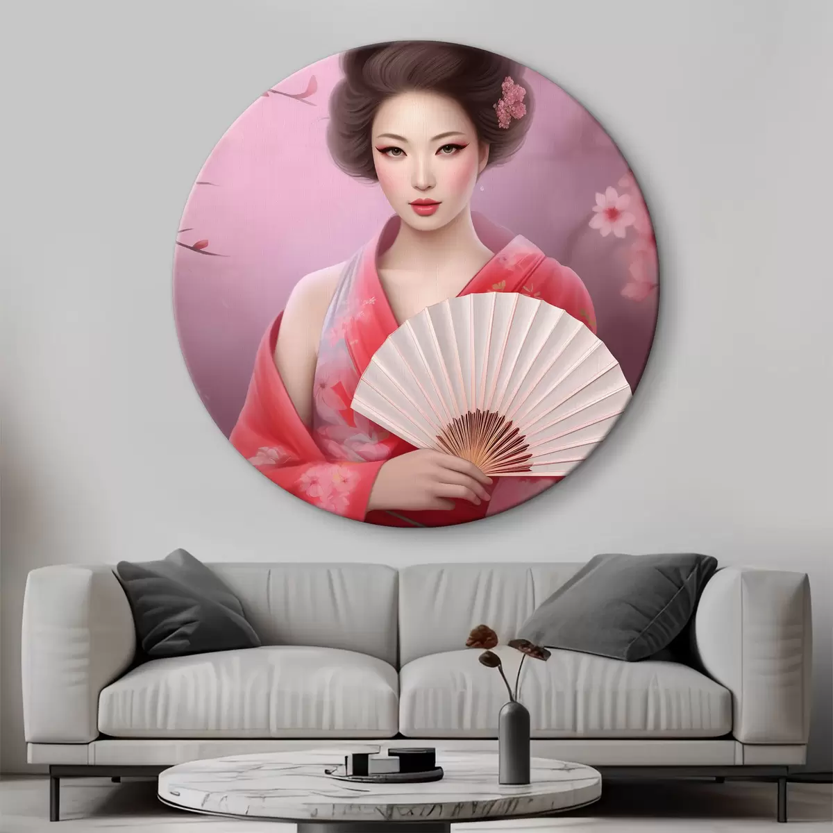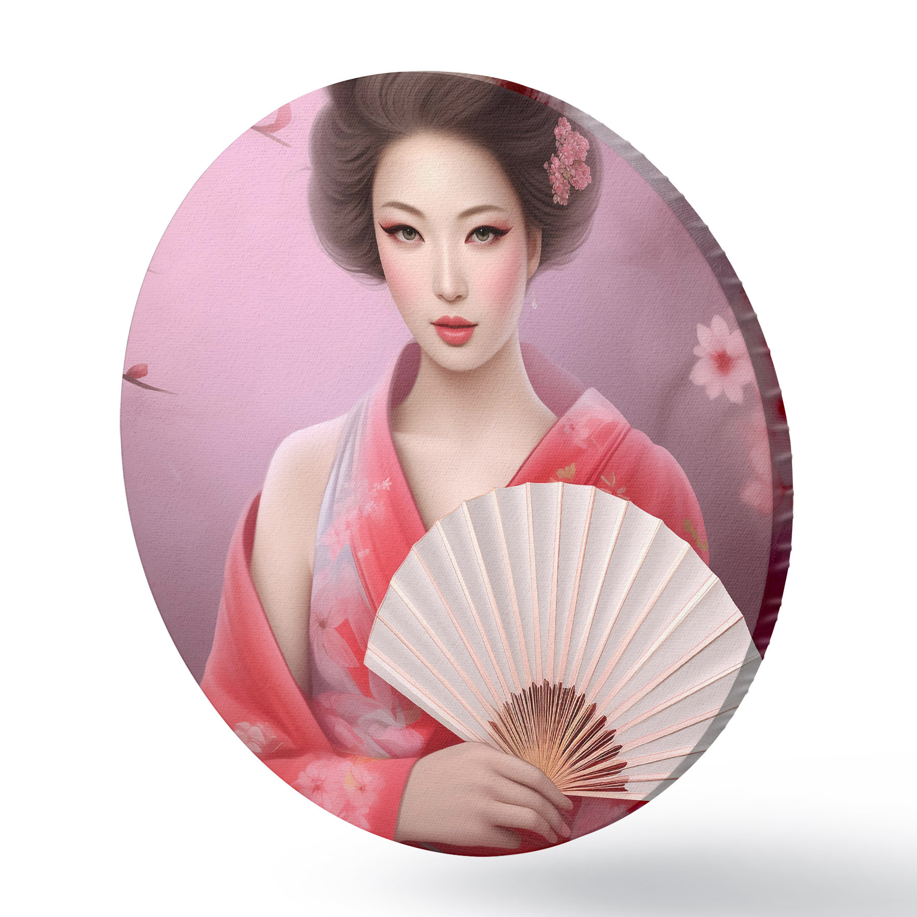 Runde Gemälde Eine Frau im Kimono hält einen Fächer r36804