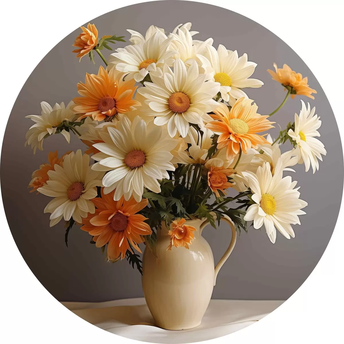Runde Gemälde Eine Vase mit Blumen auf dem Tisch r36812