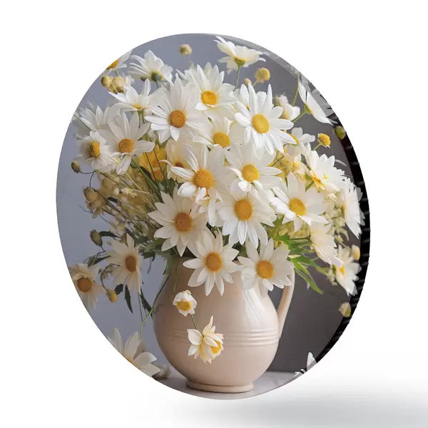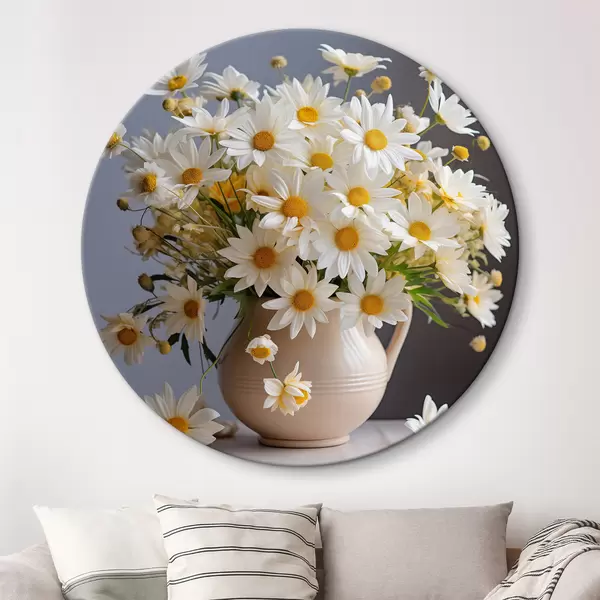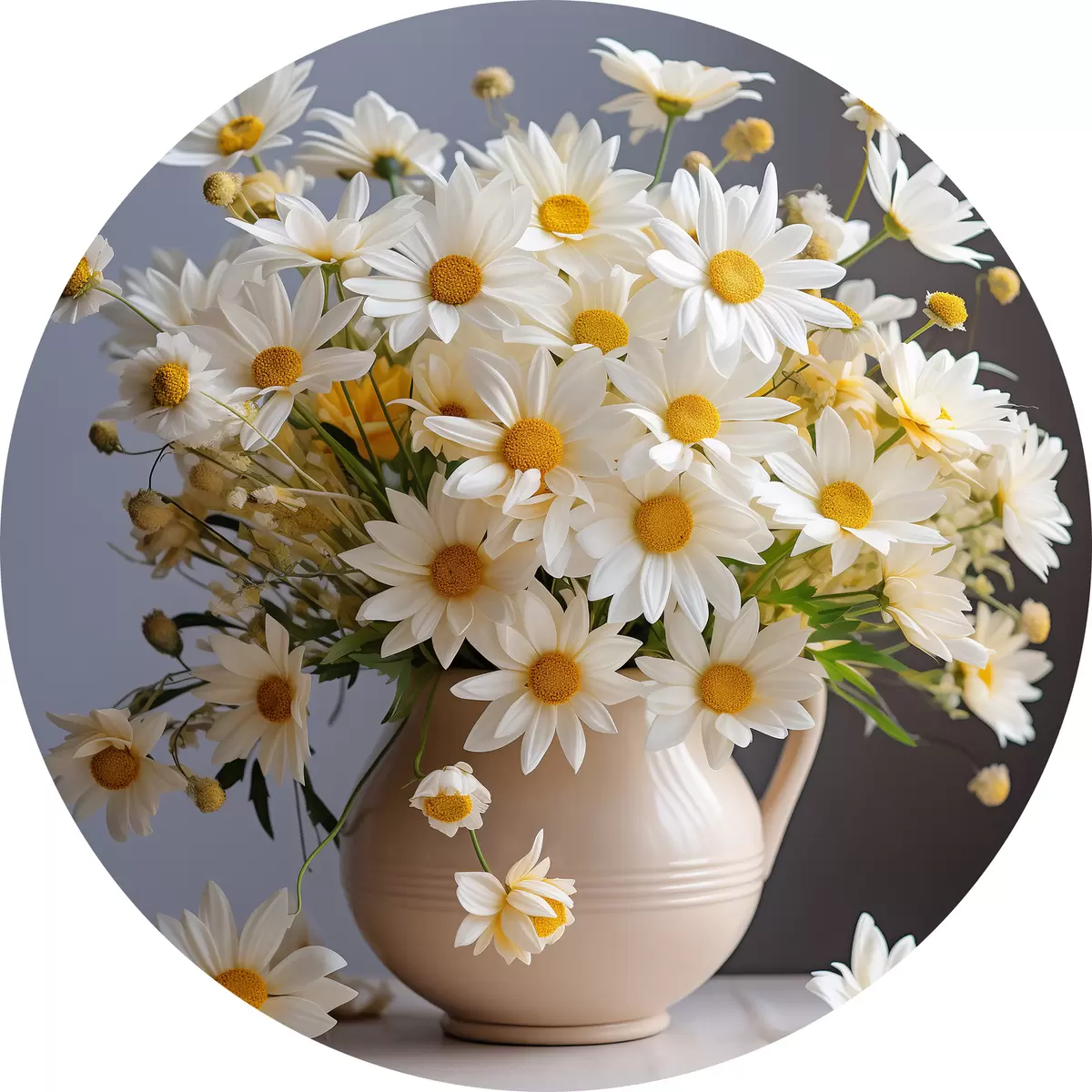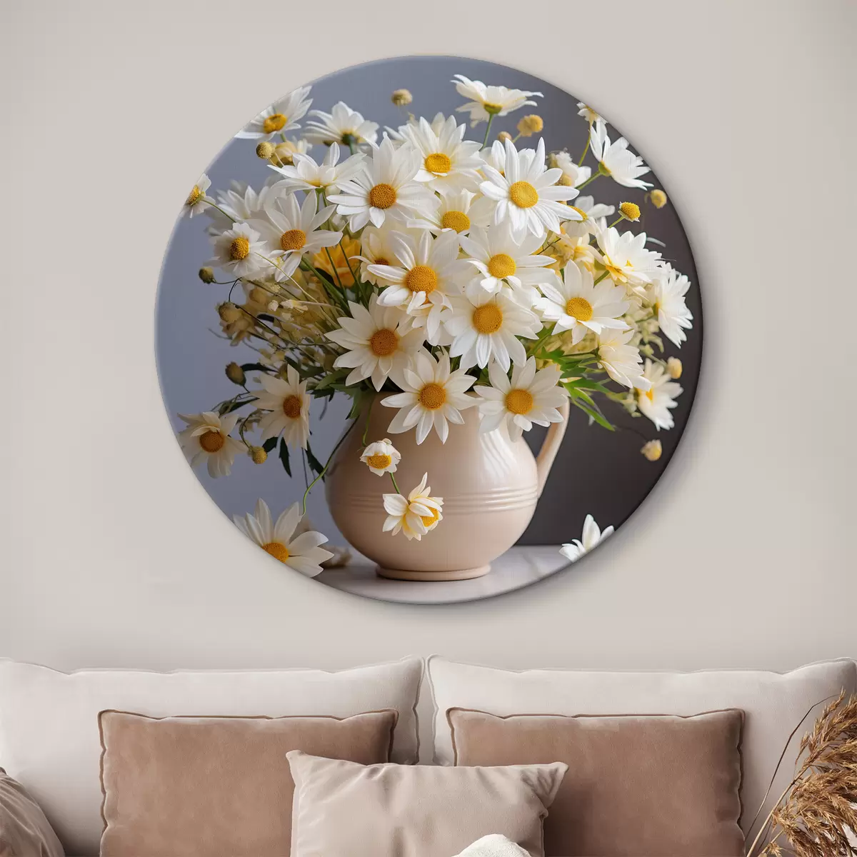 Runde Gemälde Große Vase mit einem Strauß Gänseblümchen r36813