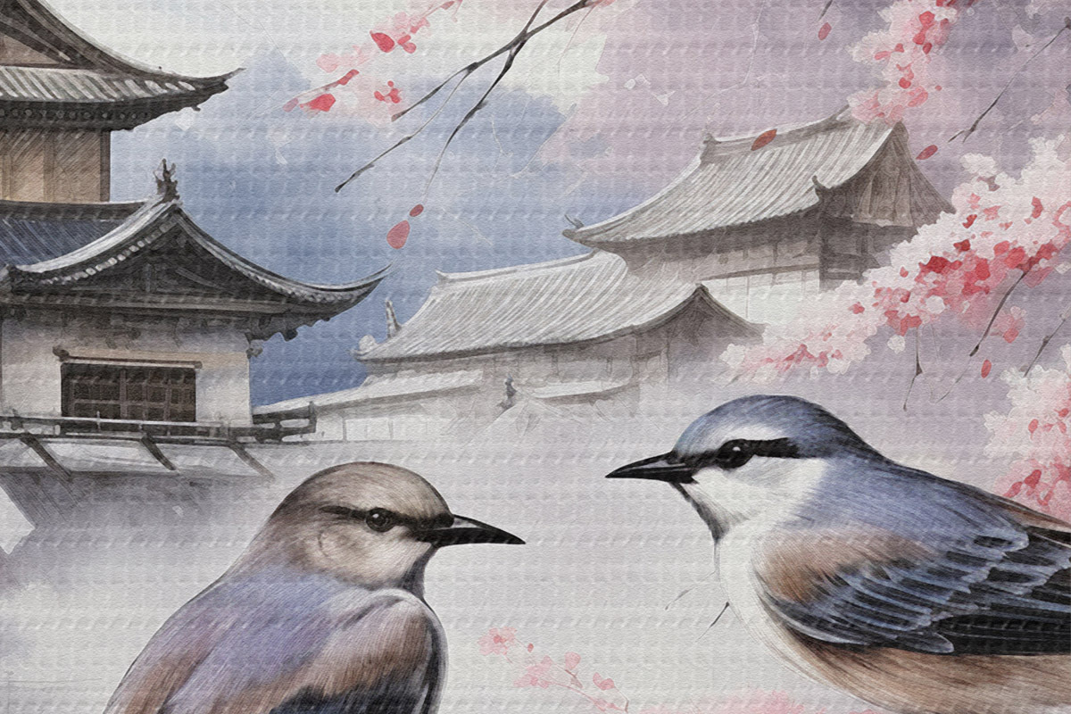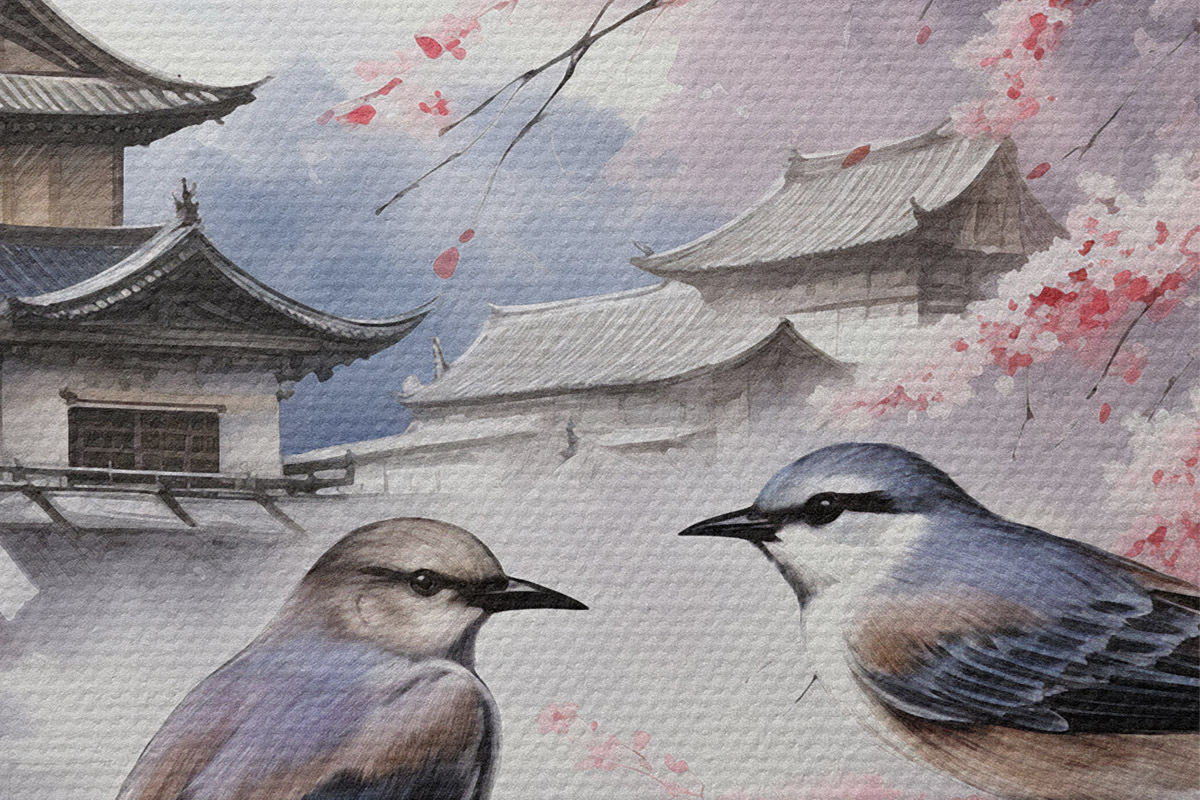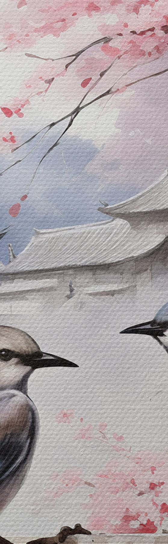 Bild Zwei Vögel auf dem Hintergrund der blühenden Sakura Nr r36815