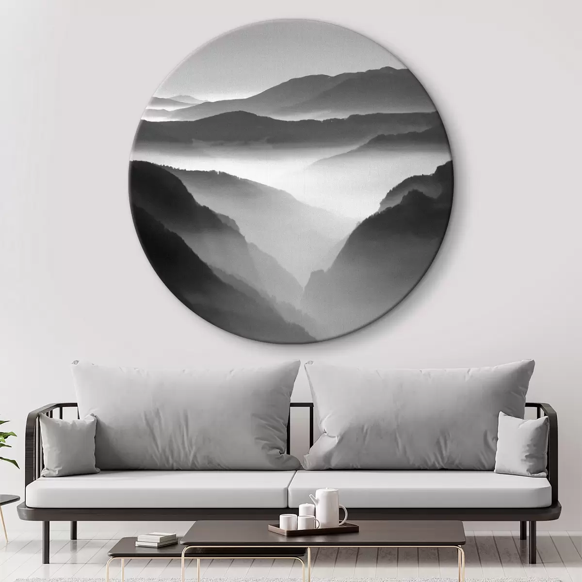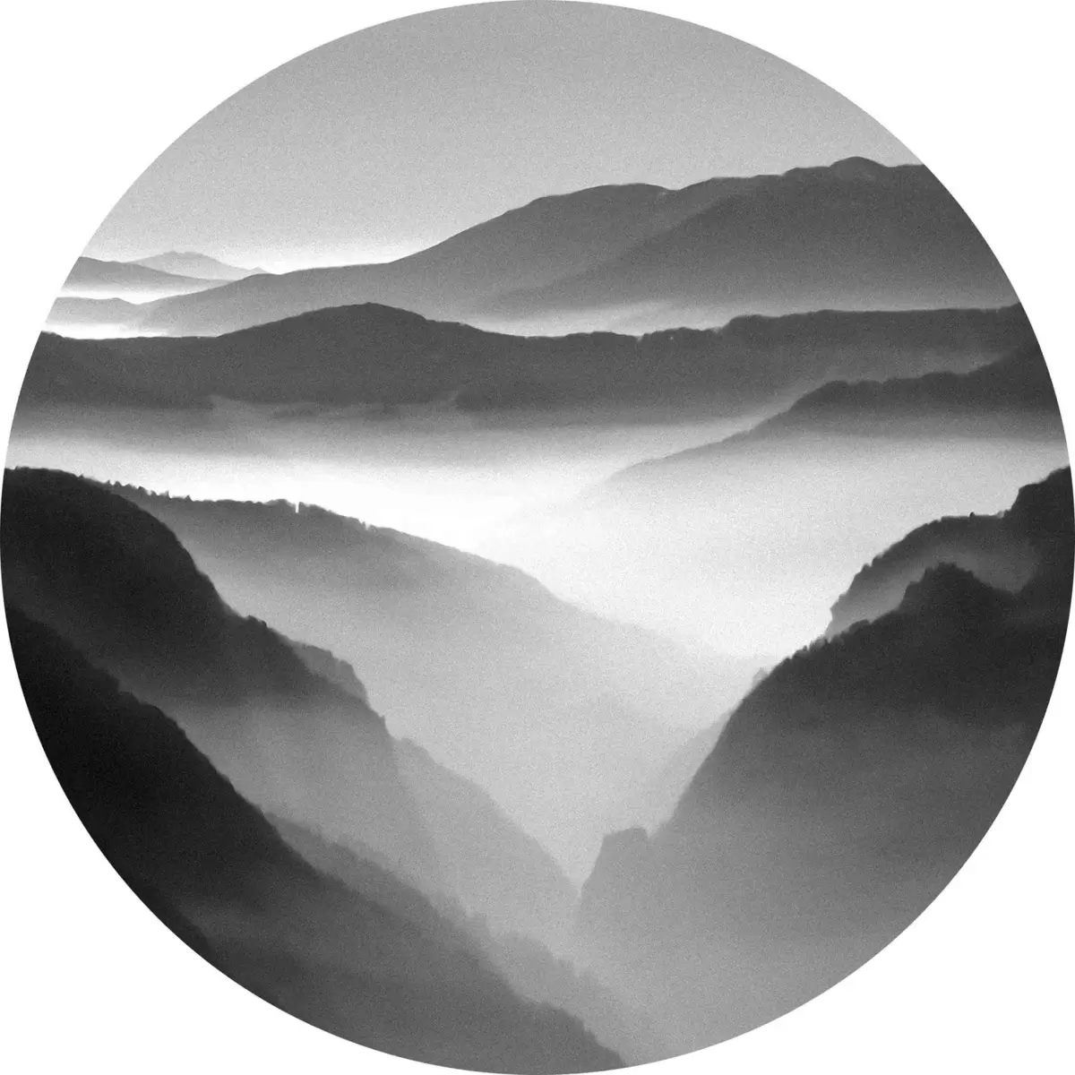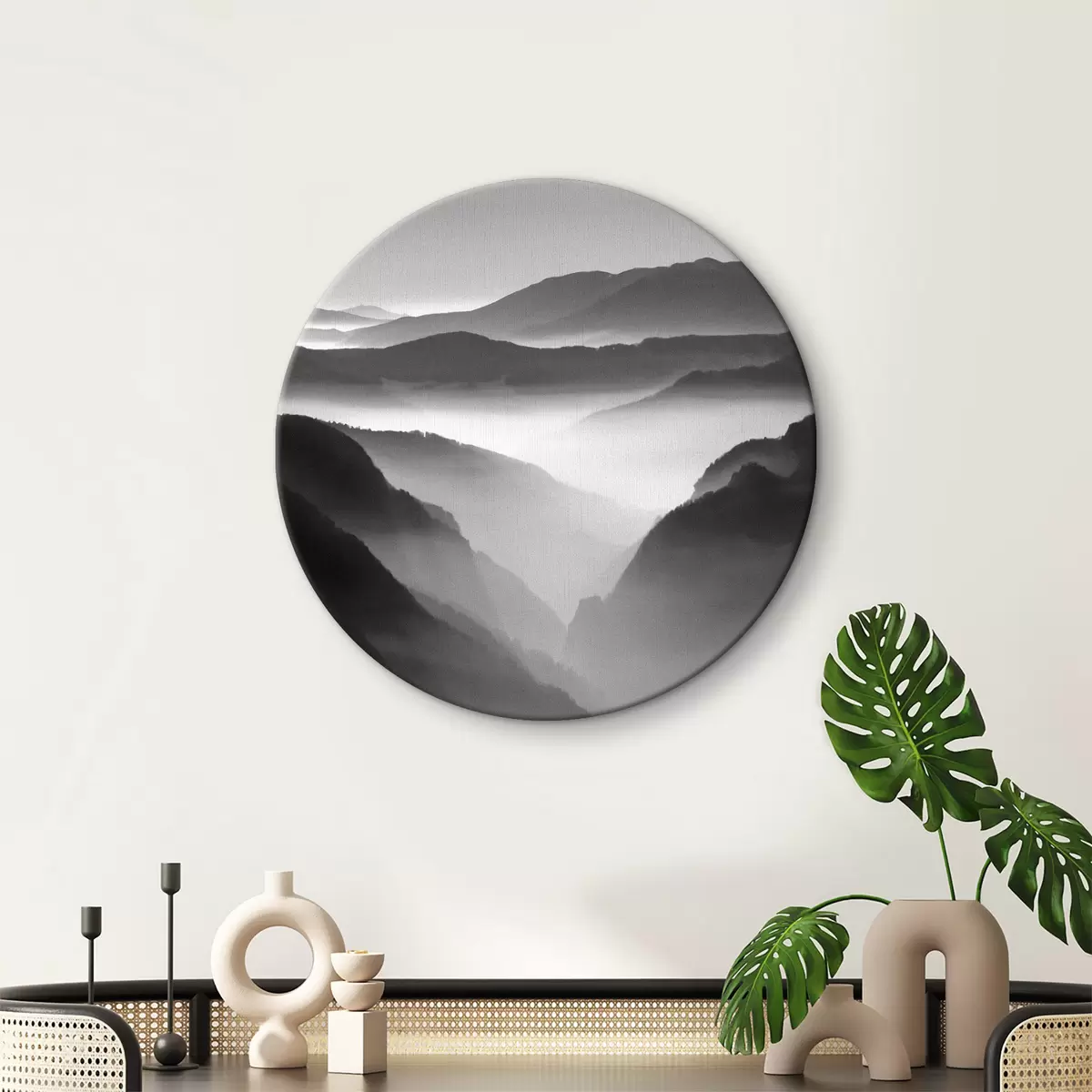 Runde Gemälde Foto von Bergen in schwarz-weiß r36845