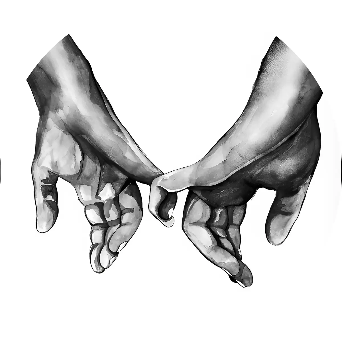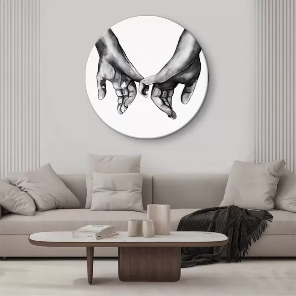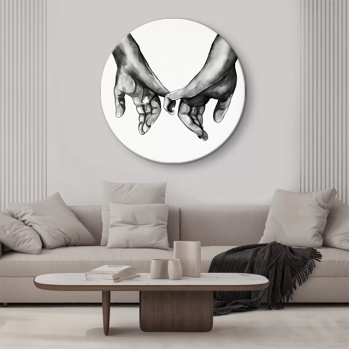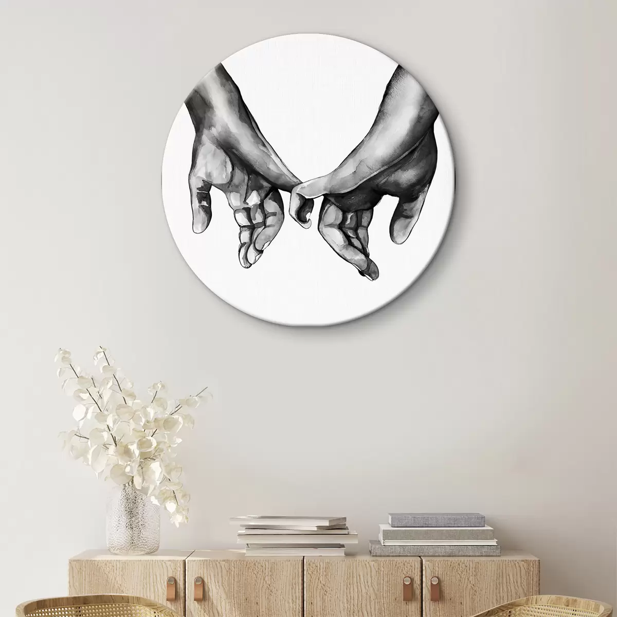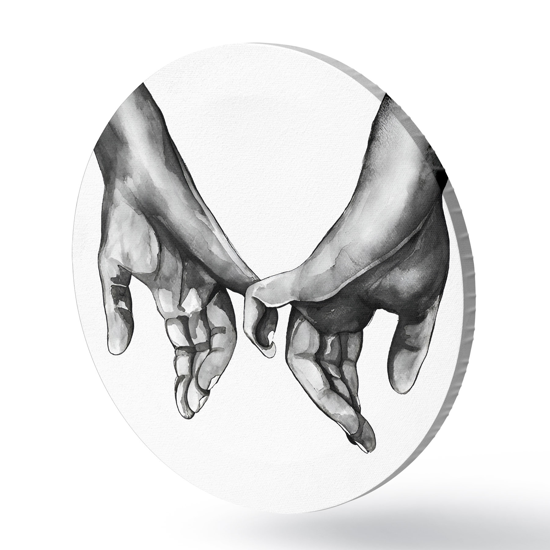 Runde Gemälde Schwarz und Weiß halten Hände auf einem weißen Hintergrund r36848