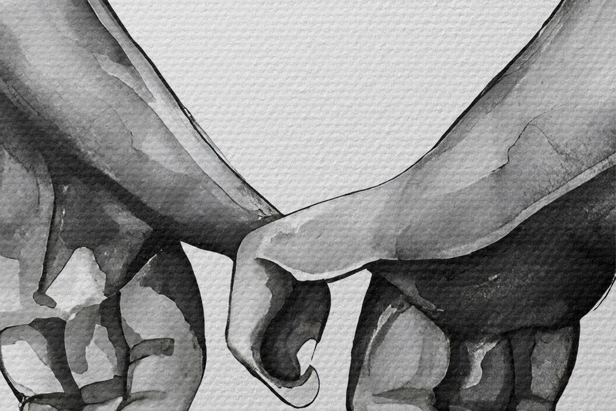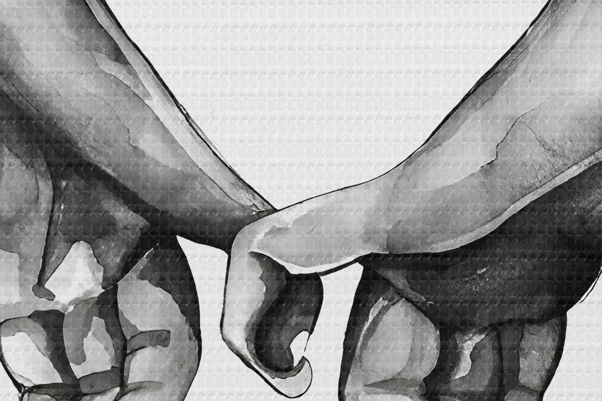 Bild Schwarz und Weiß halten Hände auf einem weißen Hintergrund Nr r36848