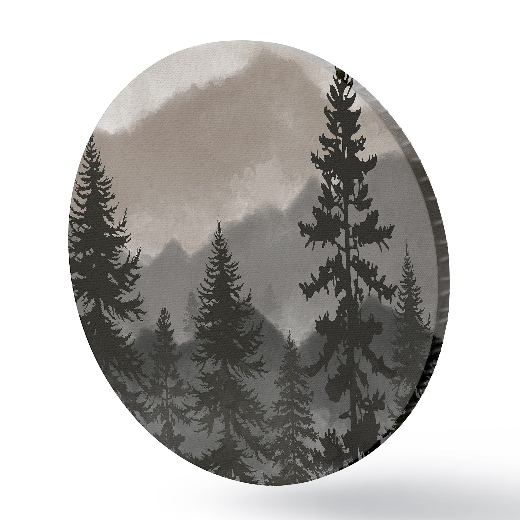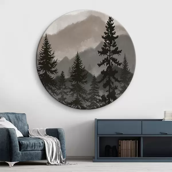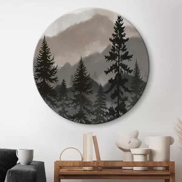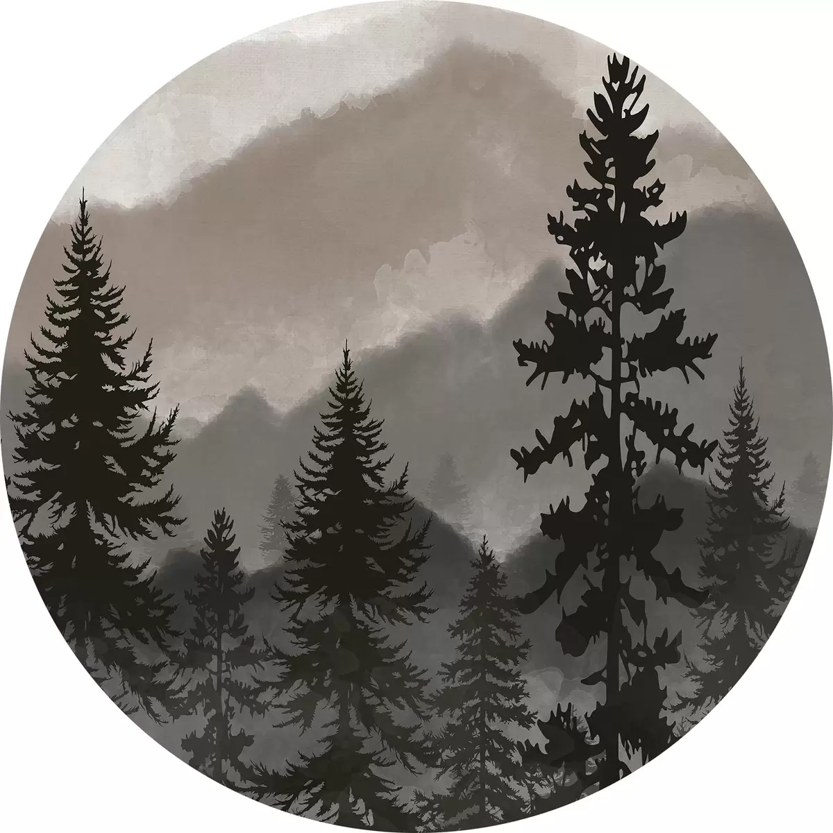 Runde Gemälde Berglandschaft mit Tannenbäumen in Aquarell r37017v1