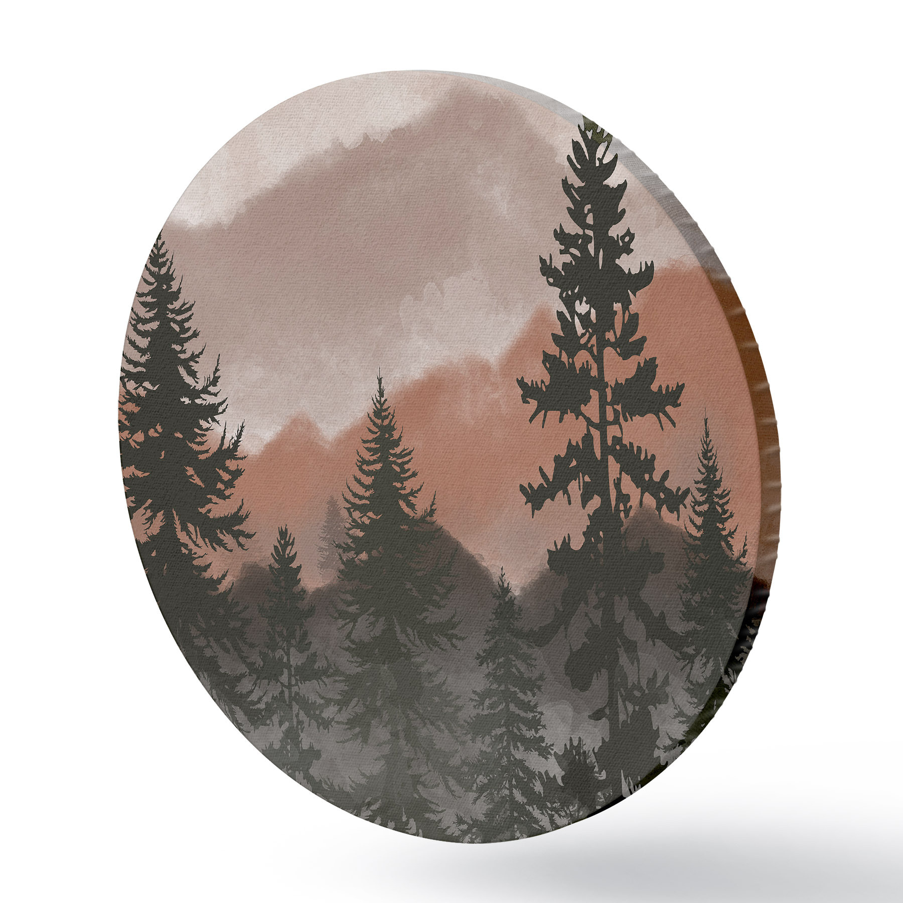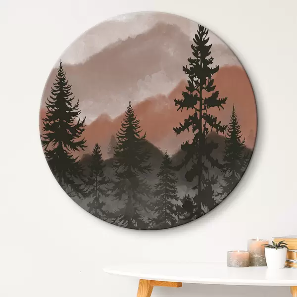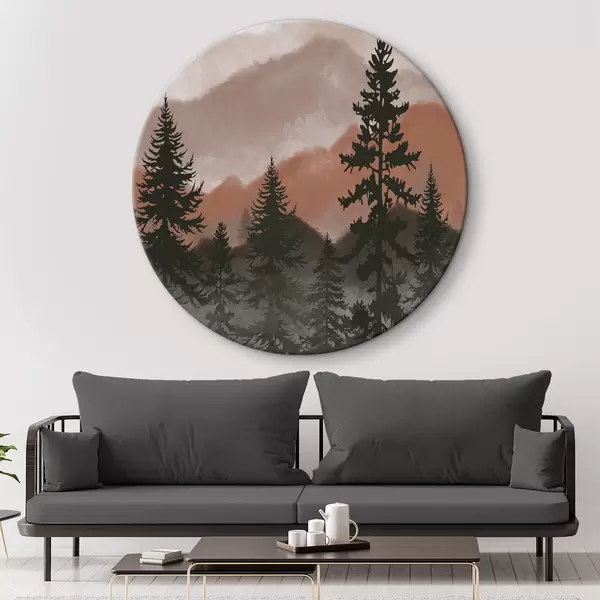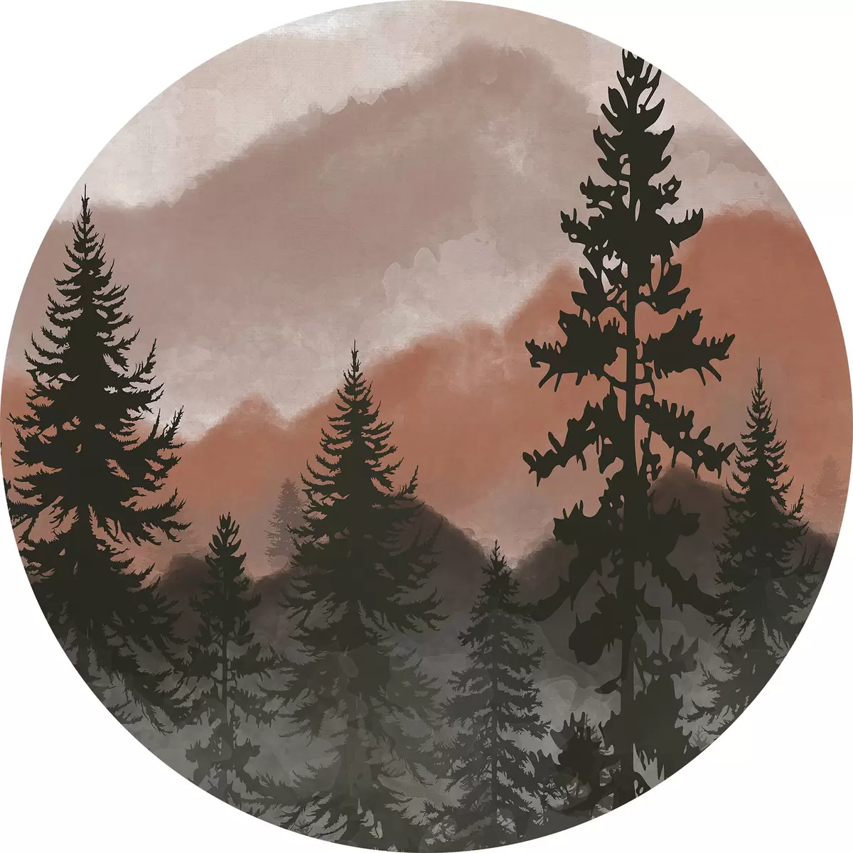 Runde Gemälde Berglandschaft mit Tannenbäumen in Aquarell r37017v2