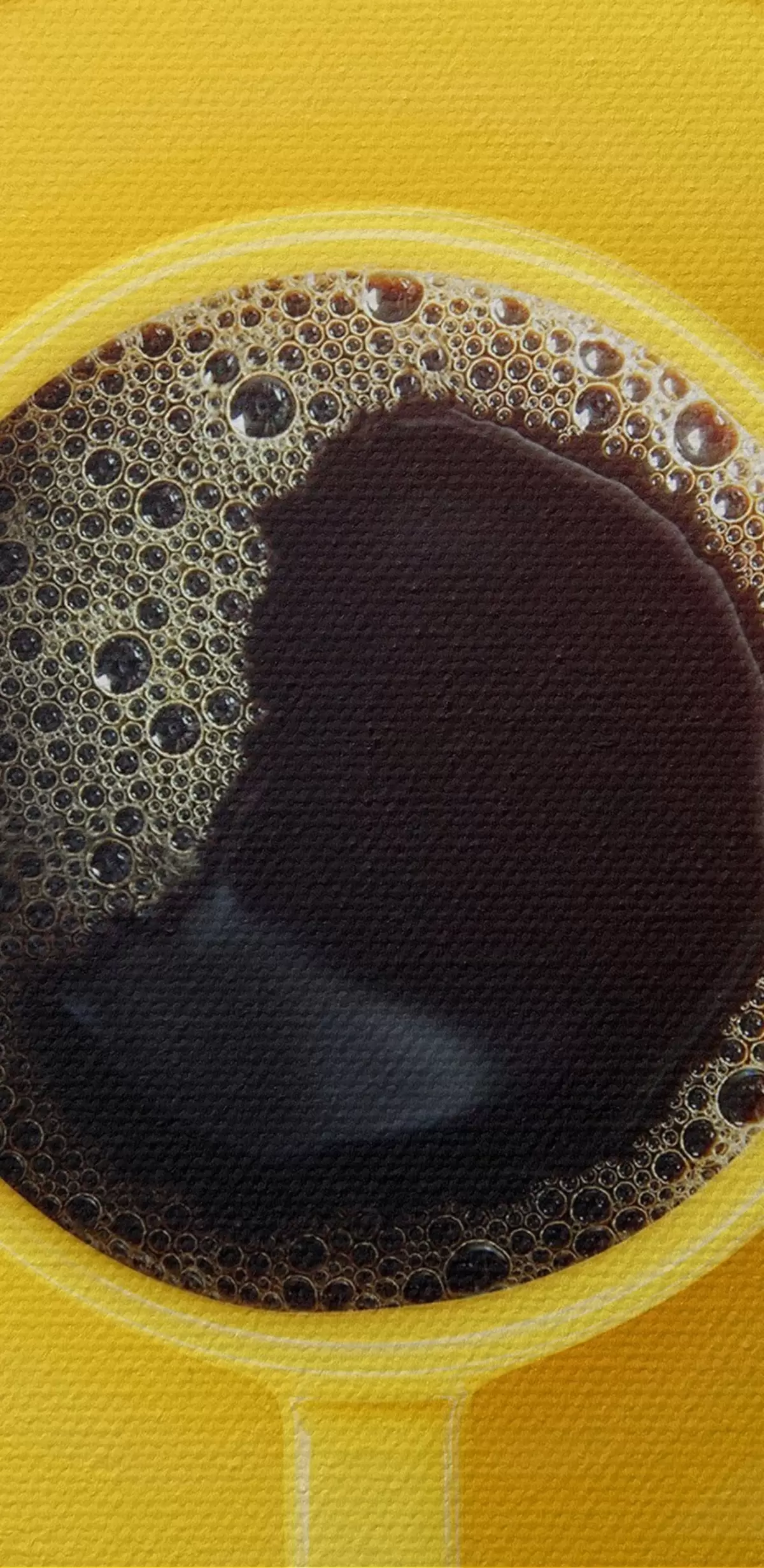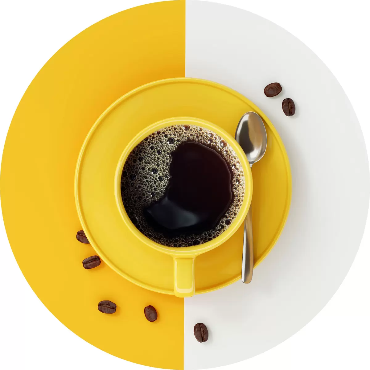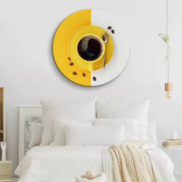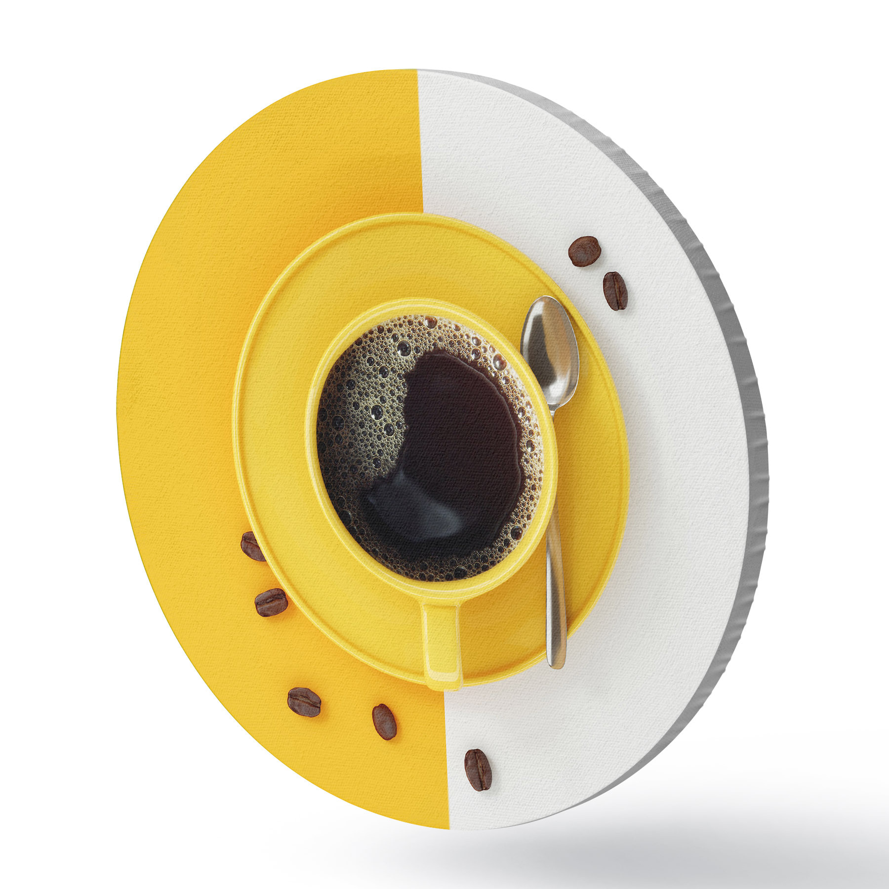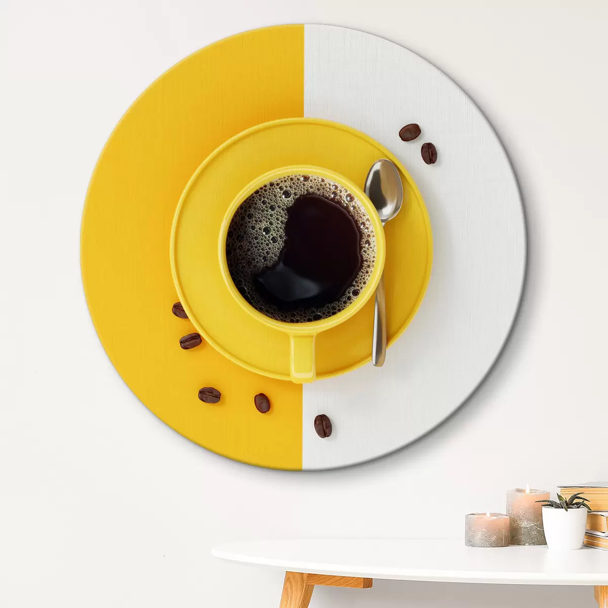 Runde Gemälde Gelber Becher mit Kaffee und Bohnen r37041
