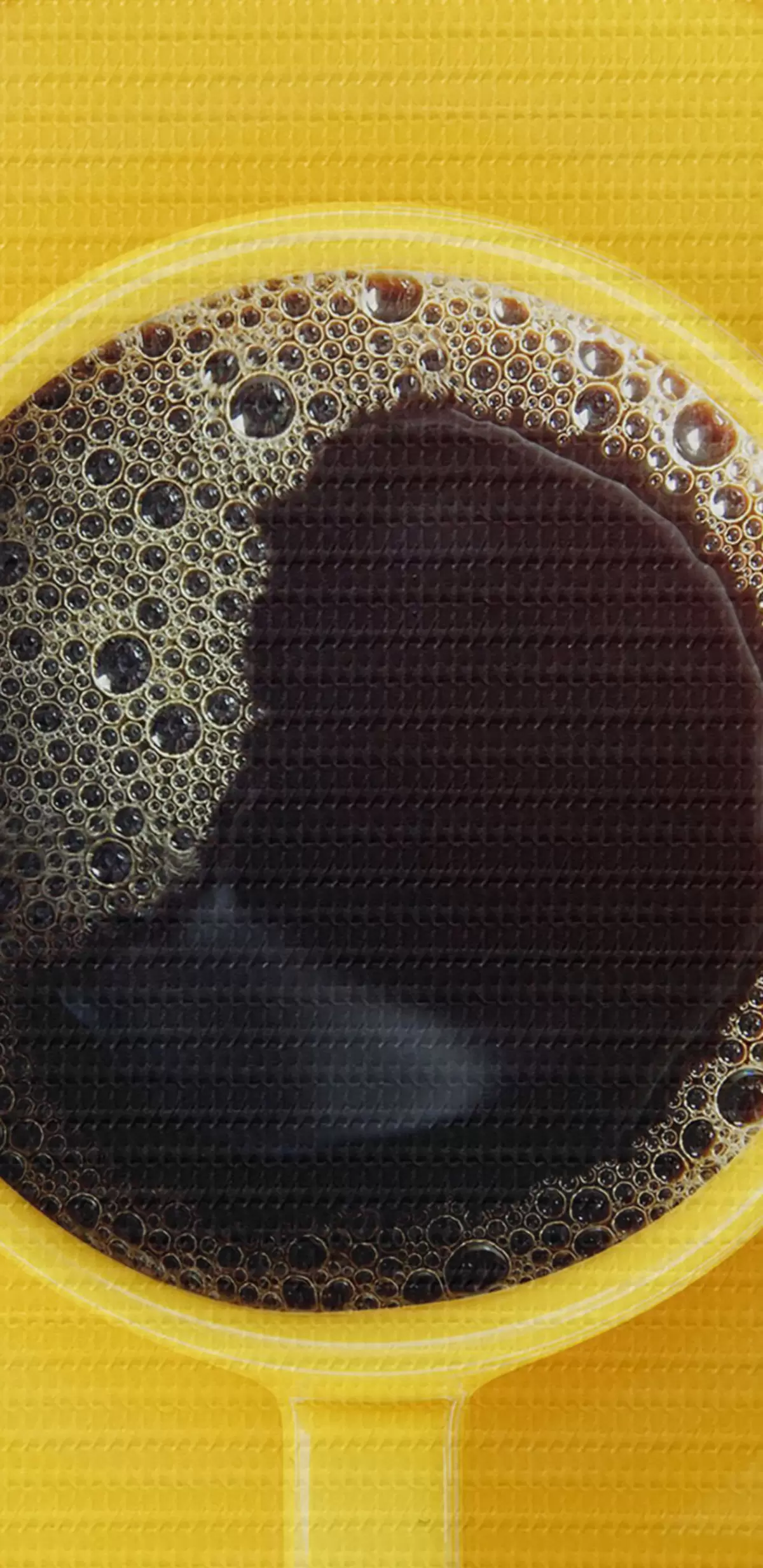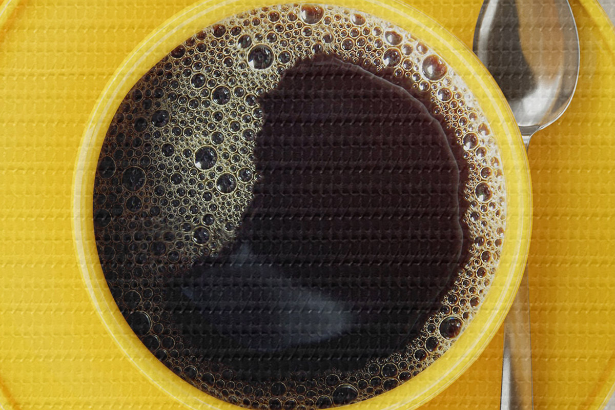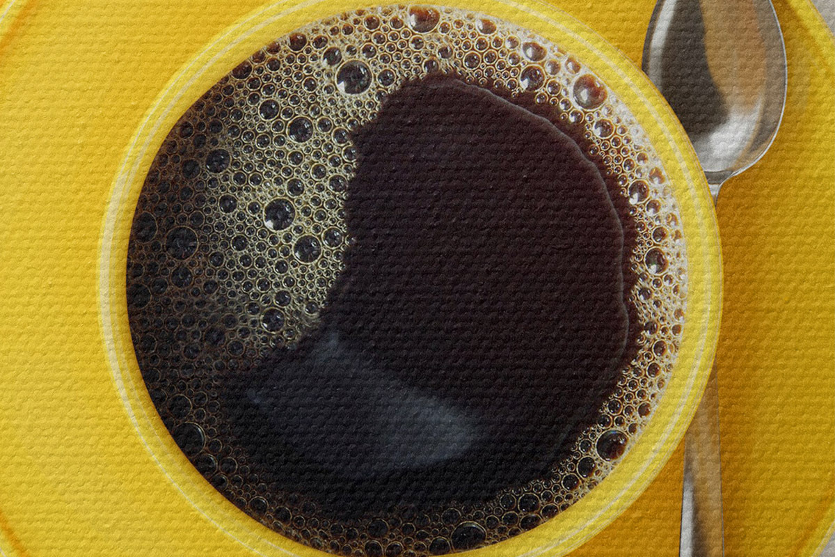 Bild Gelber Becher mit Kaffee und Bohnen Nr r37041
