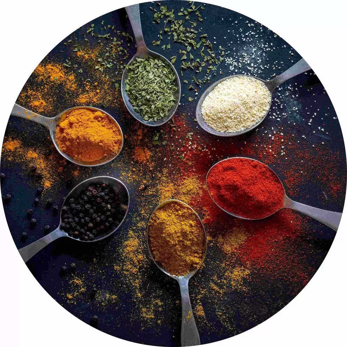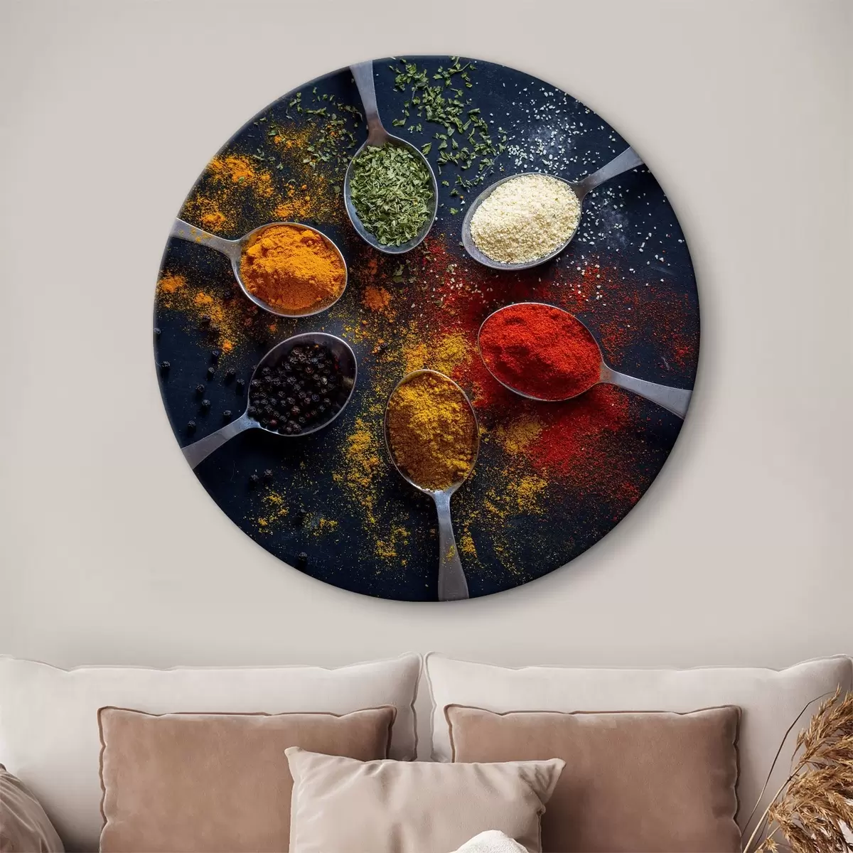 Runde Gemälde Gruppe von Löffeln mit verschiedenen Gewürzen r37046