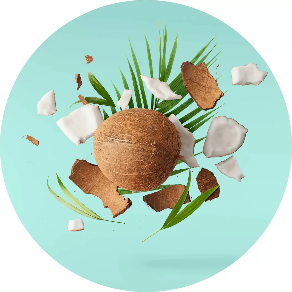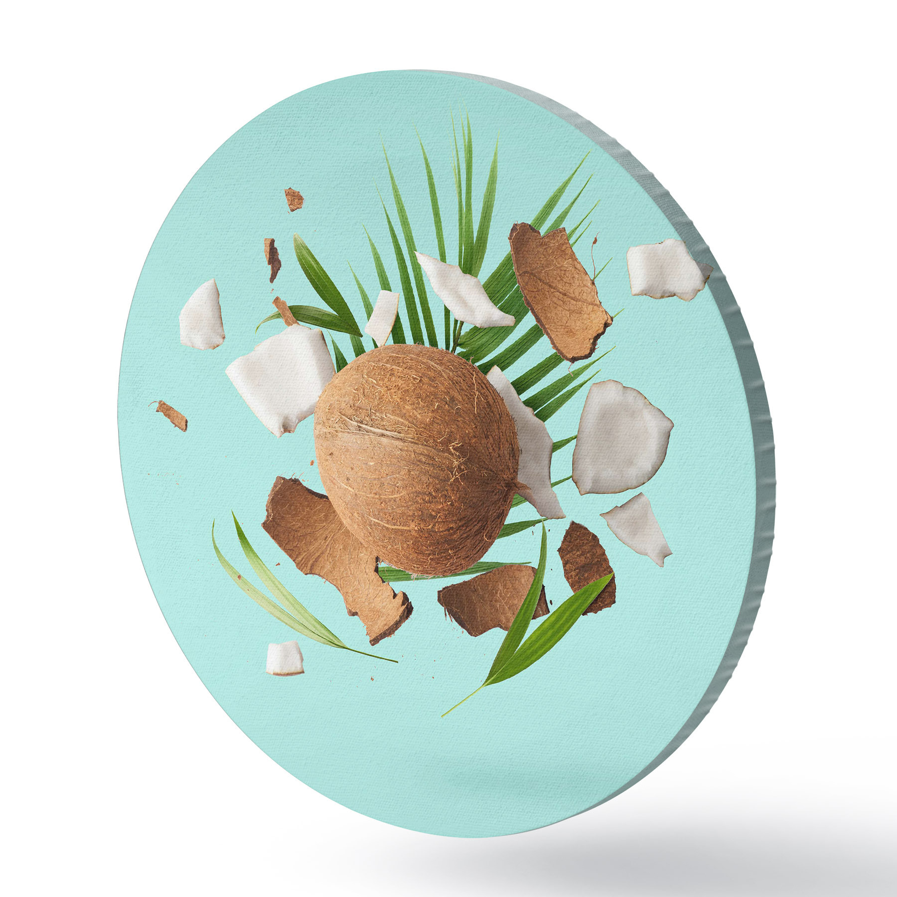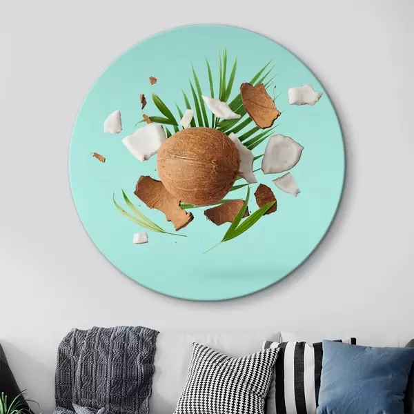 Runde Gemälde Kokosnuss und Palmblätter r37048